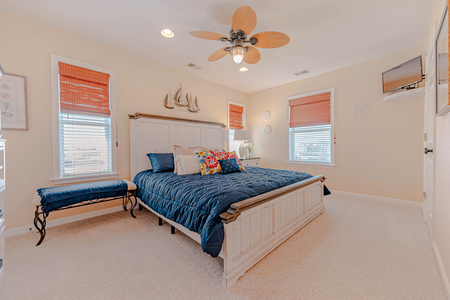 Mid Level: 3 Bedrooms (Private Suite w/Queen, TV, & Full Bath w/Tub/Shower, 1 w/Queen, TV, 1 w/Queen, TV, Access to Covered Deck), Full Hall Bath, Front Covered Deck w/Deck Furniture & Ocean Views, & Back Covered Deck w/Deck Furniture.