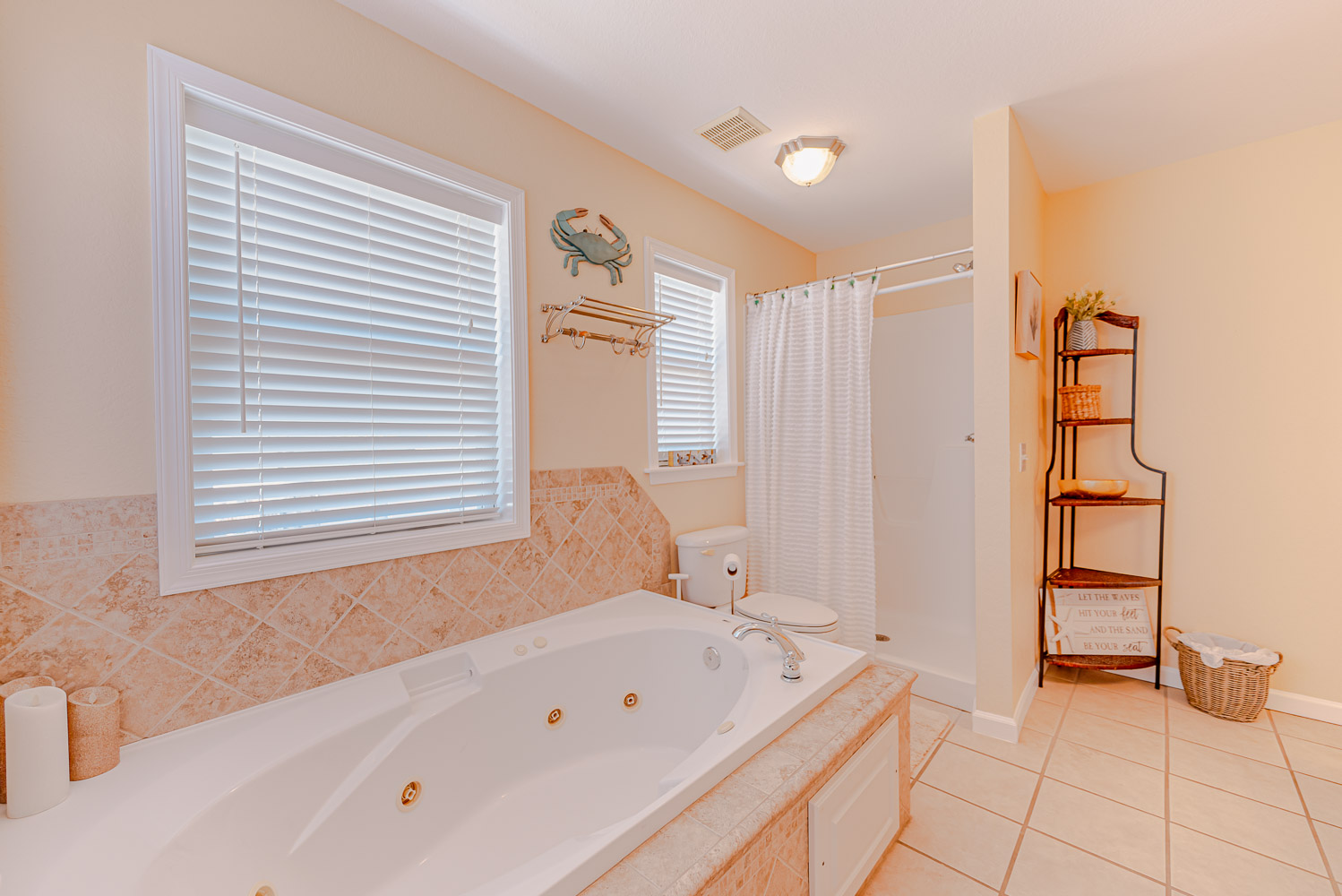 Top Level: Living Area, TV, DVD, Ocean Views, Dining Area w/Seating for Four (4), Kitchen Area w/Bar Seating for Three (3), Private Suite w/King, TV, & Full Bath w/Spa Tub, Walk-In Shower, Front Sun Deck w/Built-In Seating, Deck Furniture & Awesome Ocean Views, & Back Sun Deck w/Built-In Seating, Privacy Screen, & Hot Tub.