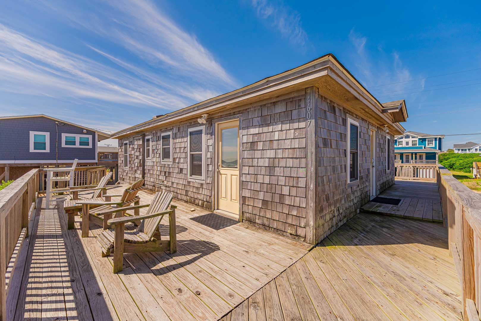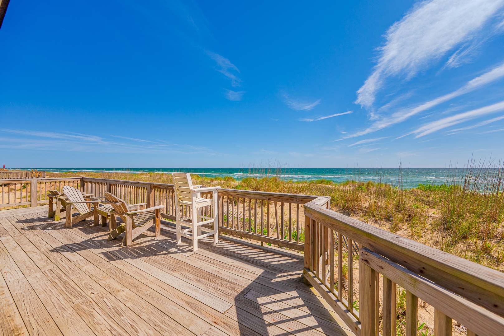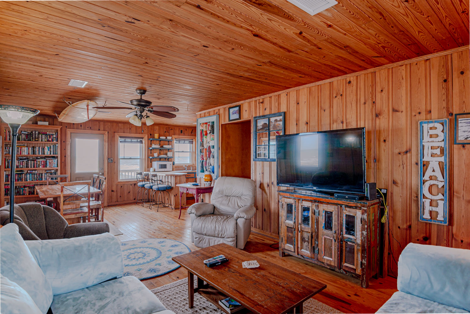 Main Level: Living Area, Large TV, Kitchen Area w/Bar Seating, Dining Area w/Seating for Six (6), Half Bath, 3 Bedrooms (1 w/Queen and Half Bath, 1 w/Queen, TV, 1 w/2 Singles, TV), Full Hall Bath w/Shower, and Wrap Around Sun Deck, Deck Furniture, and Outstanding Ocean and Beach Views.
