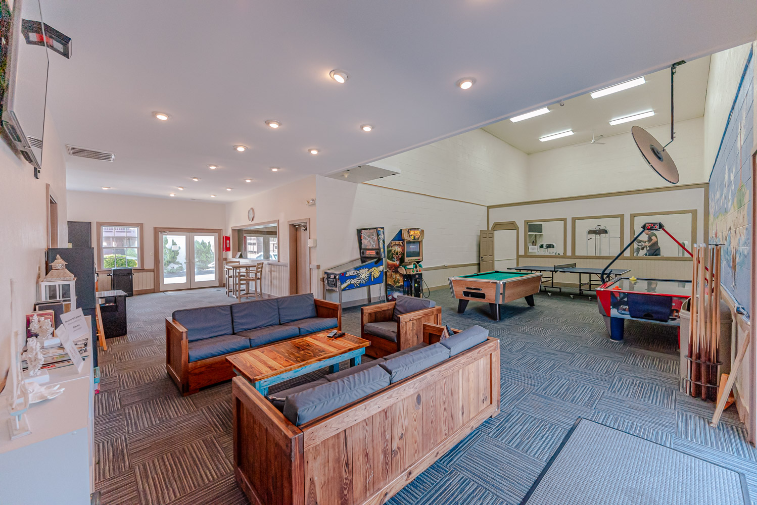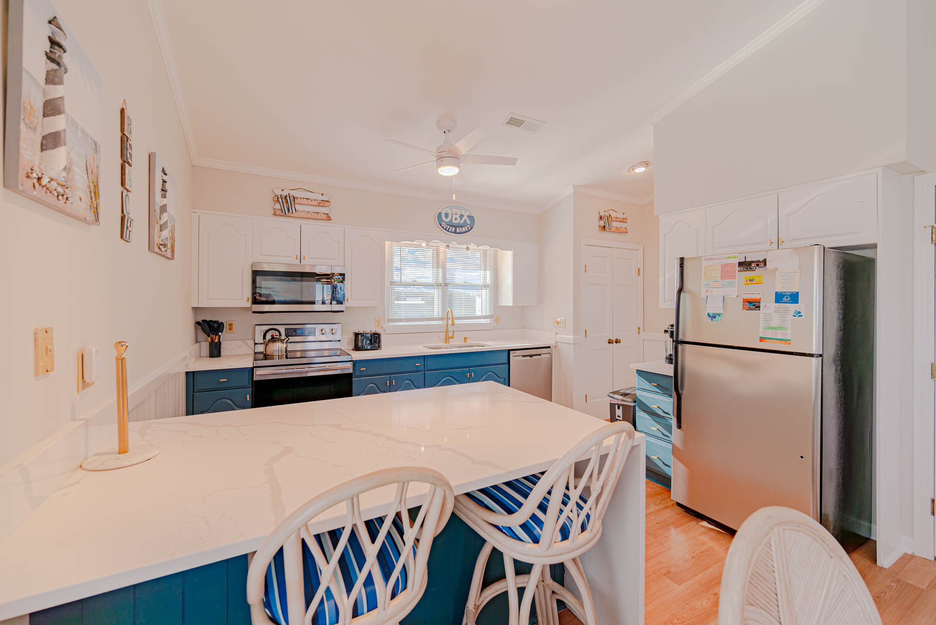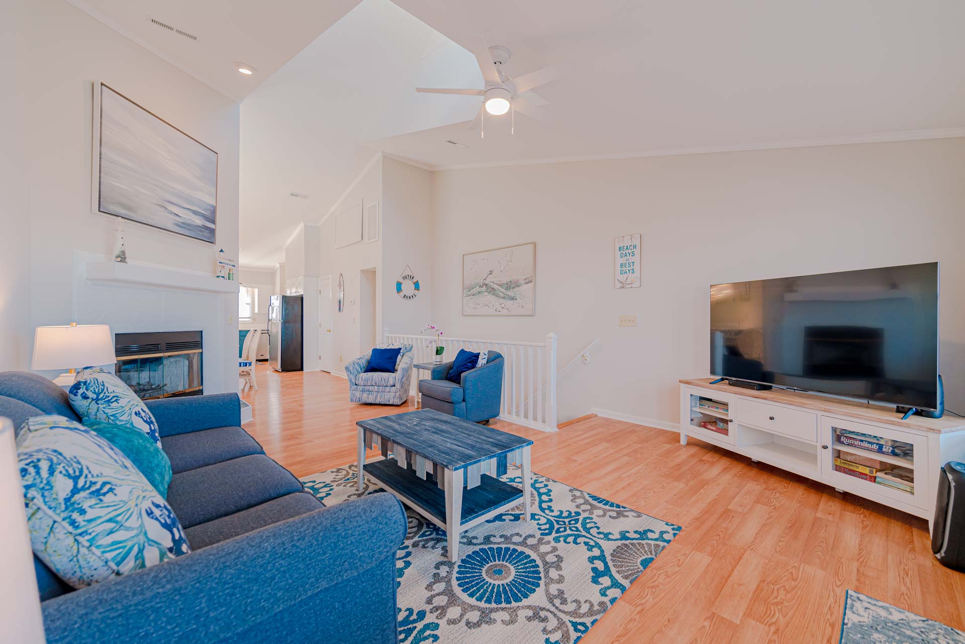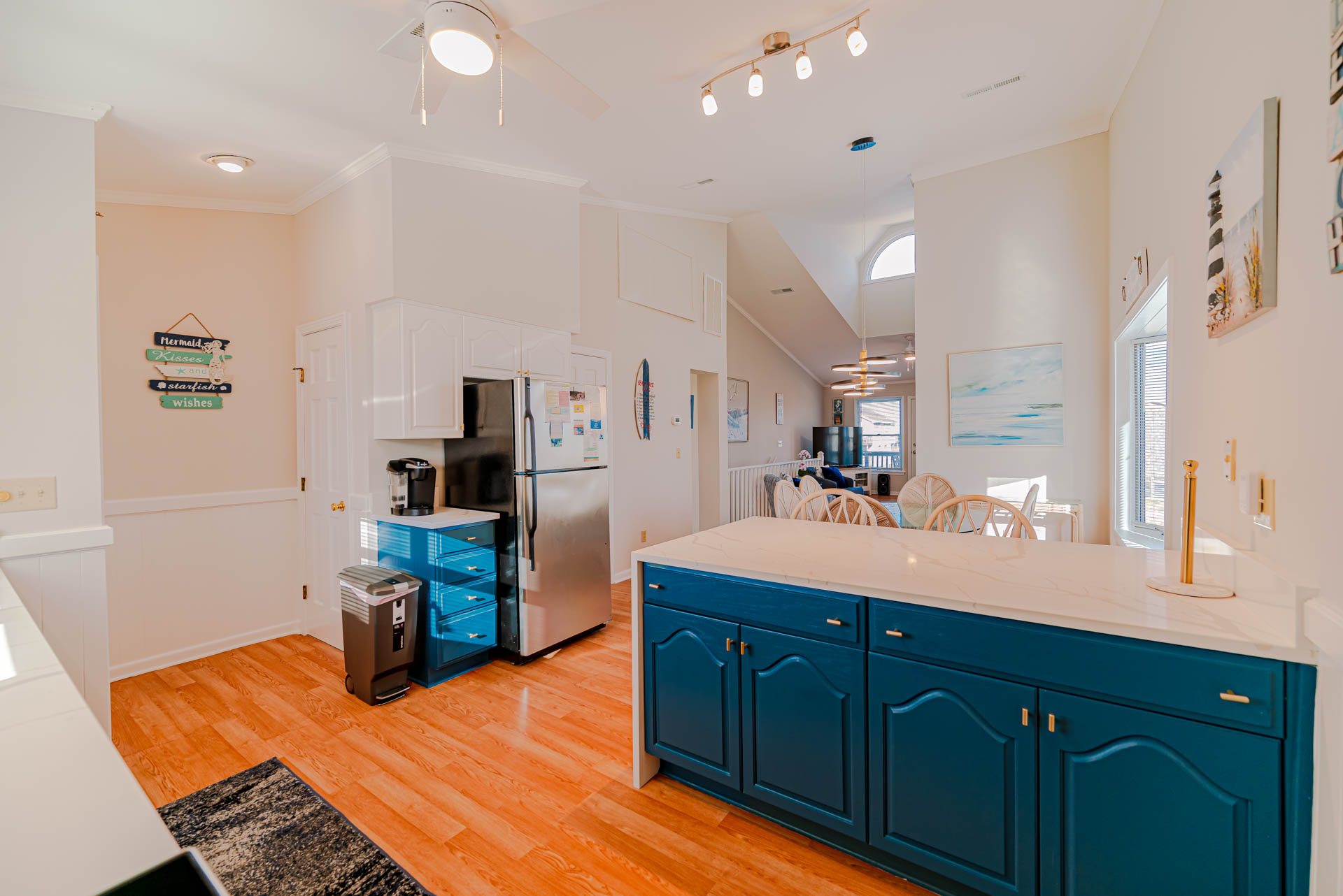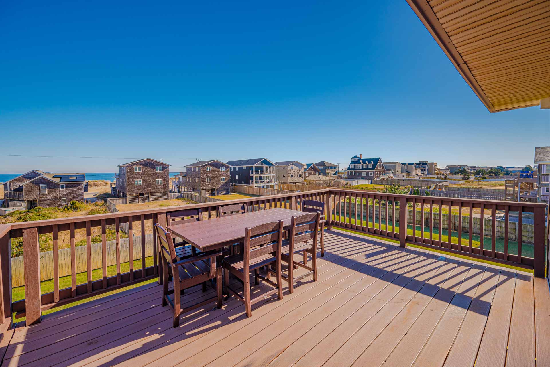 Top Level: Living Area w/Large TV, Well Equipped Kitchen w/Breakfast Bar w/Seating for Three (3), Dining Area w/Seating for Six (6), Half Bath, and Access to Well Furnished Sun Deck w/Great Ocean Views.