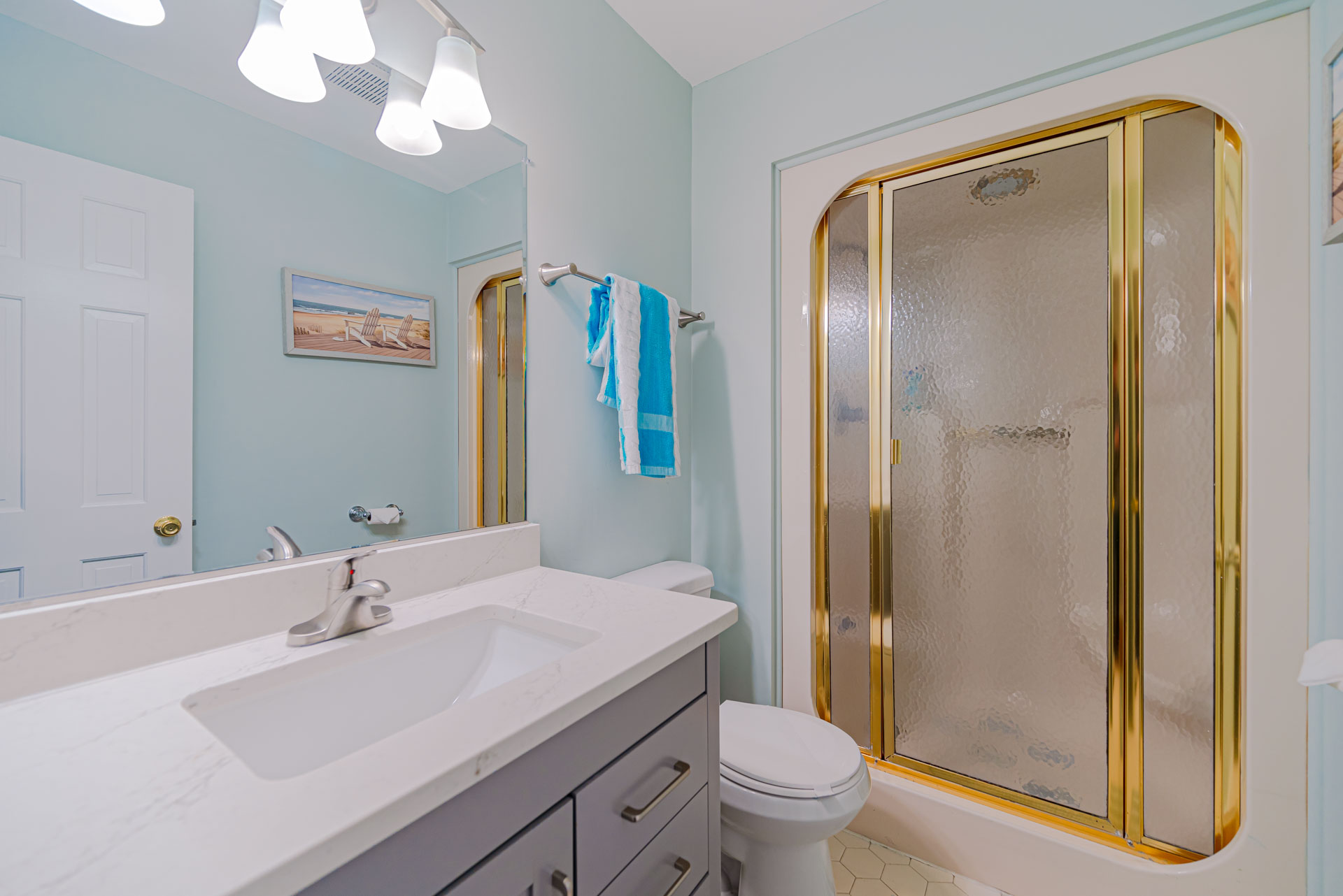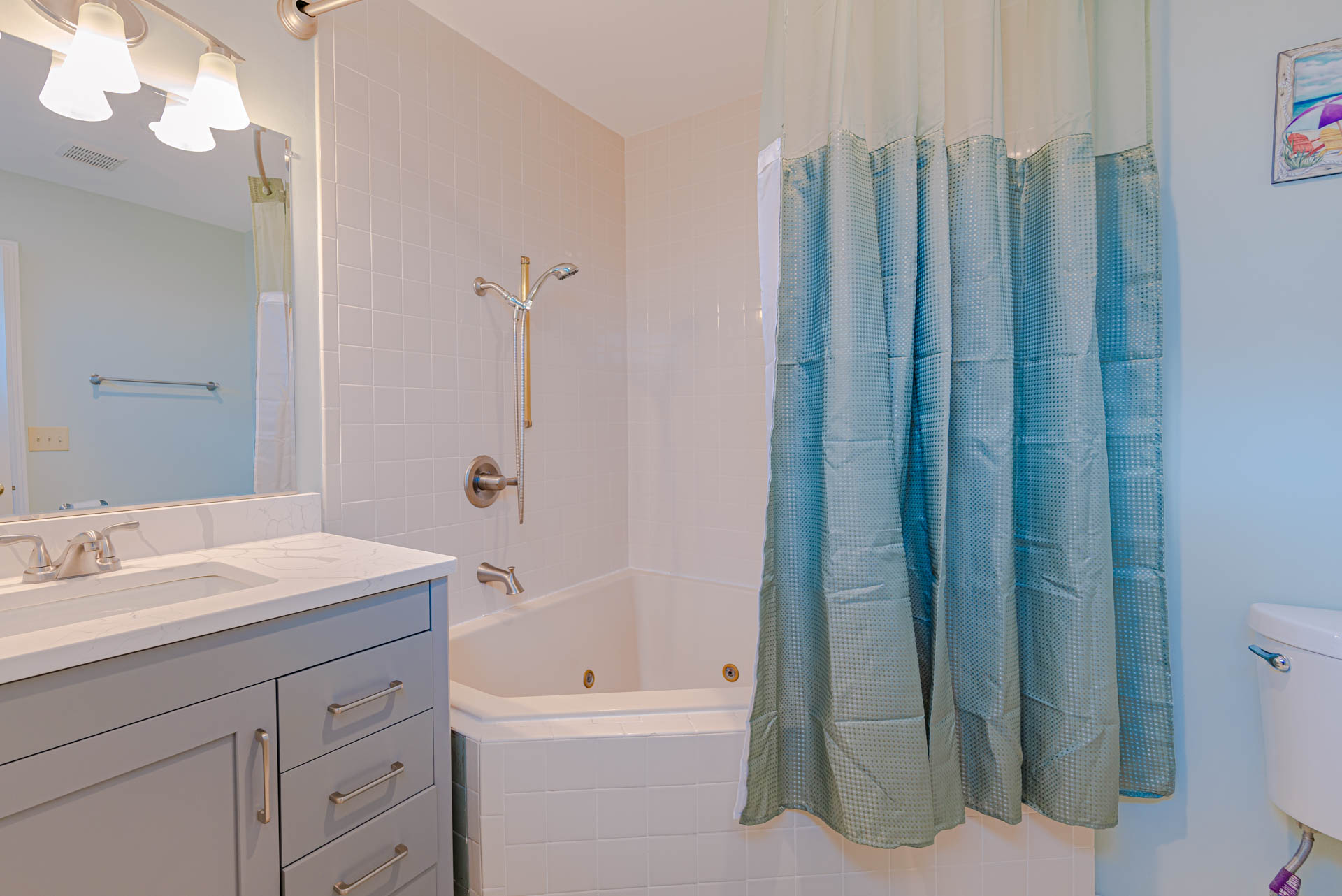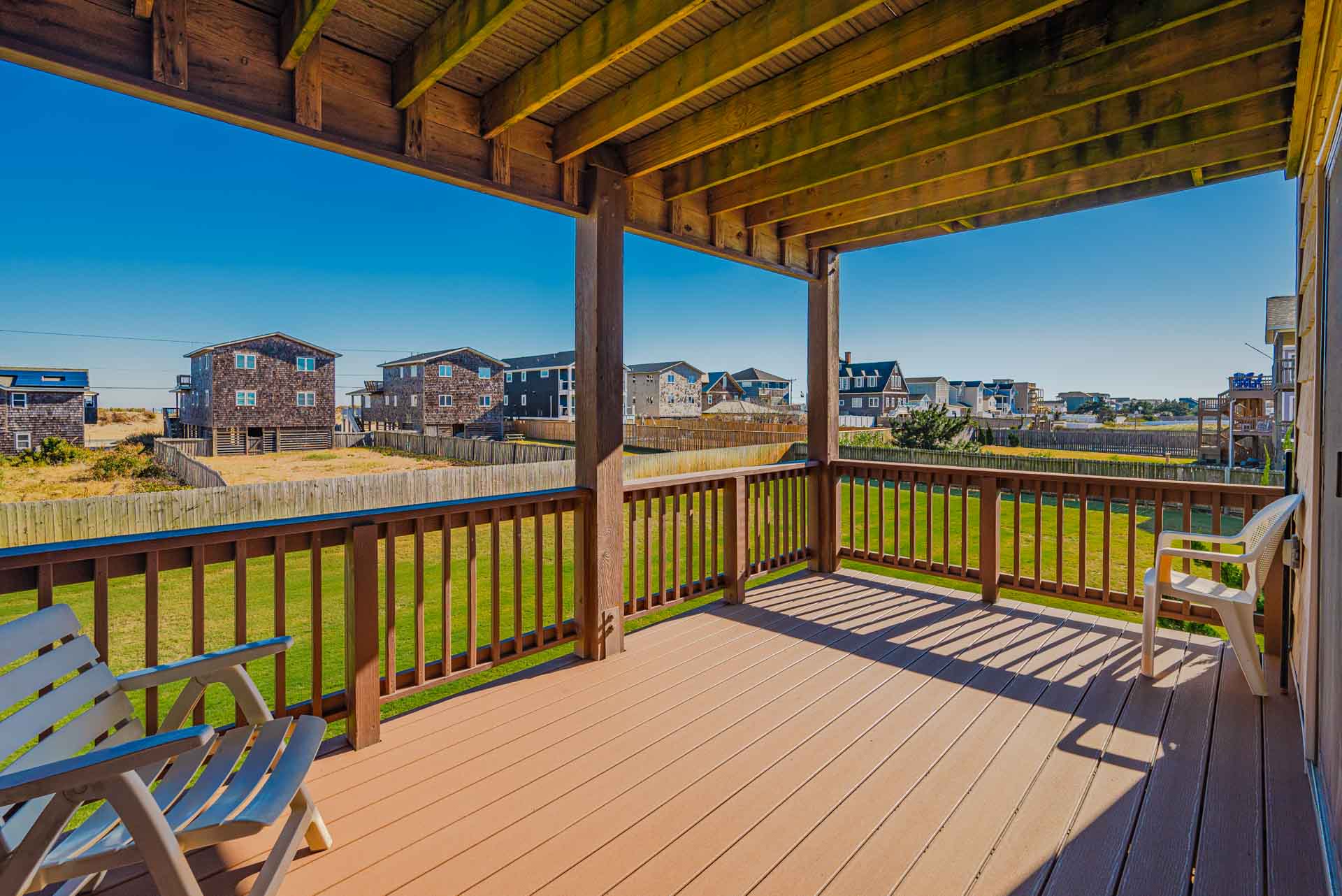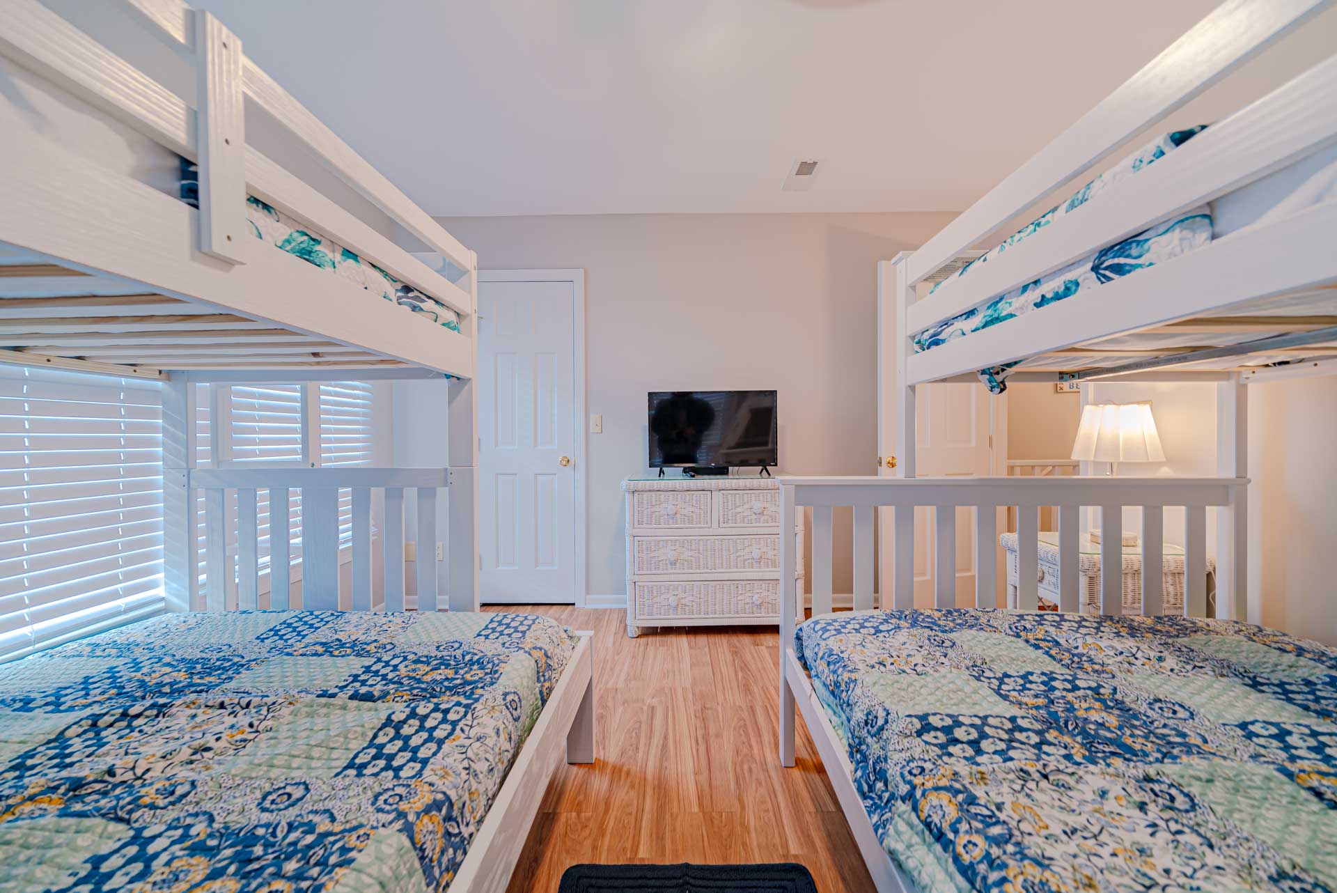 Mid Level: 2 Bedrooms (Private Suite w/Queen, TV, Private Deck w/Ocean Views, Full Bath w/Walk-In Shower; 1 w/2 Duo Bunks, TV), Full Hall Bath w/Tub/Shower, and Covered Deck w/Deck Furniture.
