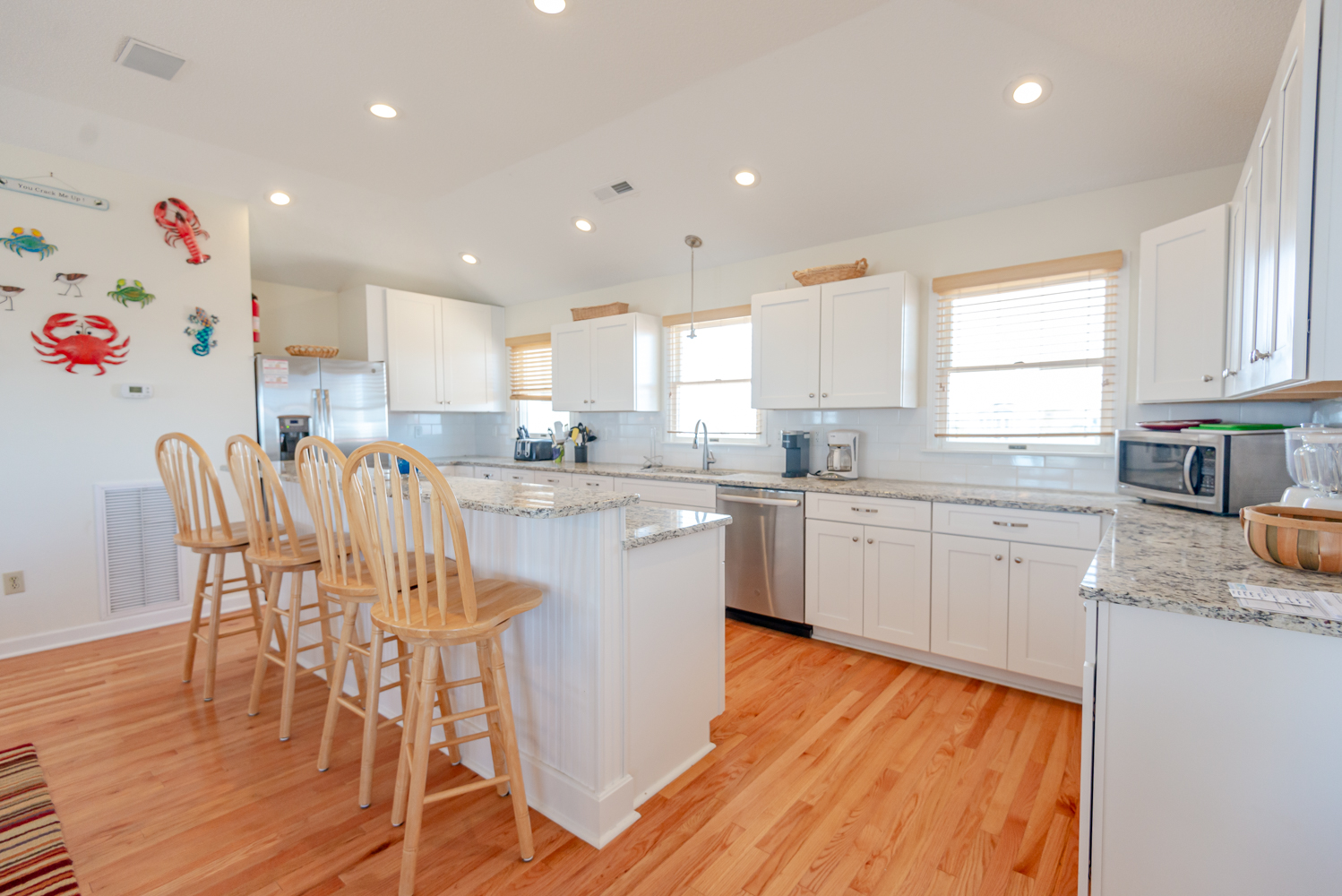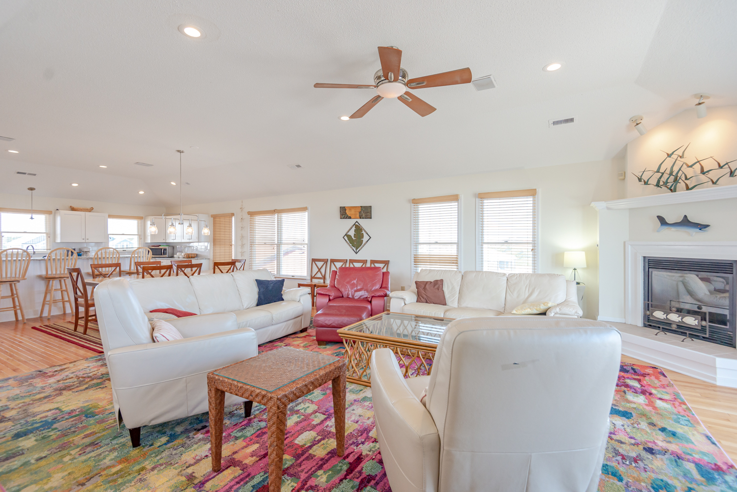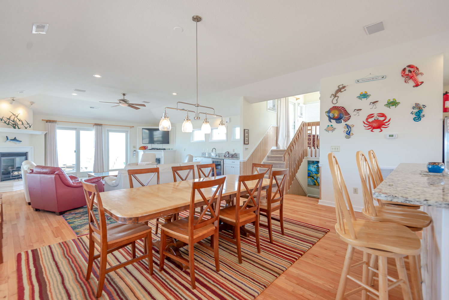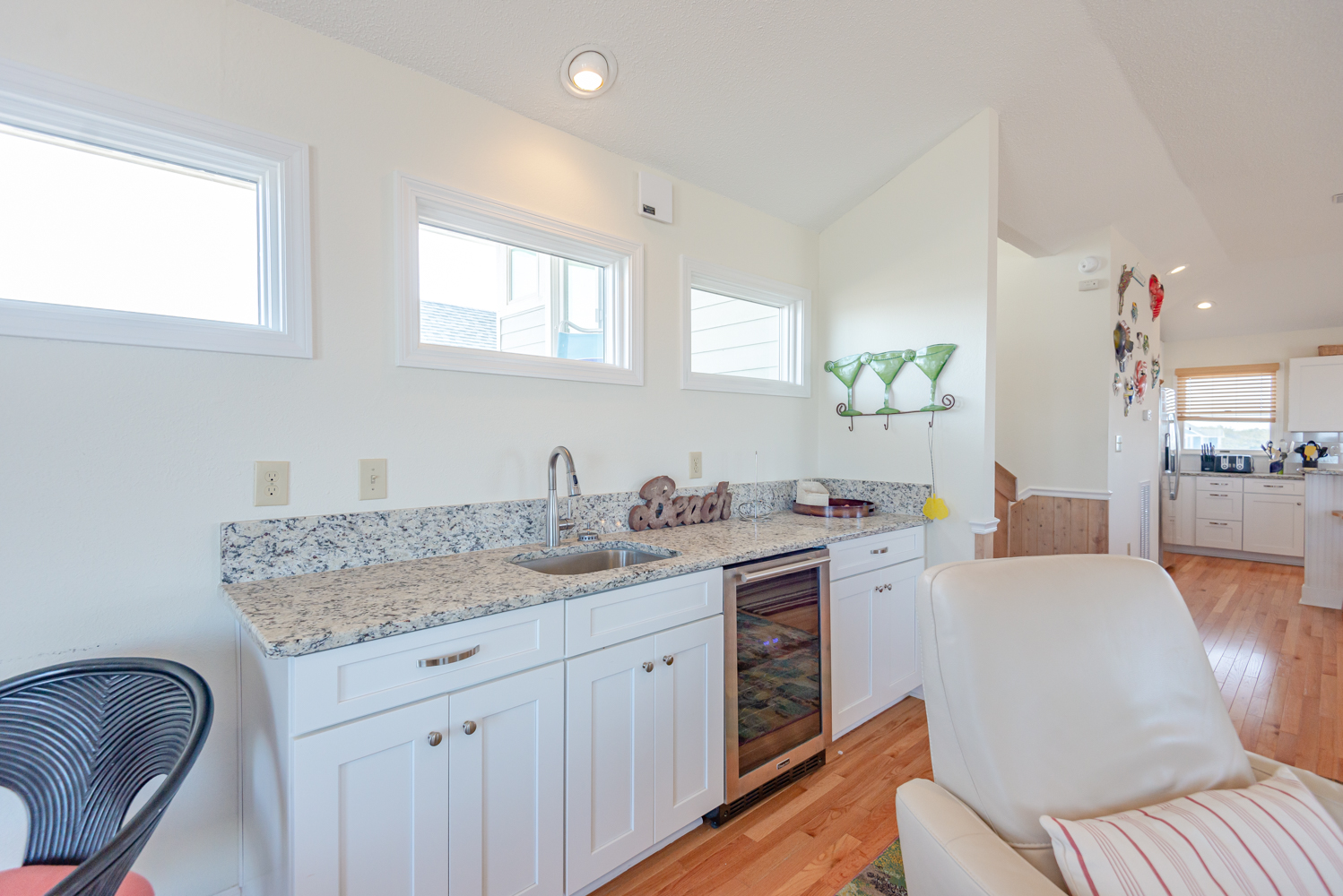 Top Level: Huge Living Arean Hardwood Floors, Wet Bar, Mini-Refrigerator, Flat Screen TV, Blu-ray DVD, Home Theater System, Gas Fireplace; Well Stocked Kitchen, Tile Counter Tops; Half Bath, Sun Deck, Deck Furniture, Awesome Ocean Views, Steps to Sun Deck, Deck Furniture, Covered Deck, Furniture, and Ships Watch.
