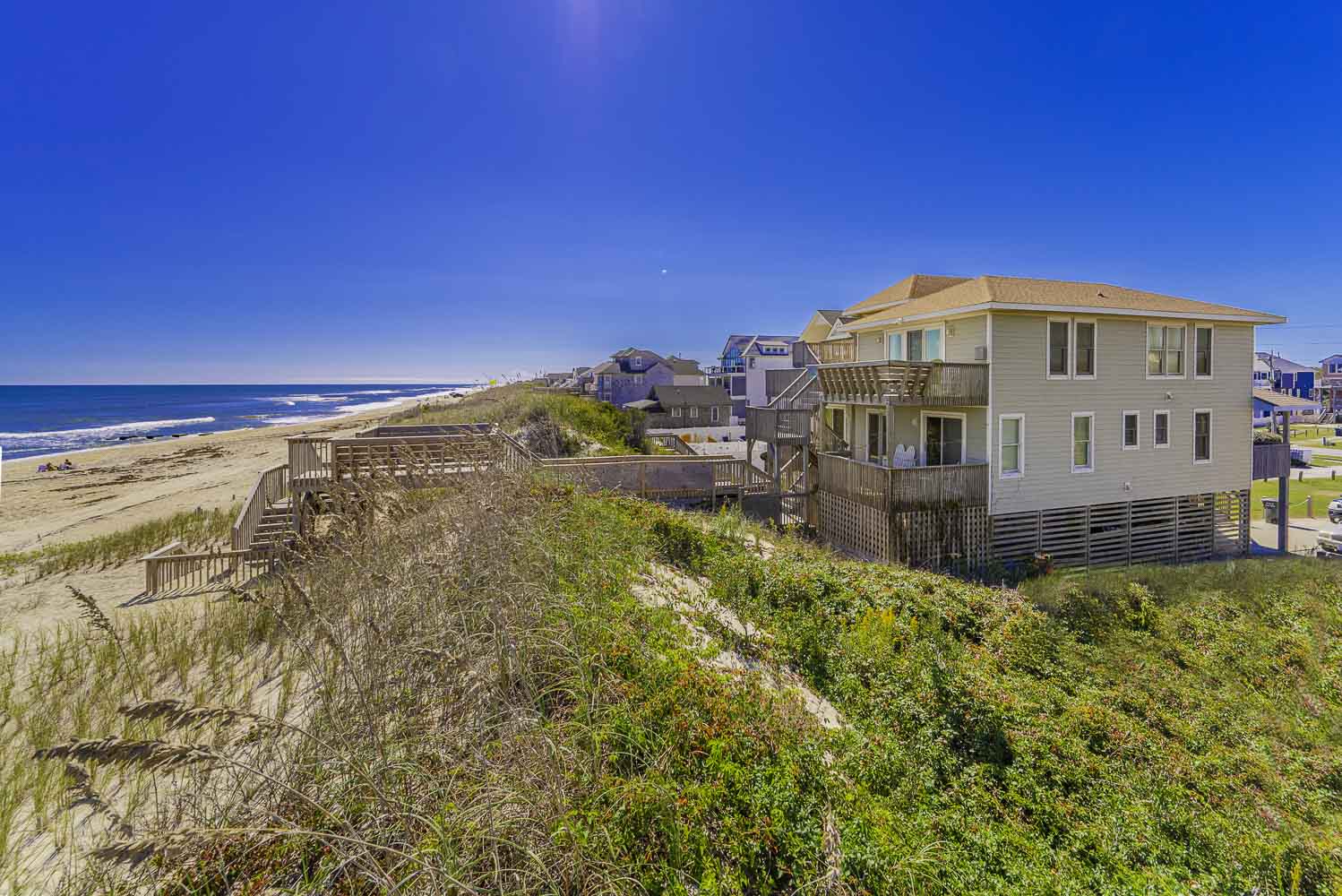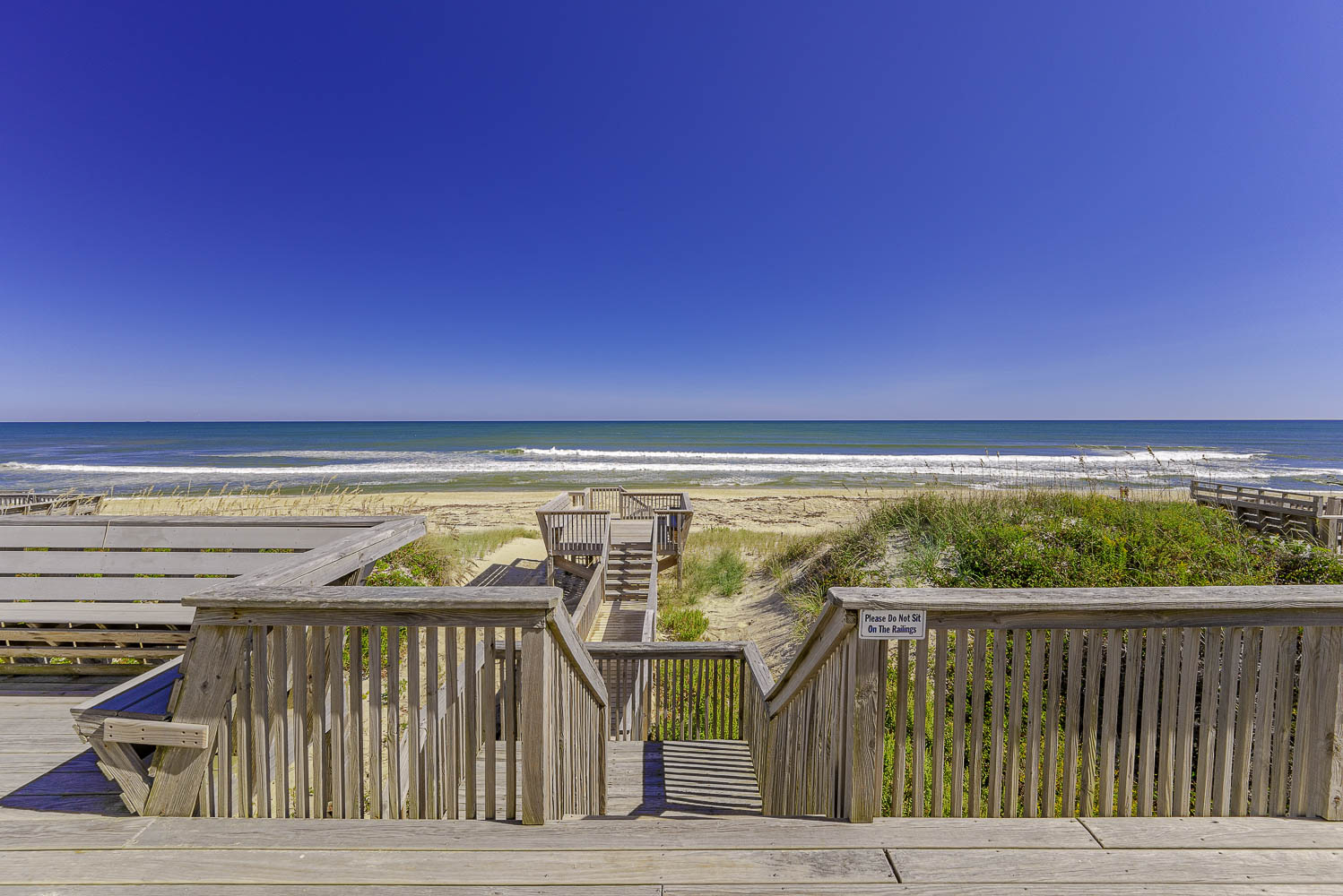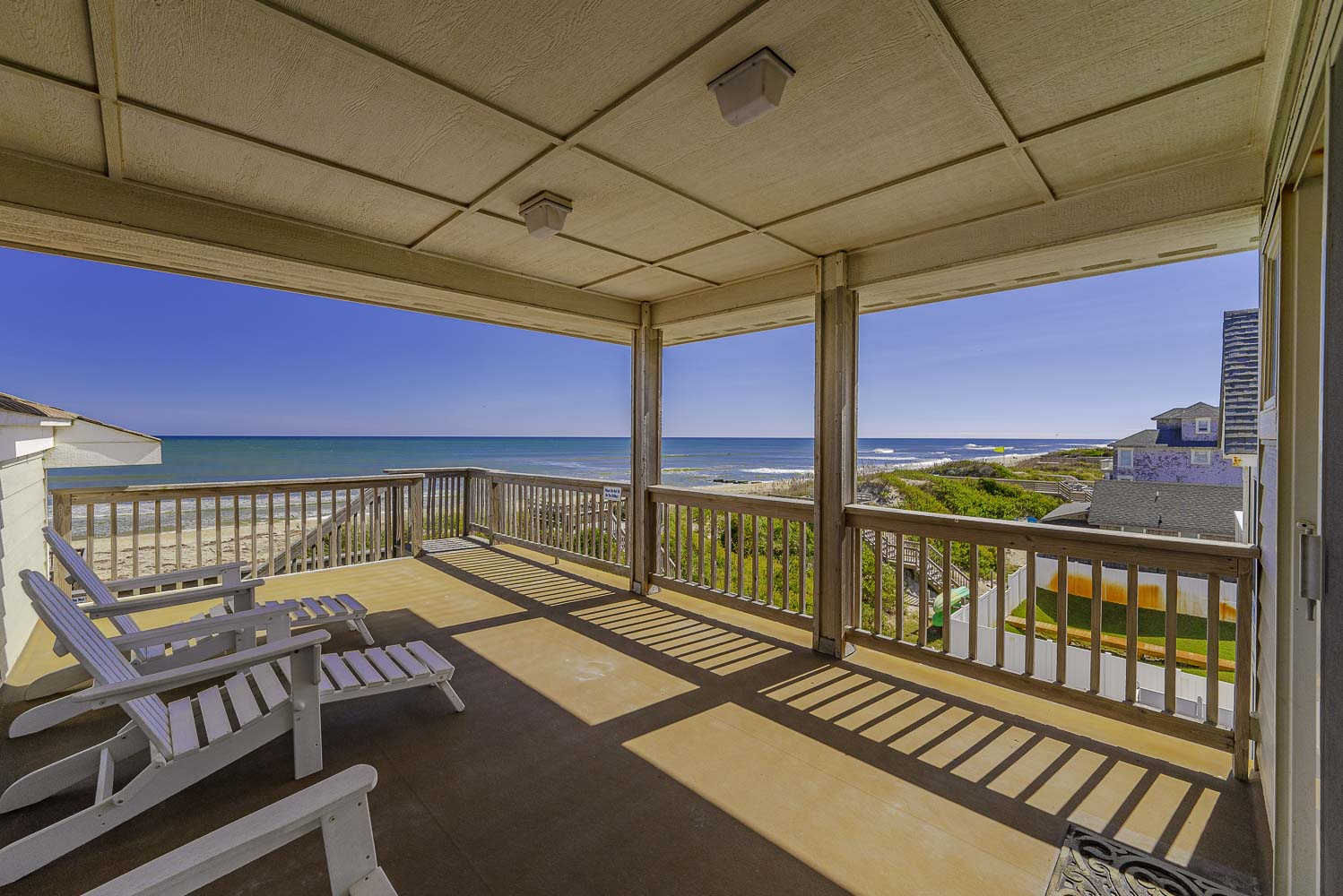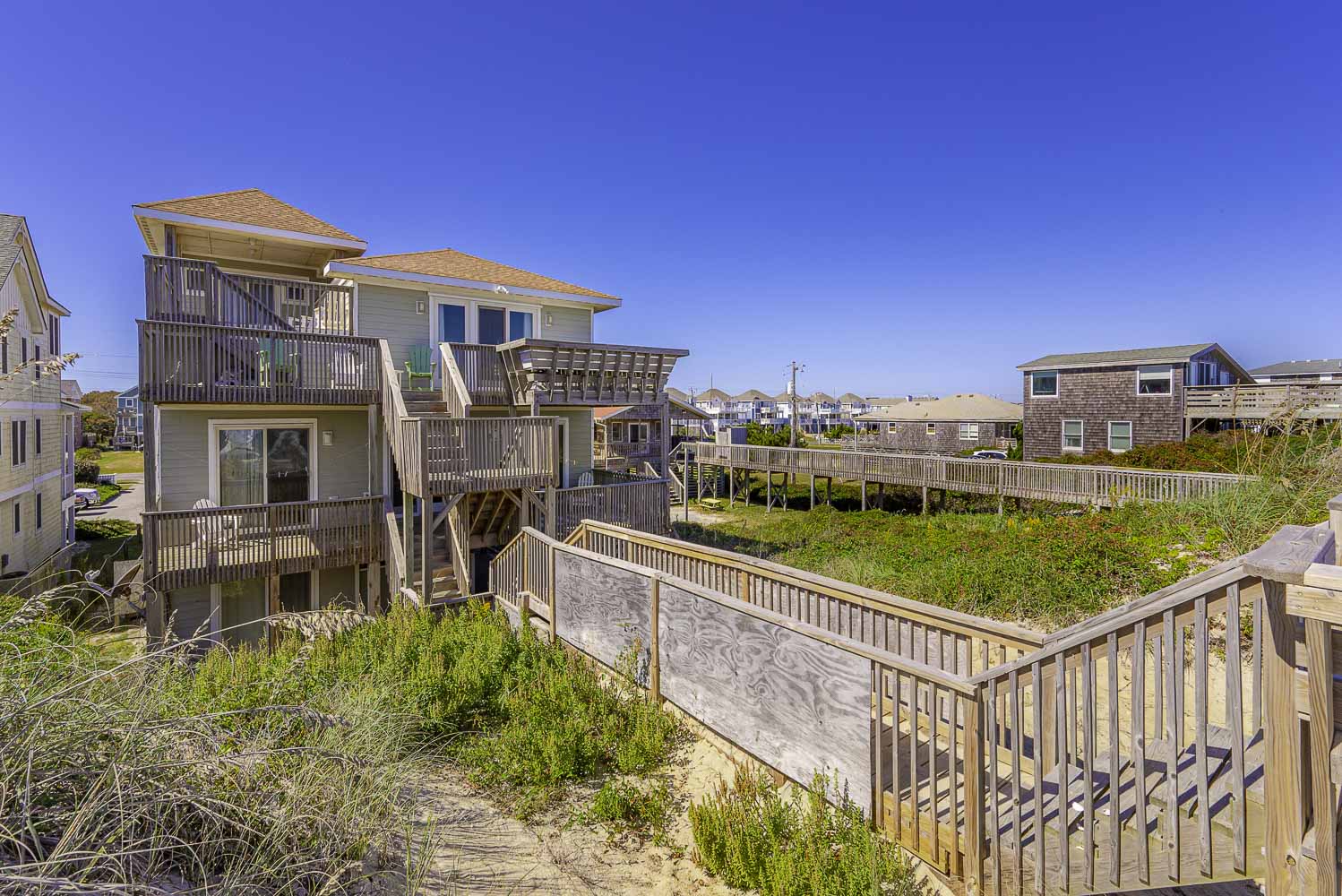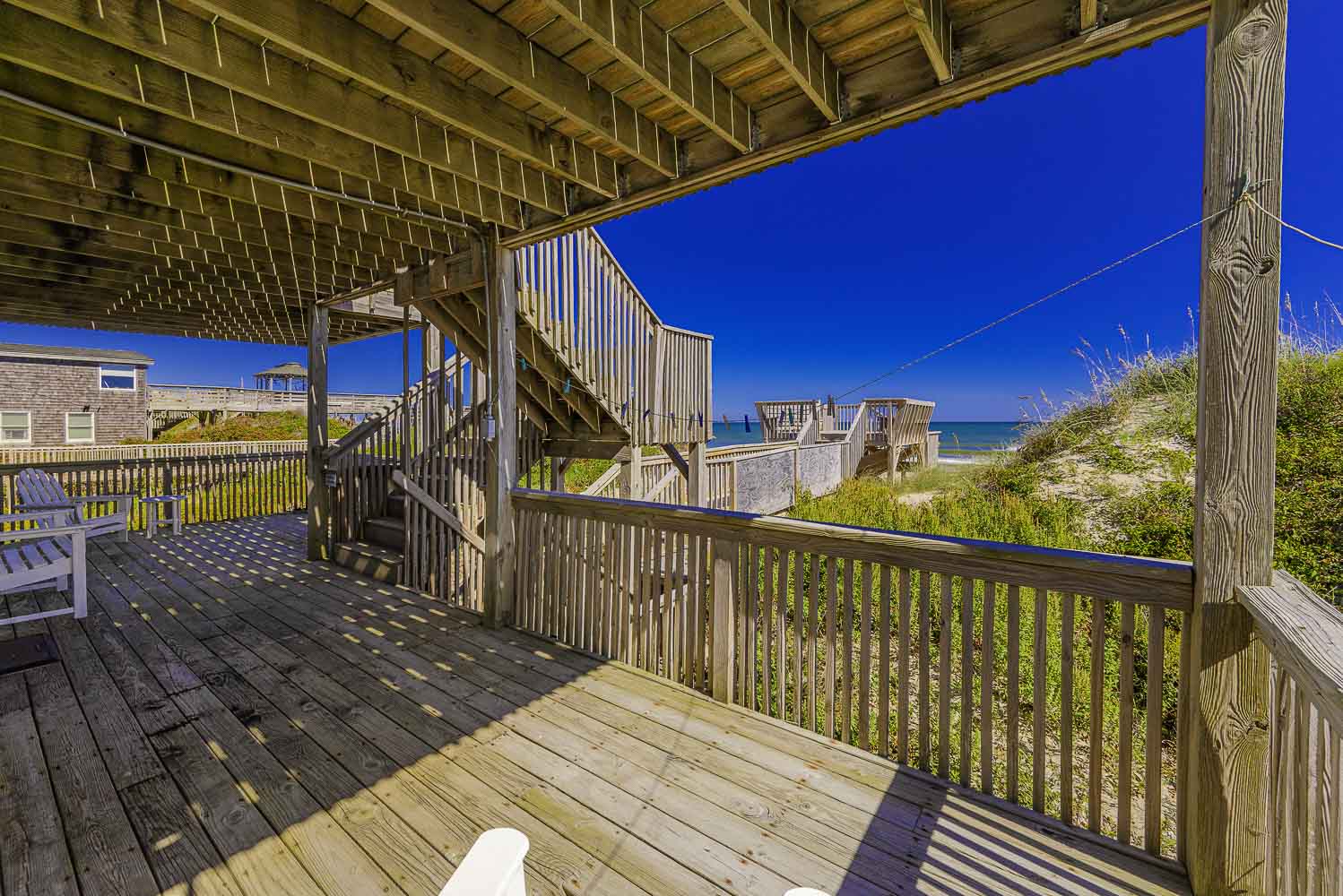 Mid Level: 4 Bedrooms (2 Private Suites w/Kings, Flat Screen TVs, Full Baths, Ocean Views; Private Suite w/Queen, Flat Screen TV, Full Bath; Private Suite w/2 Duo Bunks, Flat Screen TV, Full Bath), and Covered Deck w/Walkway to Dune Top Deck w/Built-In Seating.
