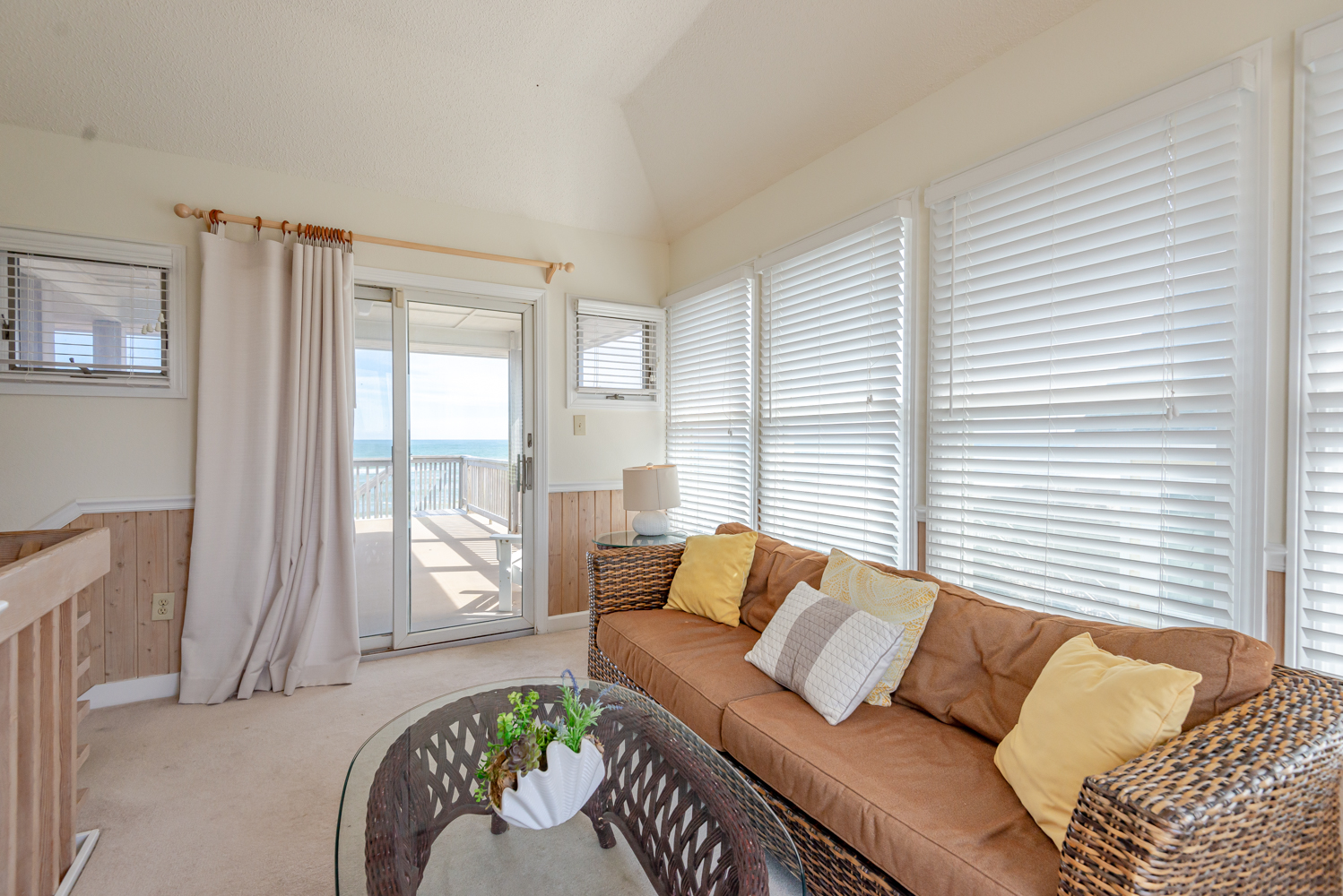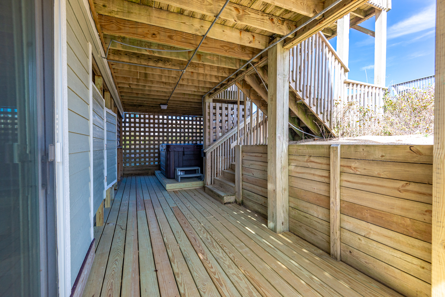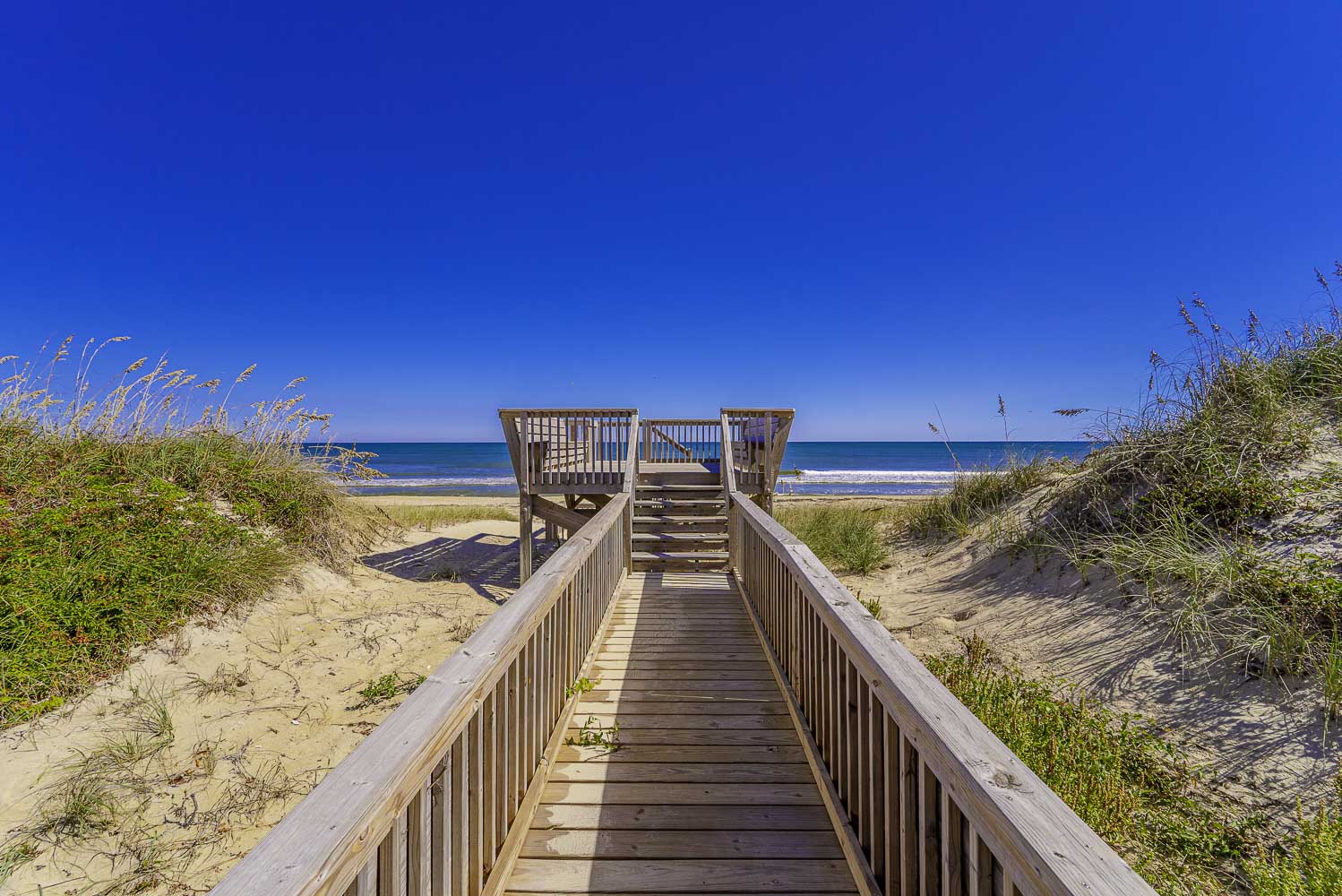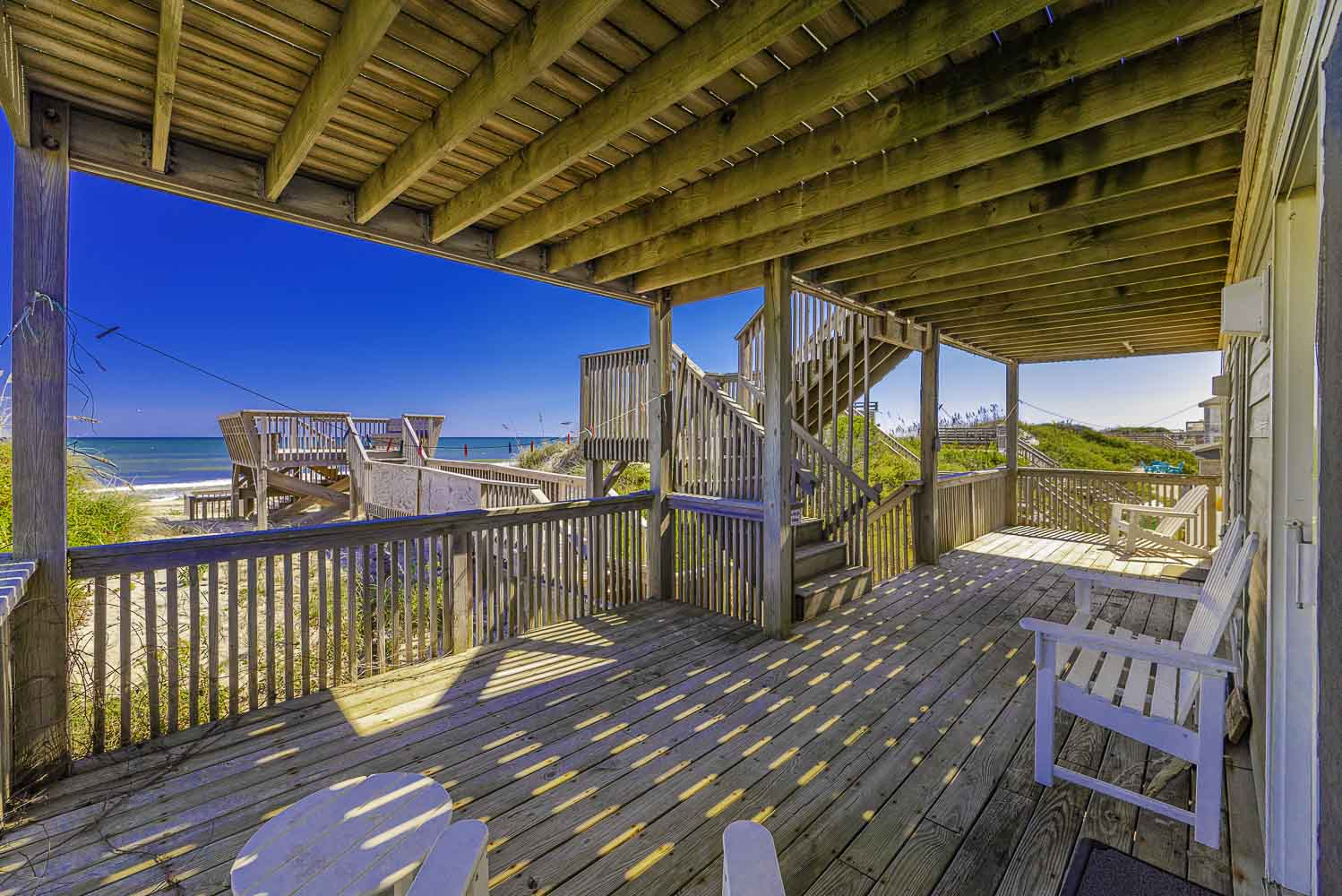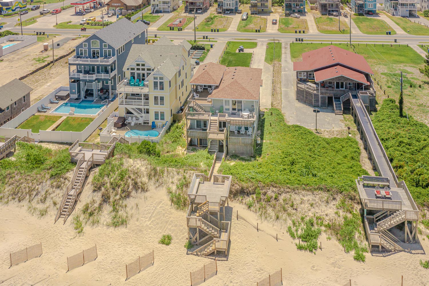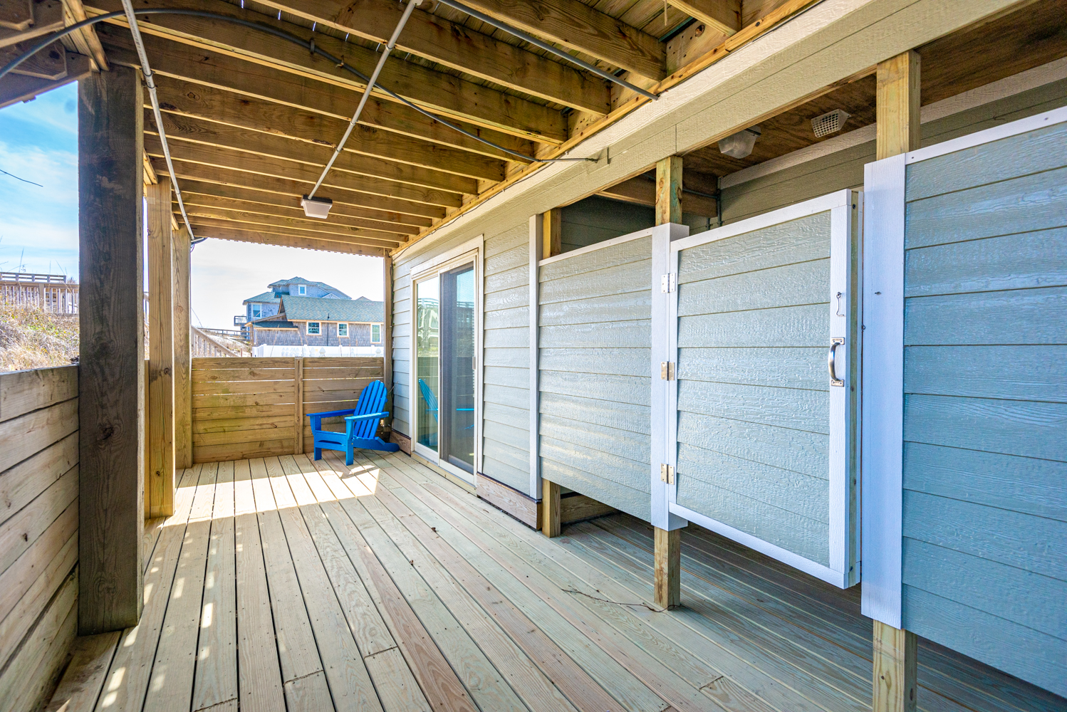 Mid Level: 4 Bedrooms (2 Private Suites w/Kings, Flat Screen TVs, Full Baths, Ocean Views; Private Suite w/Queen, Flat Screen TV, Full Bath; Private Suite w/2 Duo Bunks, Flat Screen TV, Full Bath), and Covered Deck w/Walkway to Dune Top Deck w/Built-In Seating.