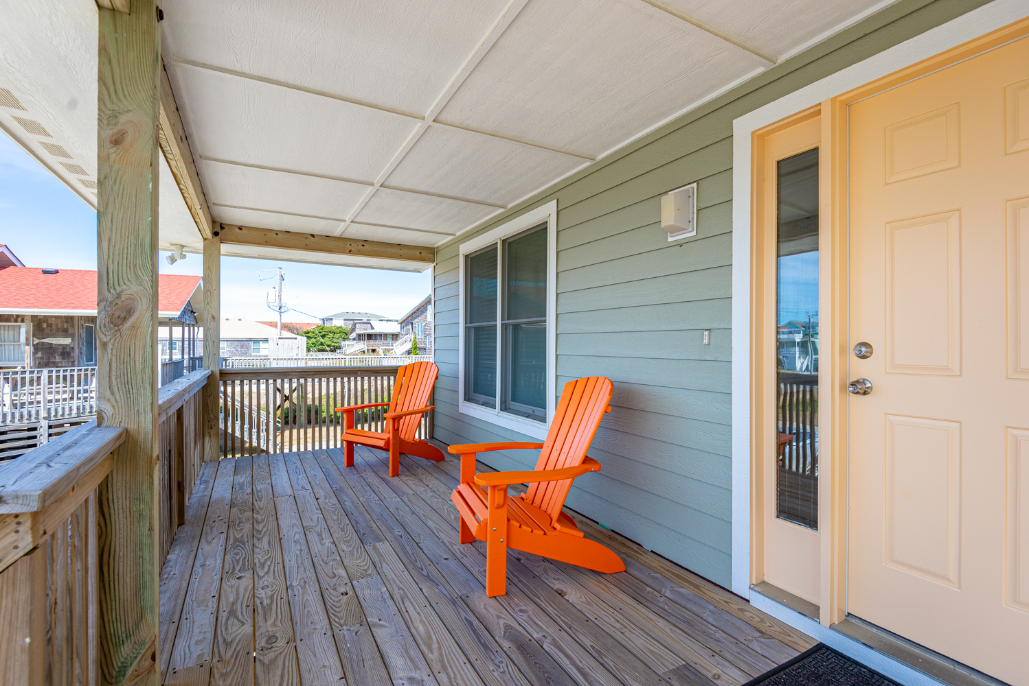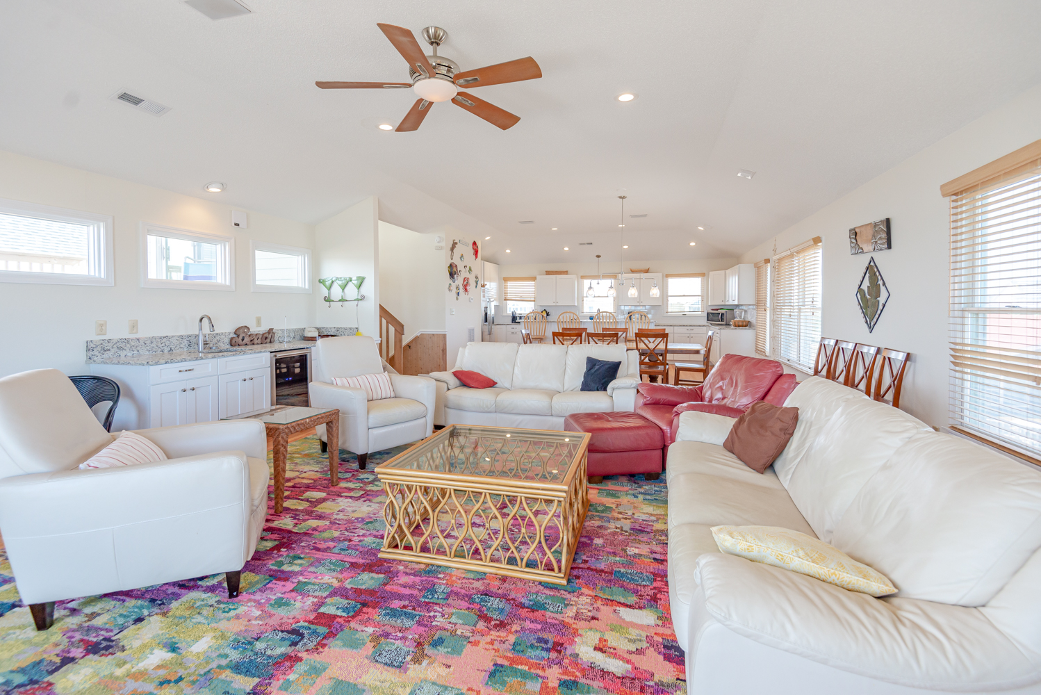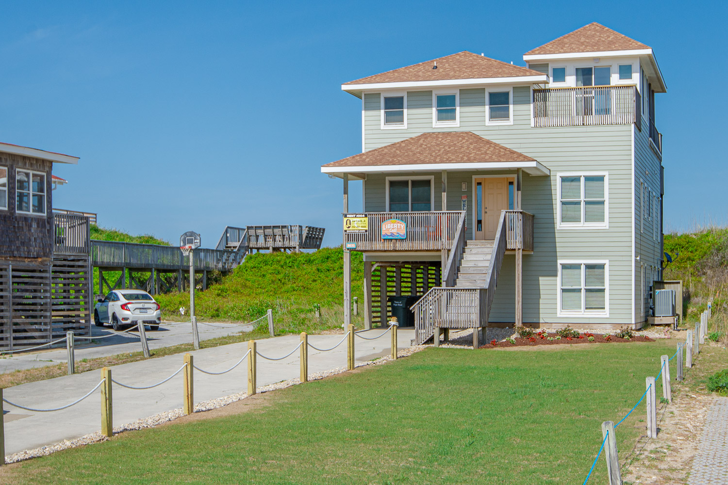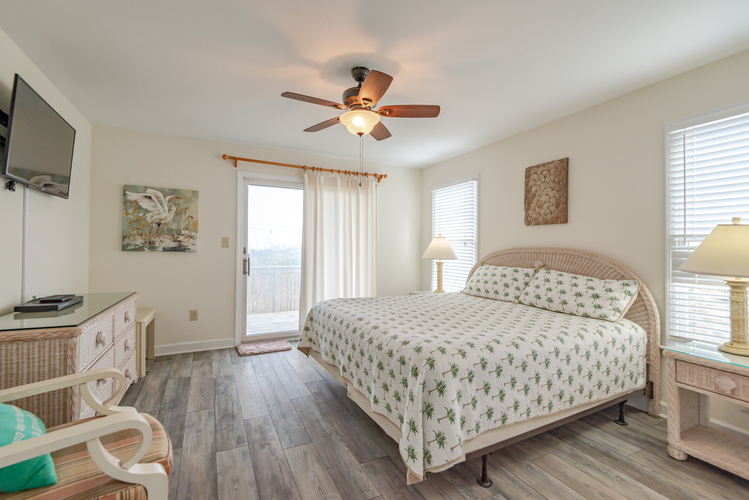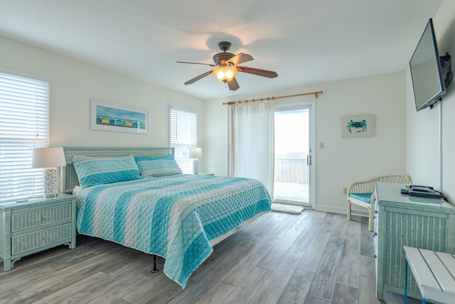 Mid Level: 4 Bedrooms (2 Private Suites w/Kings, Flat Screen TVs, Full Baths, Ocean Views; Private Suite w/Queen, Flat Screen TV, Full Bath; Private Suite w/2 Duo Bunks, Flat Screen TV, Full Bath), and Covered Deck w/Walkway to Dune Top Deck w/Built-In Seating.