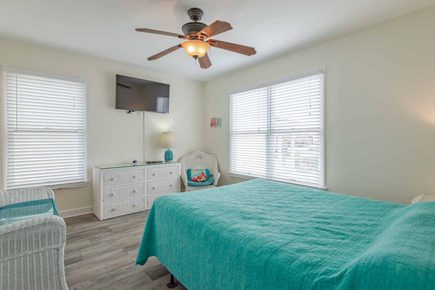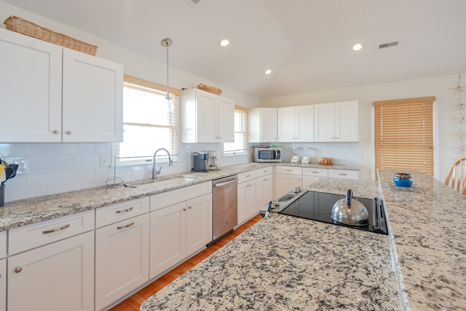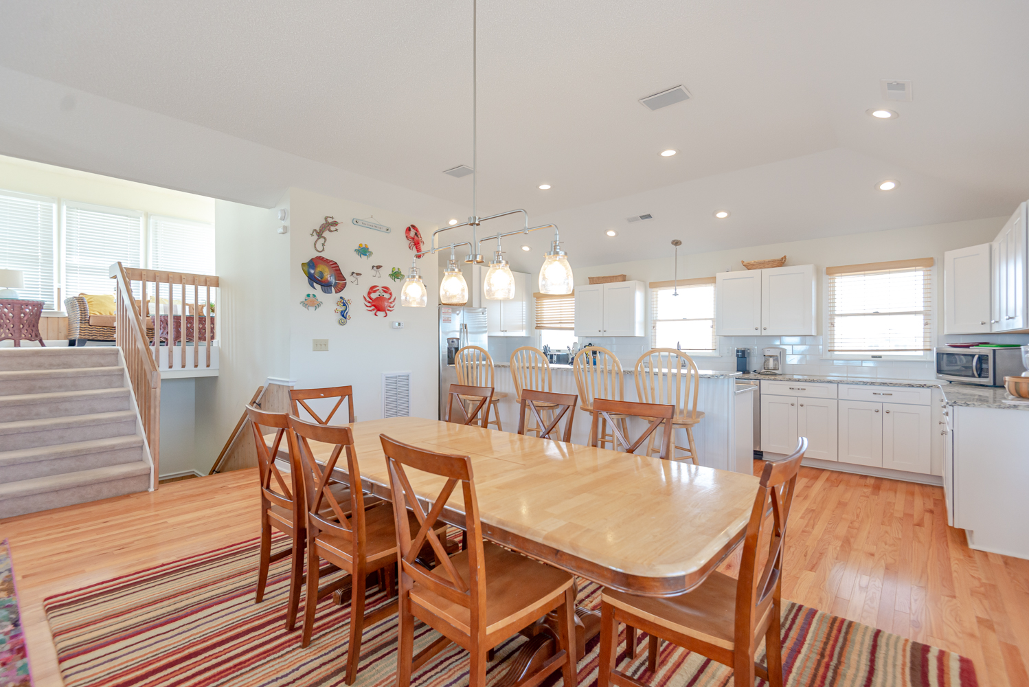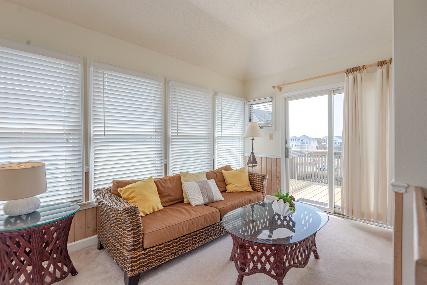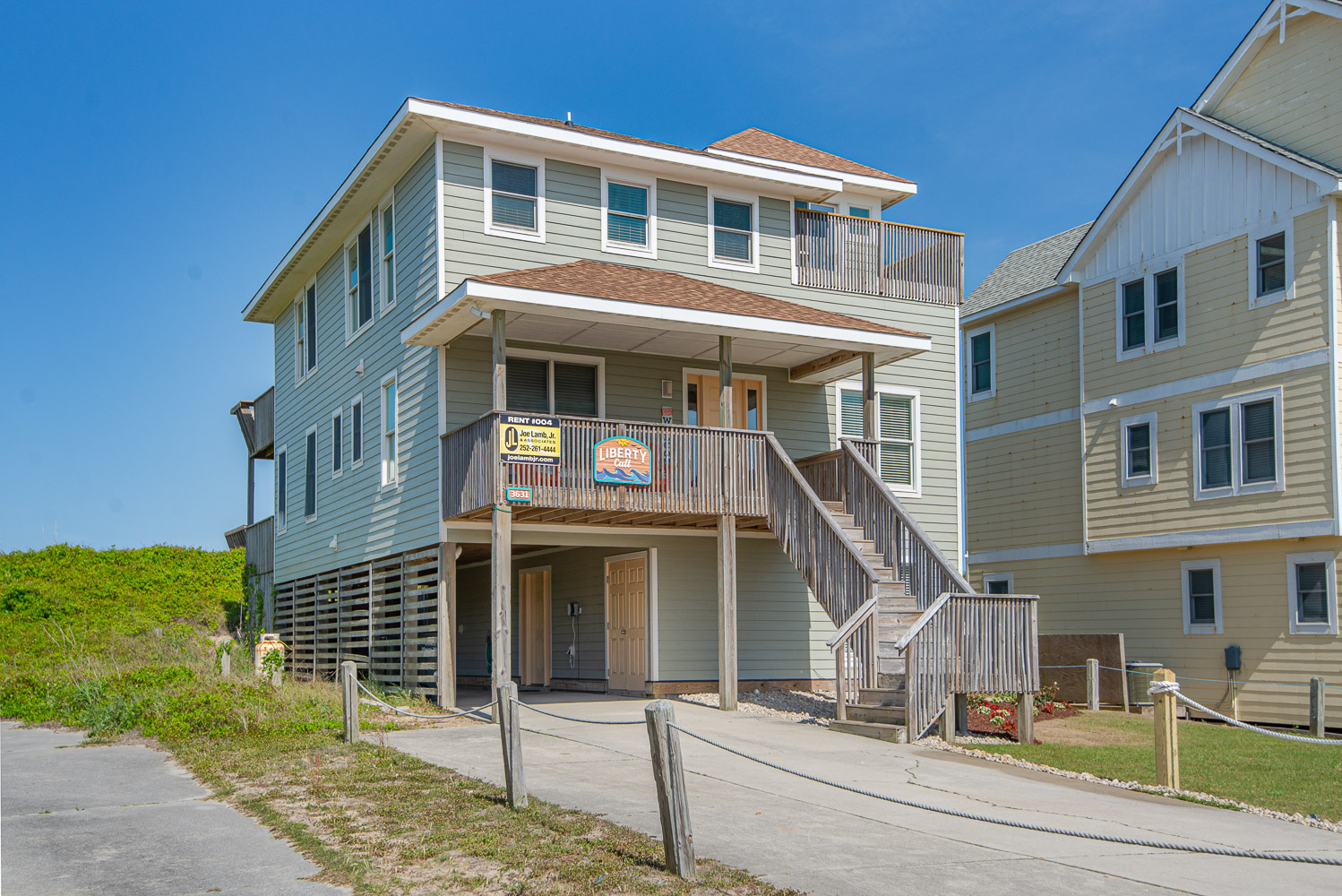 Mid Level: 4 Bedrooms (2 Private Suites w/Kings, Flat Screen TVs, Full Baths, Ocean Views; Private Suite w/Queen, Flat Screen TV, Full Bath; Private Suite w/2 Duo Bunks, Flat Screen TV, Full Bath), and Covered Deck w/Walkway to Dune Top Deck w/Built-In Seating.