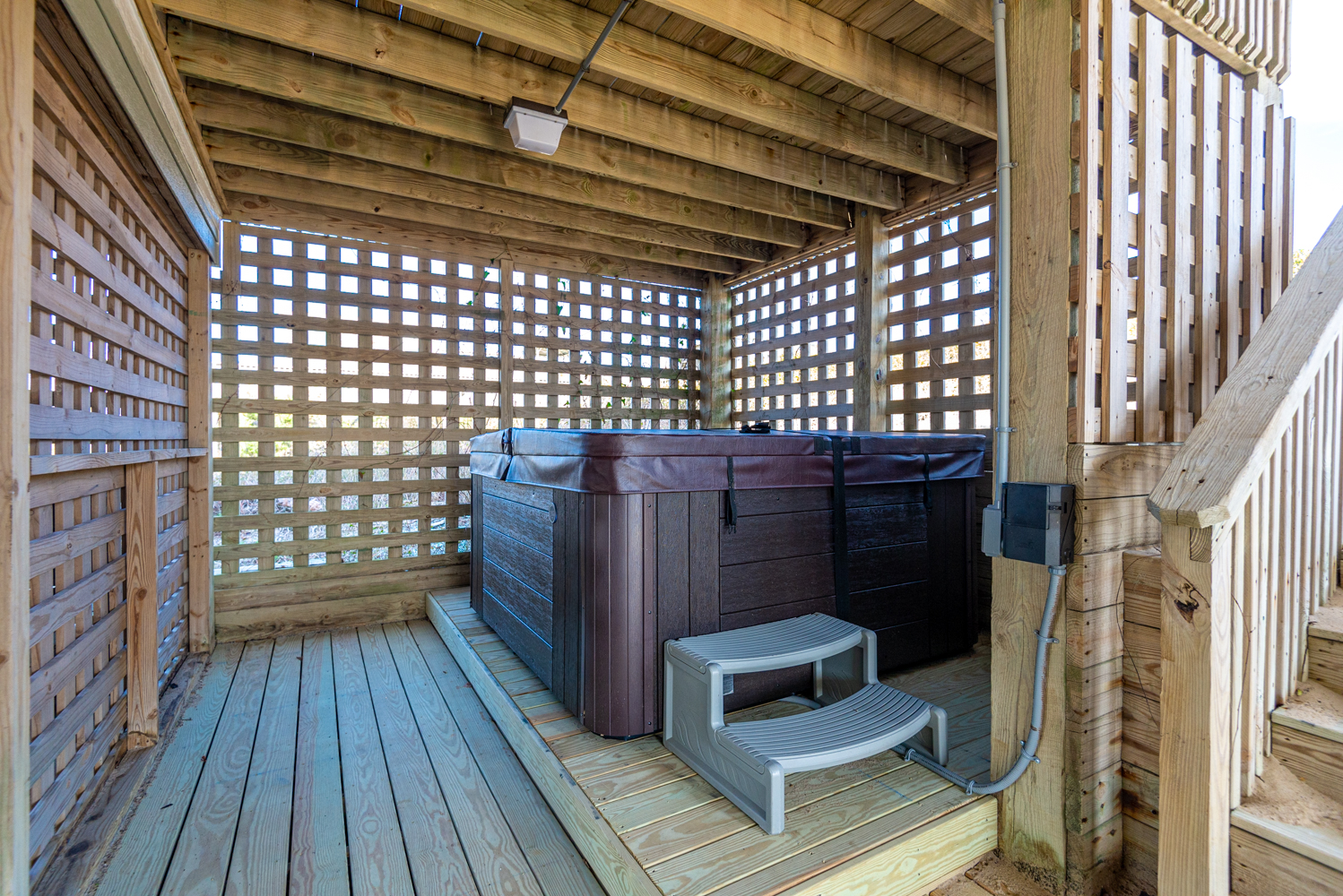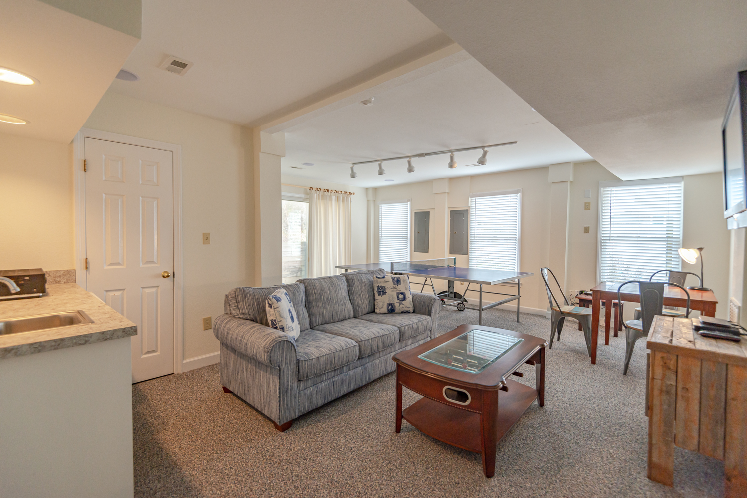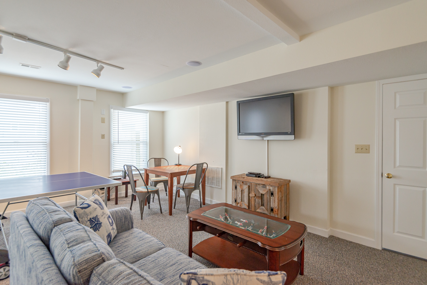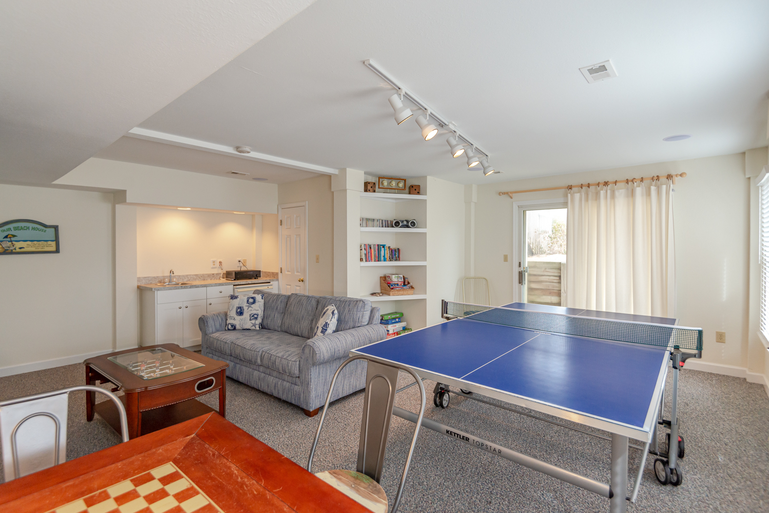 Ground Level: Parking for 5 Cars, Covered Entry, Rec. Room, Wet Bar, Mini-Refrigerator, Stereo, Flat Screen TV, Blu-ray DVD, Ping Pong Table; Private Suite w/Queen, Flat Screen TV, Full Bath; Half Bath, Access to Enclosed Outside Shower, Gas Grill, and Hot Tub w/Privacy Enclosure.