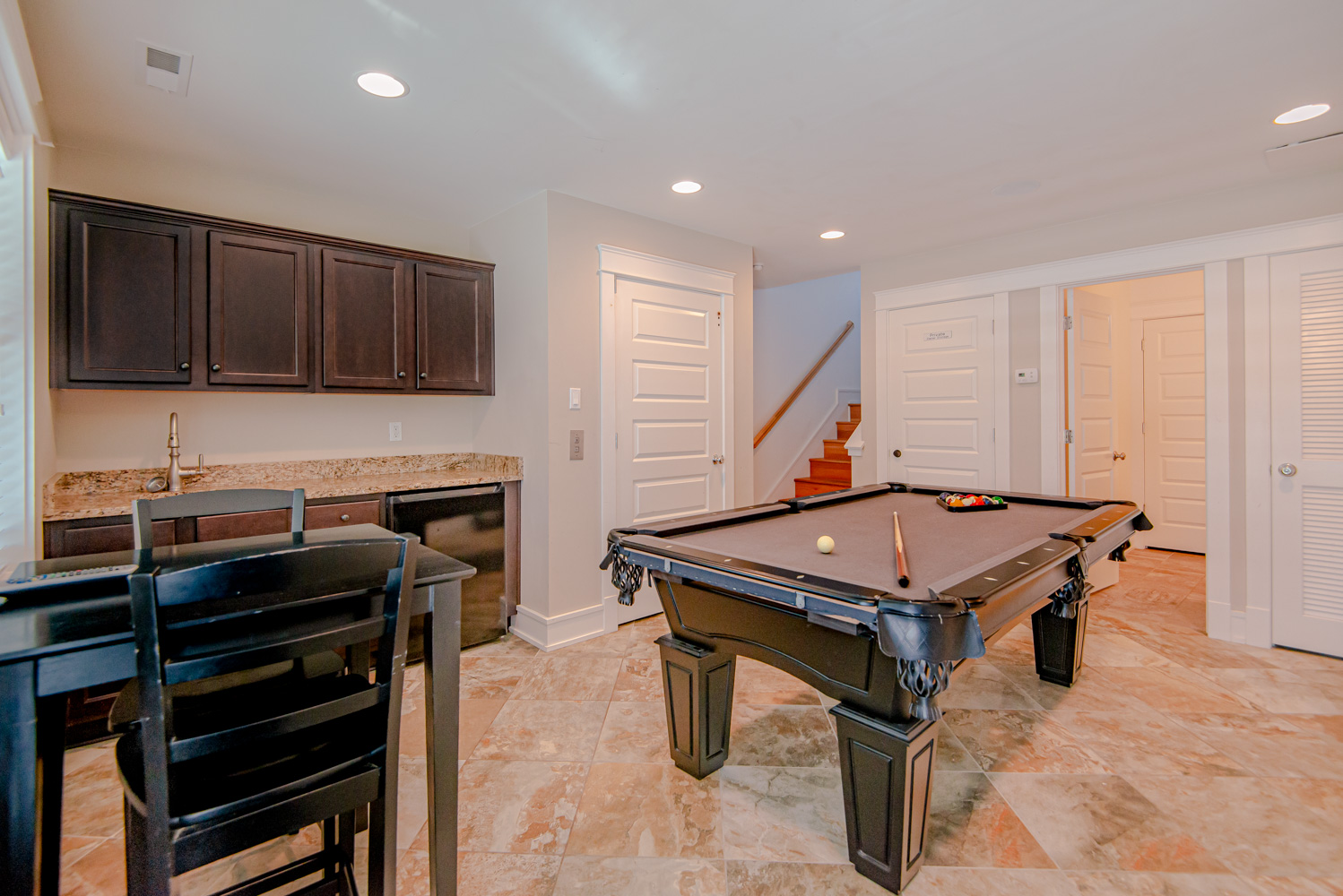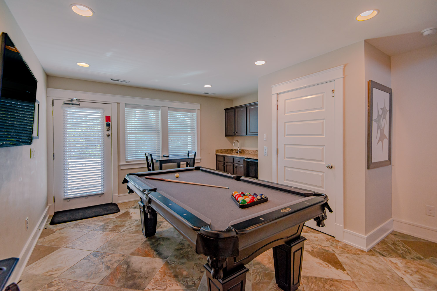 First Level: Elevator, Rec. Room w/Pool Table, TV, Wet Bar, Half Bath, and Access to Pool Patio Area.