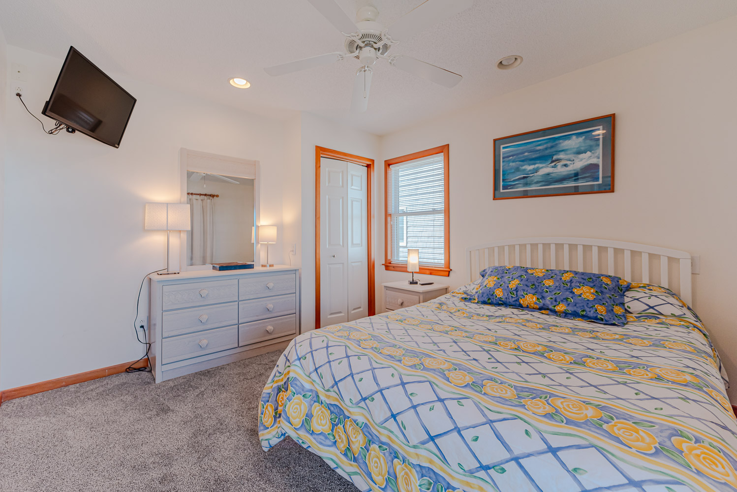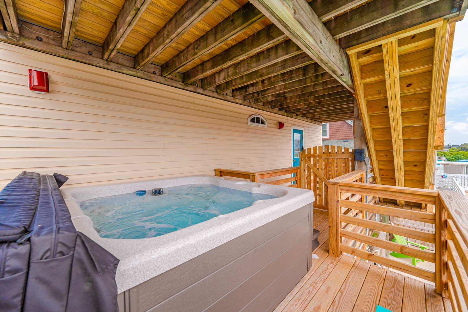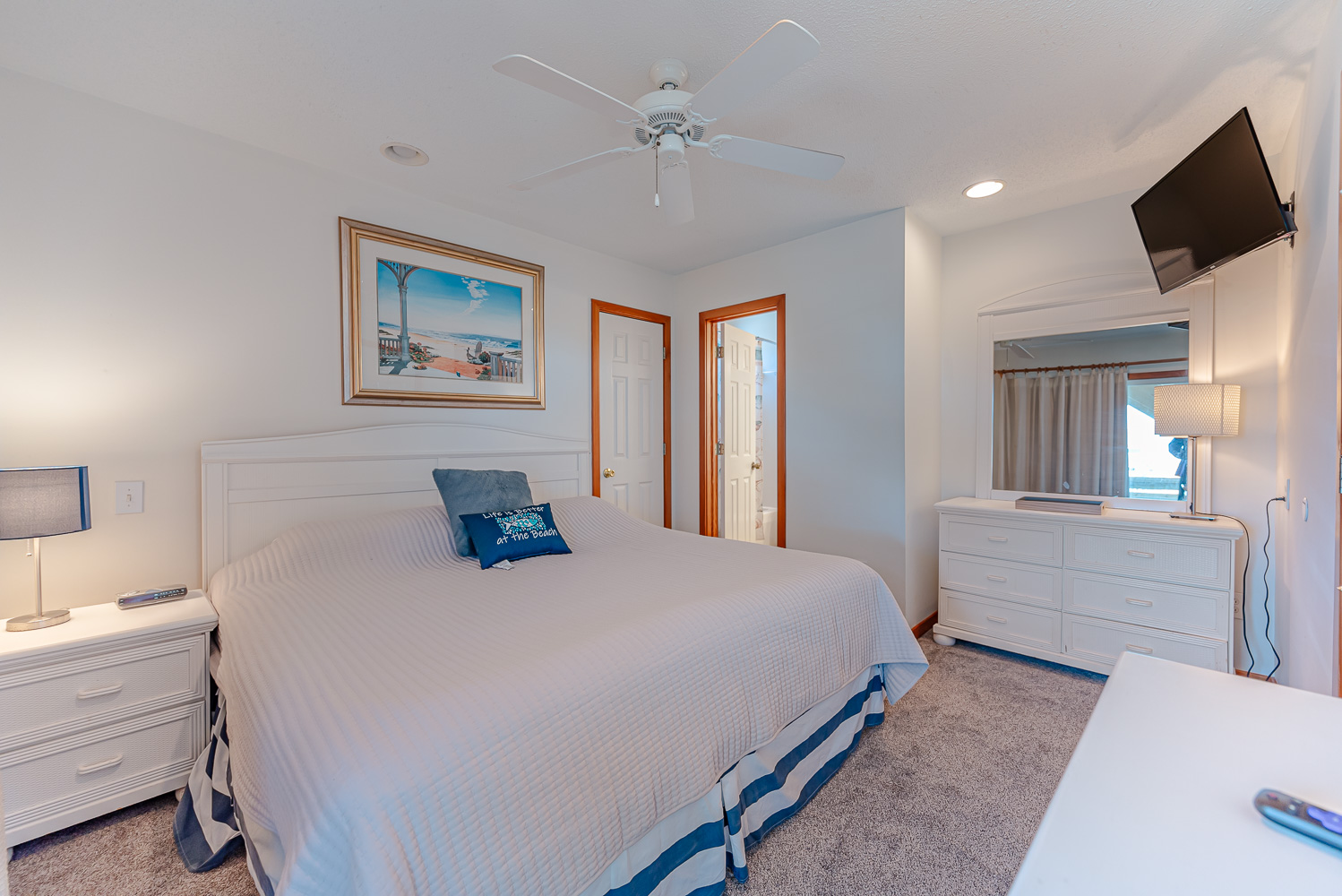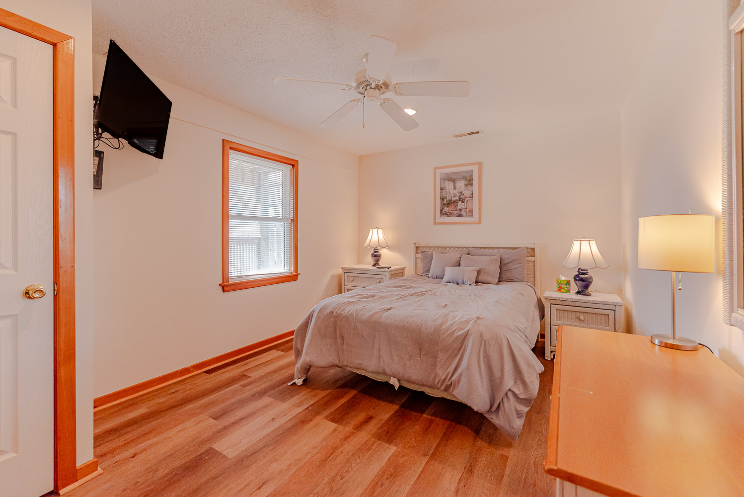 Mid Level: Sitting Area, Daybed w/Trundle, TV; 3 Bedrooms (Private Suite w/King, TV, Full Bath w/Tub/Shower, Access to Covered Deck; Private Suite w/Queen, TV, Full Bath w/Tub/Shower, Access to Covered Deck; 1 w/Duo Bunk w/Trundle, TV), Full Hall Bath w/Tub/Shower, and Gated Covered Deck w/Hot Tub and Porch Swing Overlooking Pool Area.