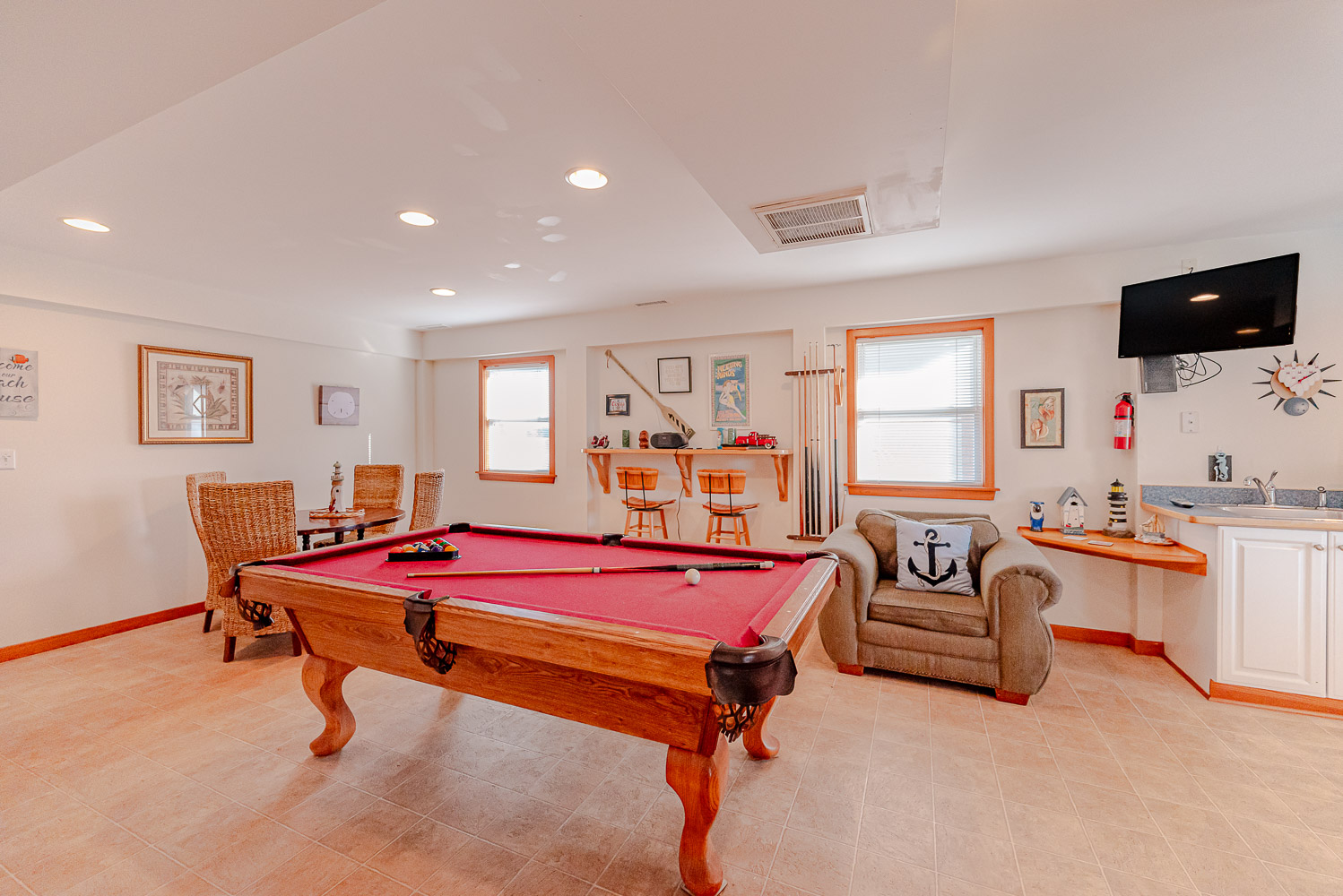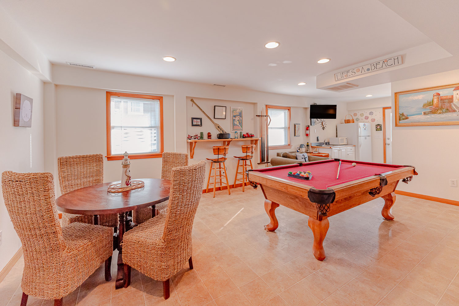 Ground Level: Parking for 3 Cars, Garage w/Laundry Area, Ping Pong Table; Covered Entry, Rec. Room, Pool Table, TV, Sitting Area, Wet Bar, Microwave, Refrigerator; Private Suite w/Queen, TV, Full Bath w/Shower (Accessible from Rec. Room Also), and Access to Private 14x20 Swimming Pool - Open Seasonally, Picnic Table, Charcoal Grill, and Large Fenced in Yard.