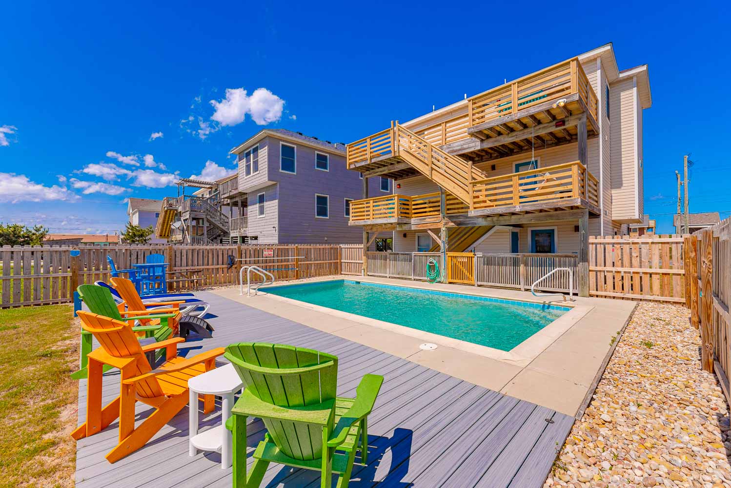 Features include: C/AC - Heat, Washer/Dryer, Dishwasher, 2 Microwaves, TVs, Wireless Internet, Ceiling Fans, Baby Equipment (Baby Gates, High Chair), Beach Cart, Cornhole Boards, Board Games, and Pool / Deck Furniture. No Pets Allowed. No Smoking Allowed.