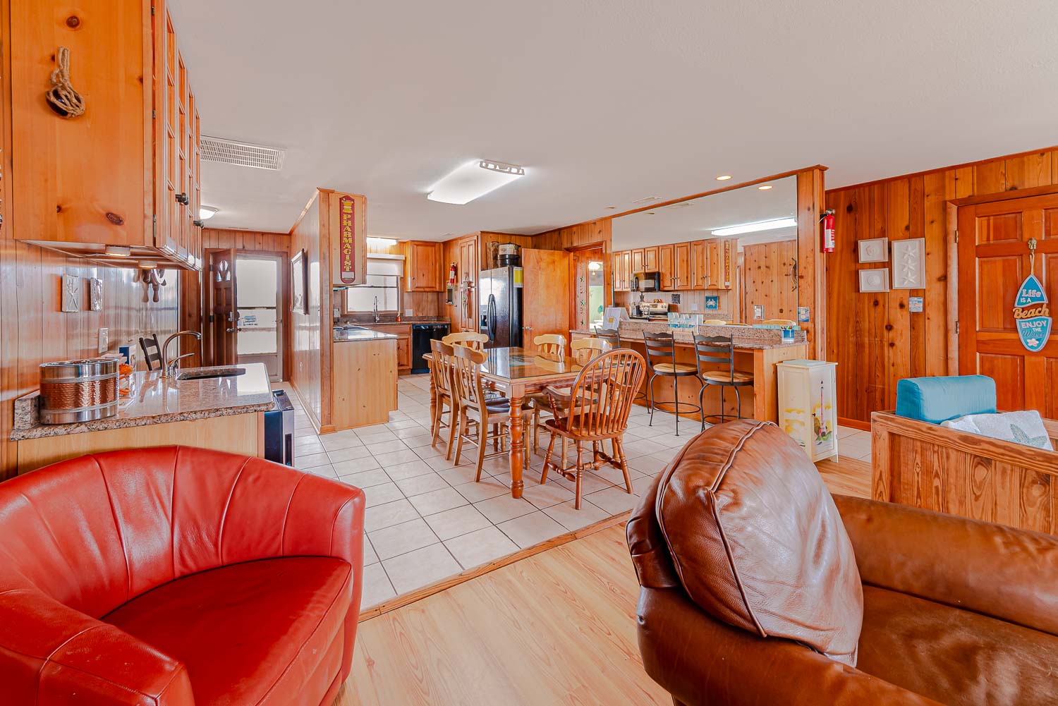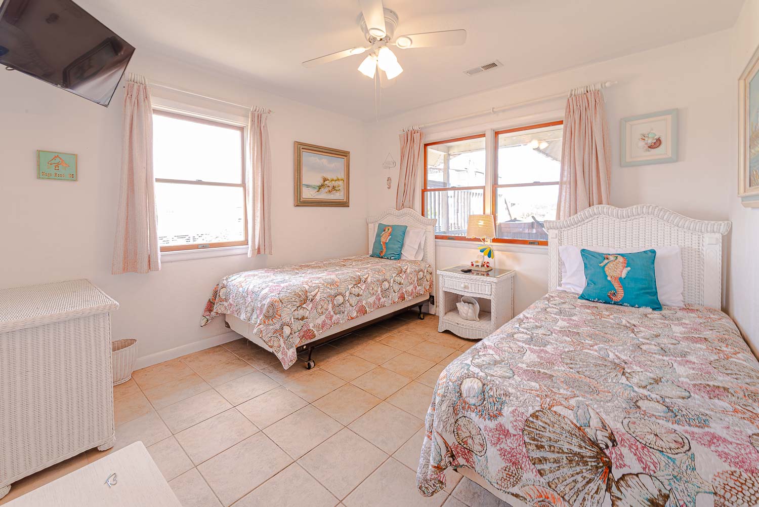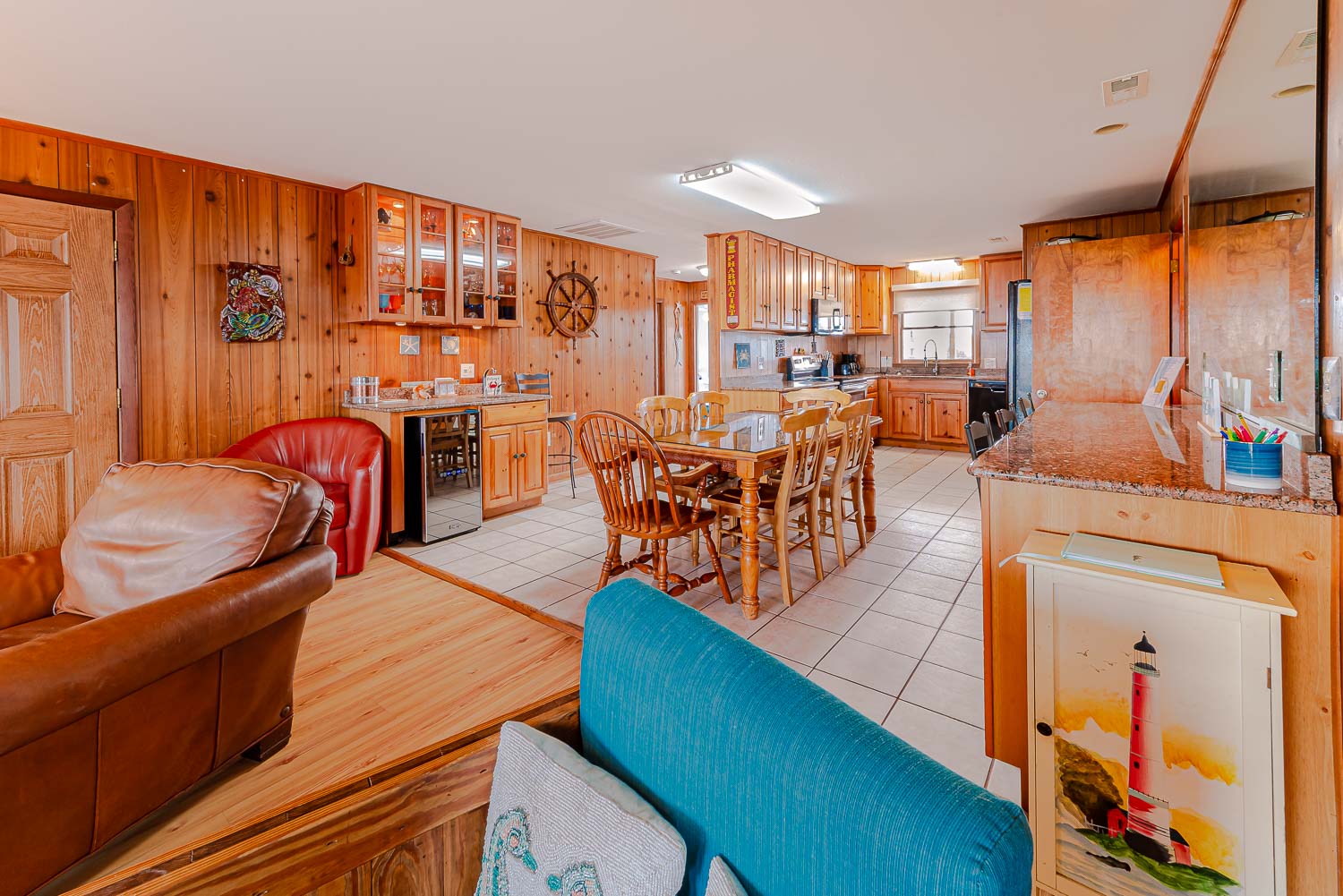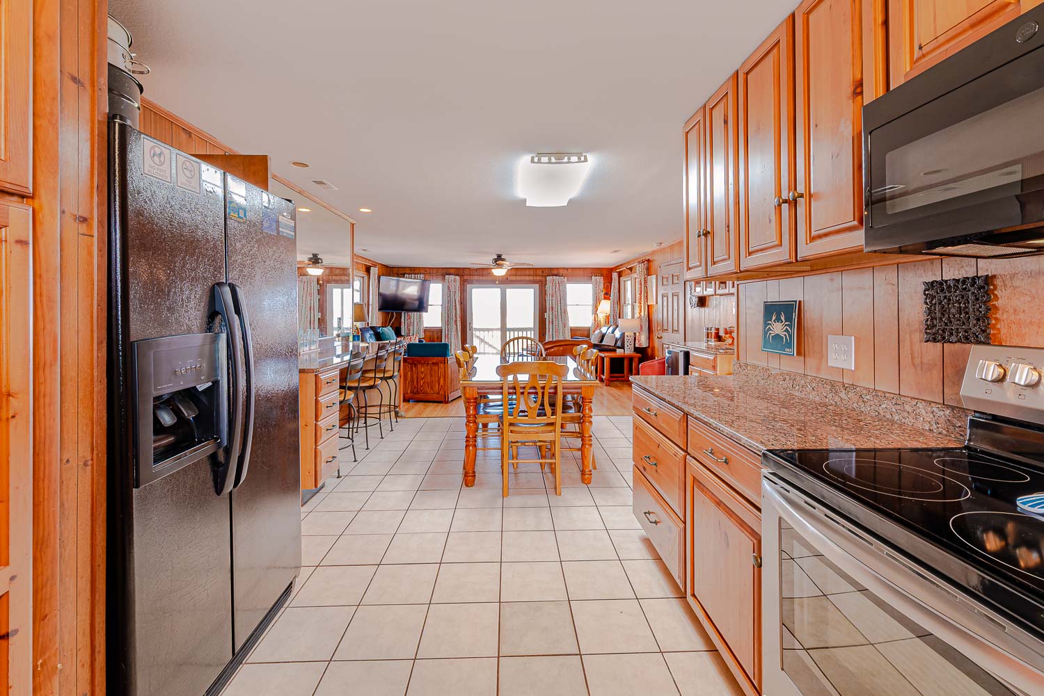 Main Level: Living/Dining/Kitchen Area, TV, 4 Bedrooms (2 w/Queens, TV; 1 w/2 Singles, TV; 1 w/2 Bunk Sets, TV), 2 Full Baths, Oceanfront Sun Room w/Furniture, Covered Deck w/Hot Tub, Picnic Table, Walkway to Beach w/Dune Top Deck, and Enclosed Outside Shower.