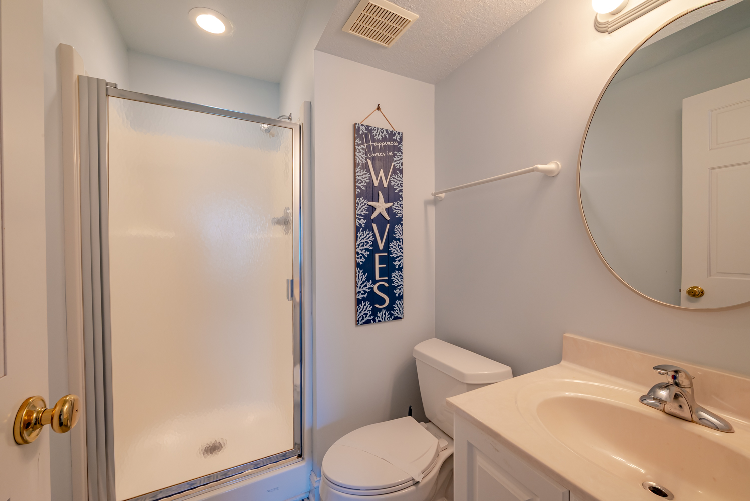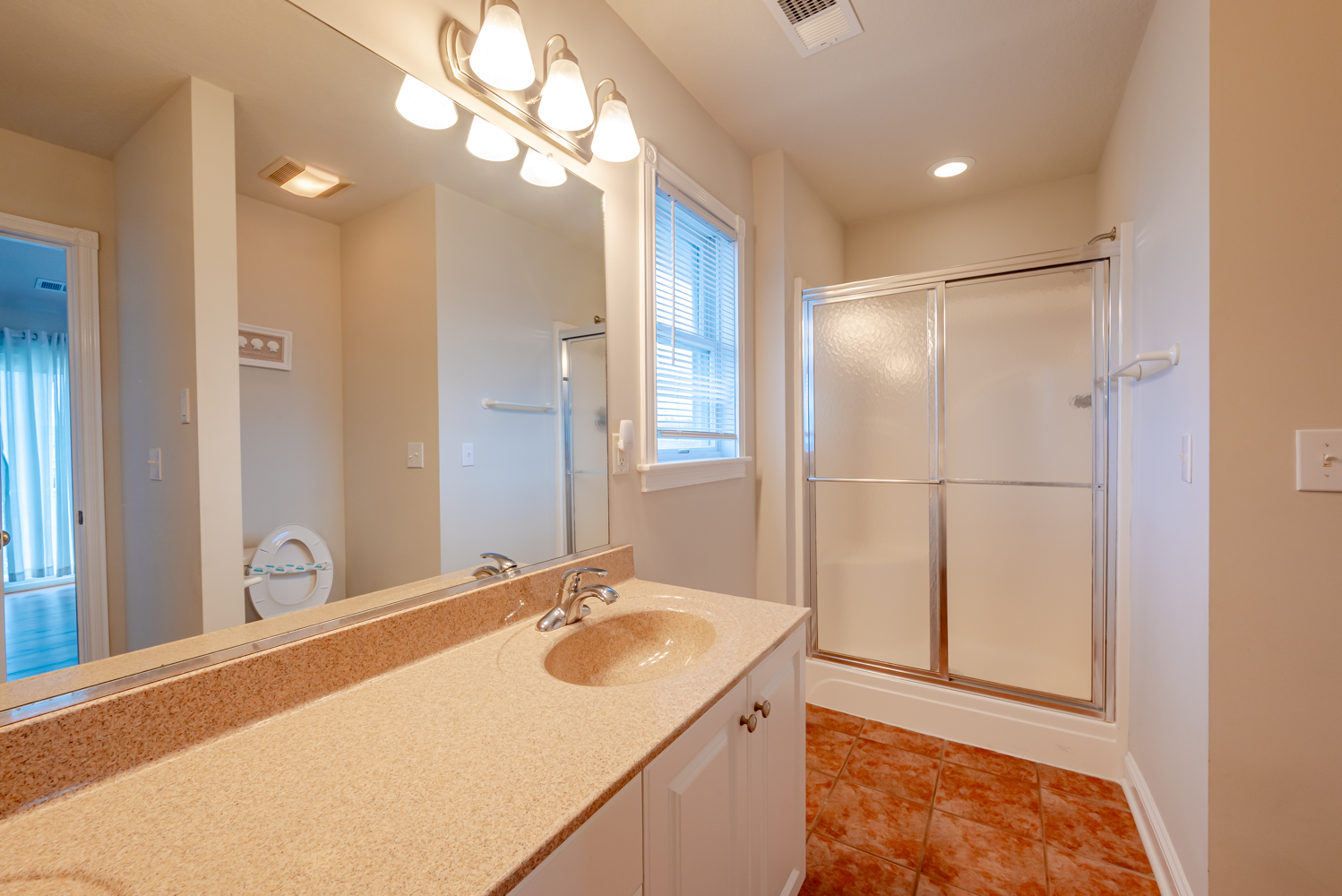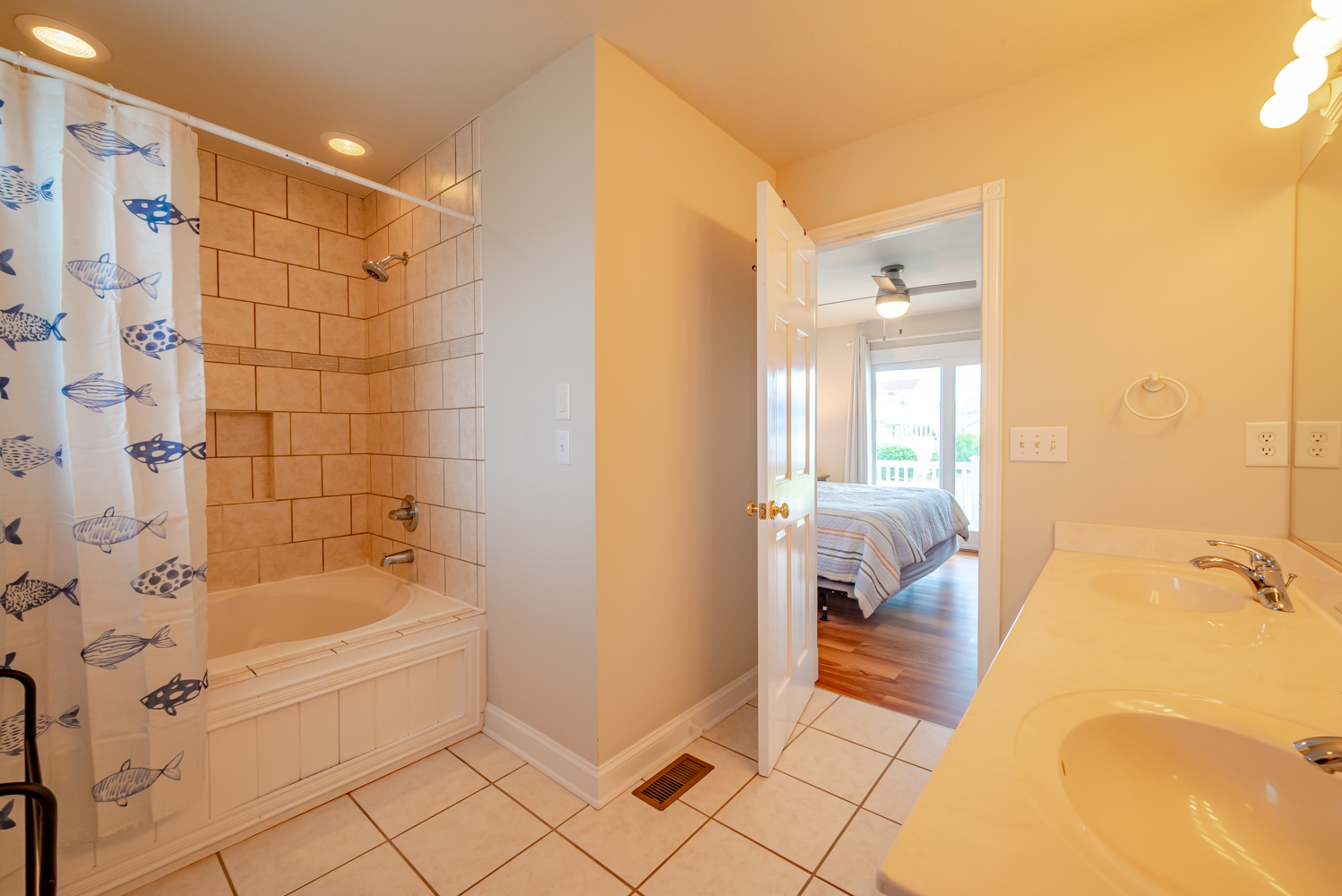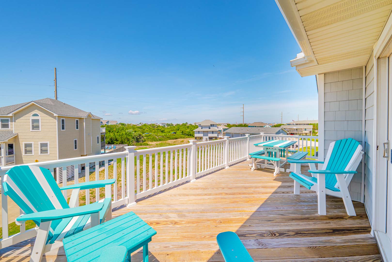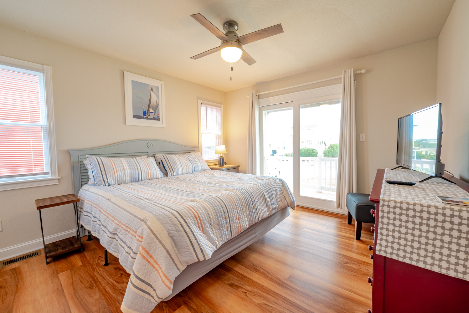 Top Level: Living Area w/TV/DVD, Access to Sun Deck w/Deck Furniture; Dining Area w/Seating for Eight (8); Fully Equipped Kitchen Area, Granite Counter Tops, Island Bar Seating for Four (4); Half Bath, Steps to Ship’s Watch Sitting Area. Private Suite w/King, TV, Full Bath w/Jet Tub, Walk-In Shower, and Access to Private Sun Deck.