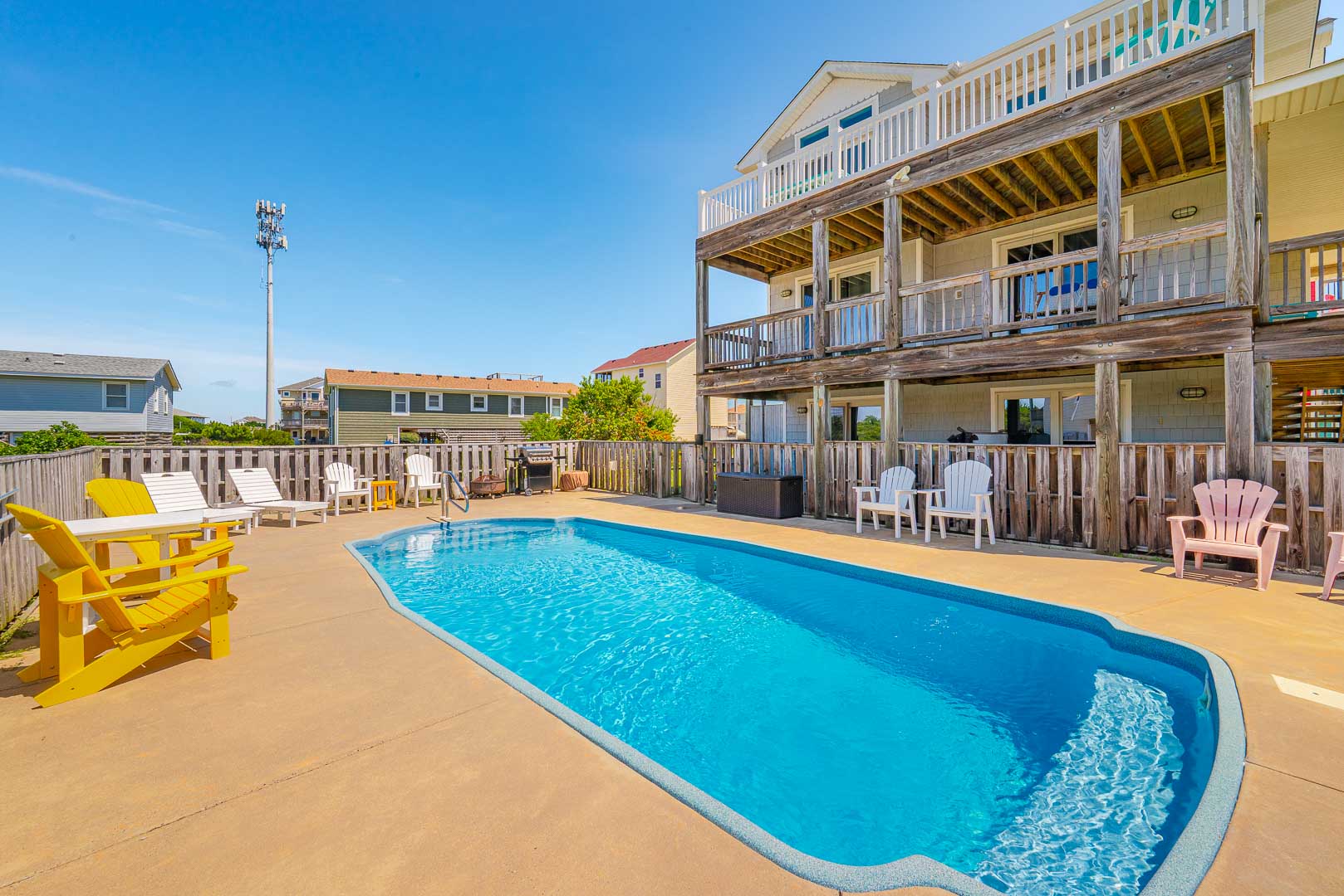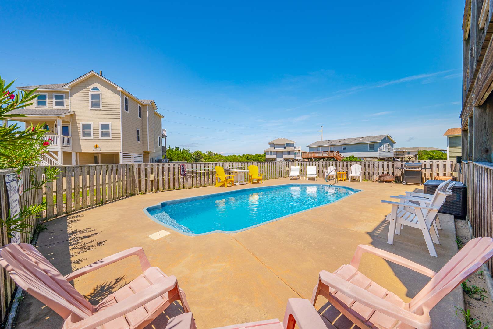 Ground Level: Parking for 4 Cars, Covered Entry to Home, Rec. Room w/Pool Table, Wet Bar, Full Size Refrigerator, TV, Full Bath, Laundry Area, Bedroom w/Duo Bunk, Single, Access to Covered Area w/Hot Tub, Enclosed Outside Shower, Fenced in Private Heated Saltwater Swimming Pool - Open Seasonally (Can be Heated for $200.00 Per Week, Plus Tax - Please Bear in Mind That Pool Temperature is Subject to Outside Temperatures and Conditions), Pool Furniture, and Gas Grill.
