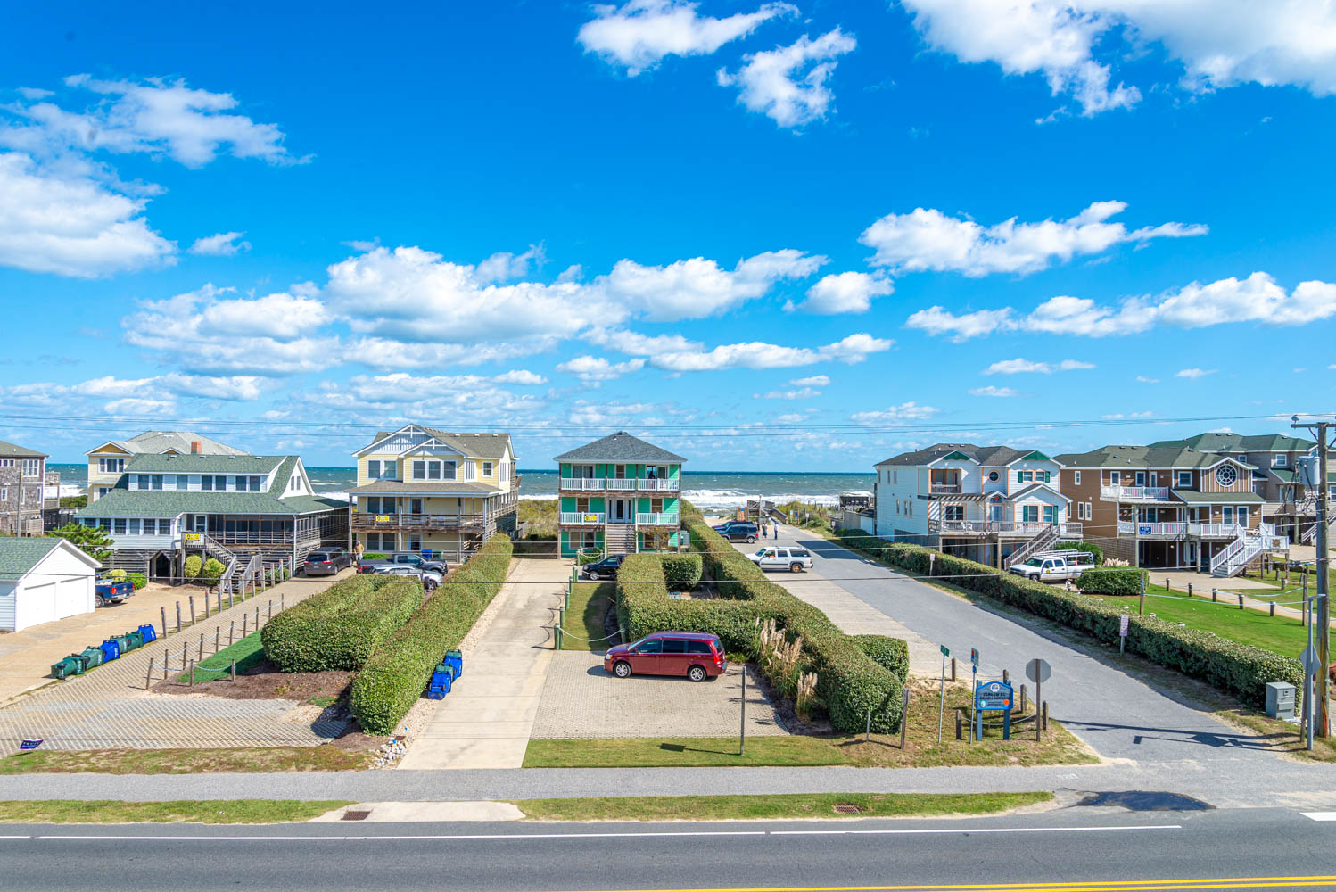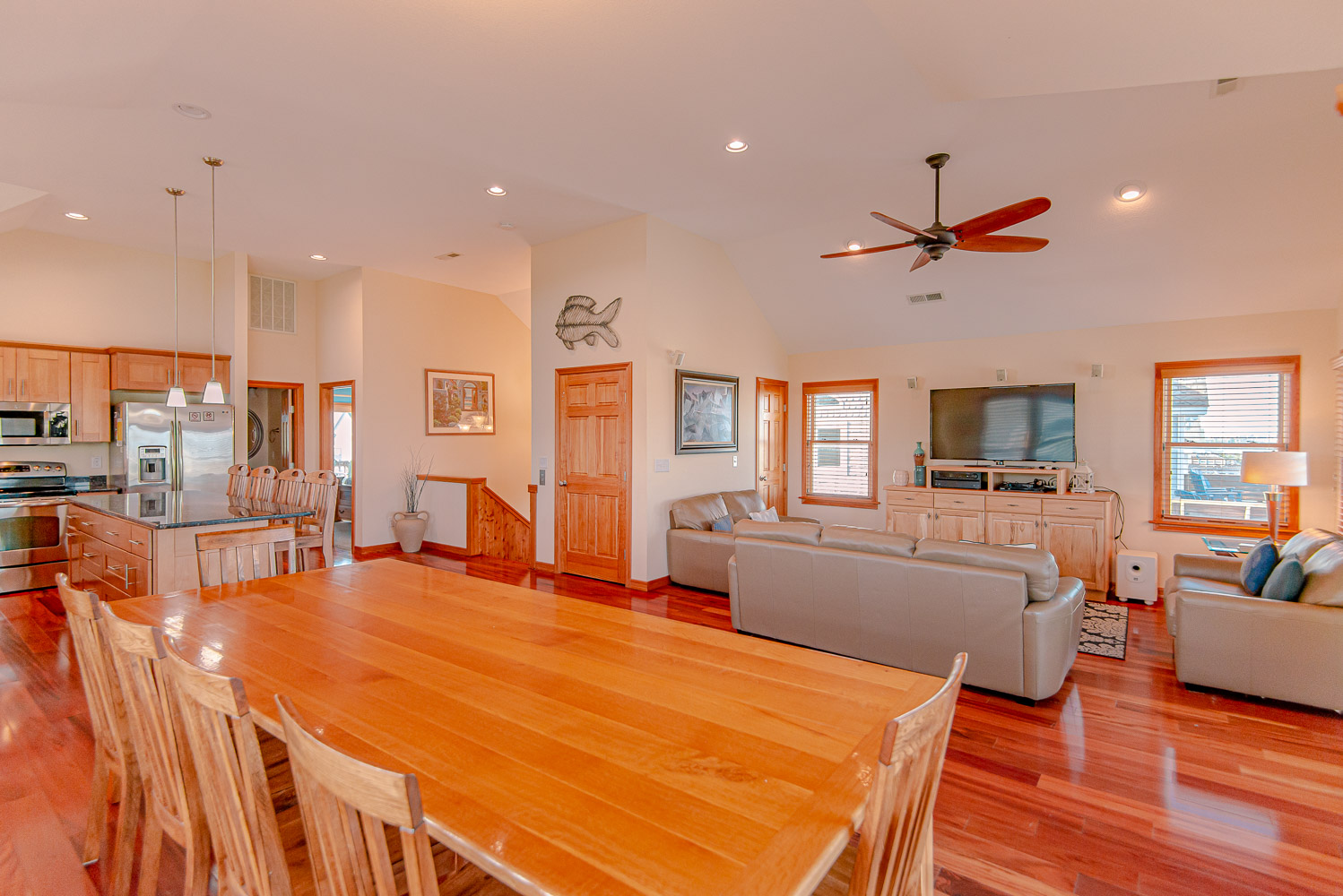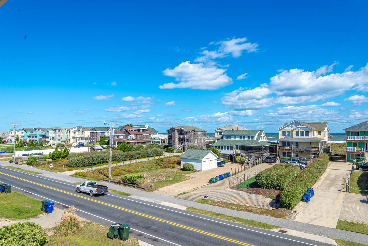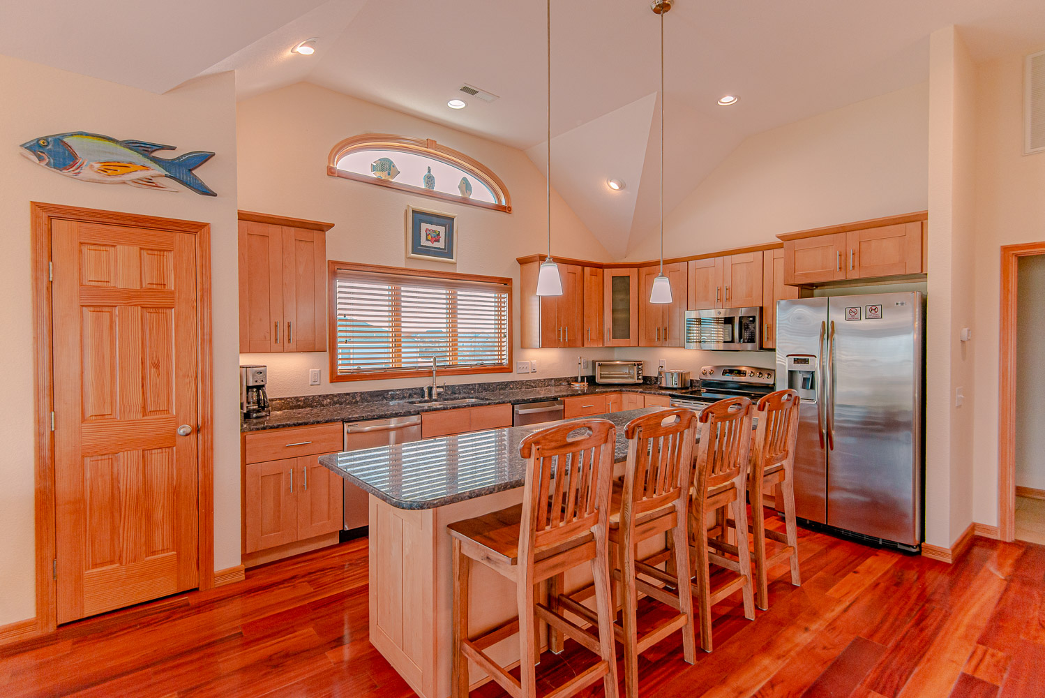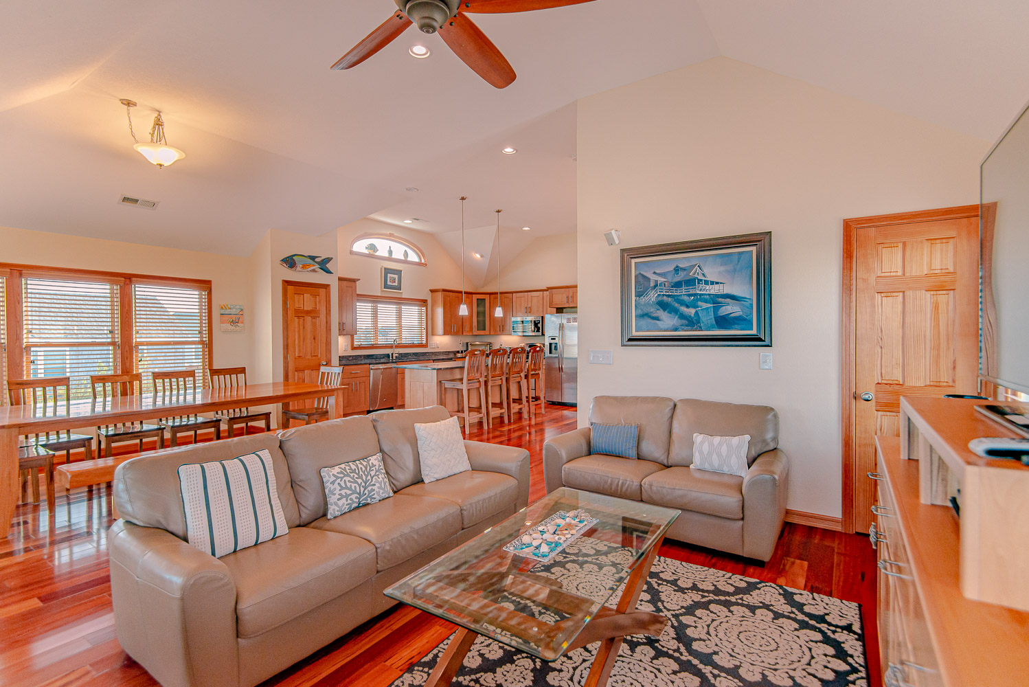 Top Level: Living Area, 50 inch Roku TV, Great Ocean Views, Large Farm Style Kitchen Table, Half Bath, Kitchen Area, Island Breakfast Bar w/Seating for Four (4), 2 Dishwashers, Full Size Refrigerator, Private Suite w/King, 32 Inch Roku TV, Full Bath w/Glass Tiled Walk-In Shower; Front Covered and Sun Deck w/Deck Furniture, Back Sun Deck Overlooking Pool Area, Deck Furniture, and Steps to Crow’s Nest w/Views of Ocean and Jockey's Ridge State Park.