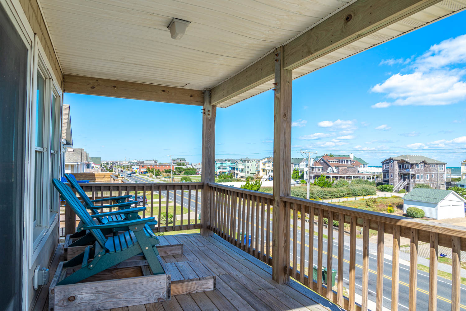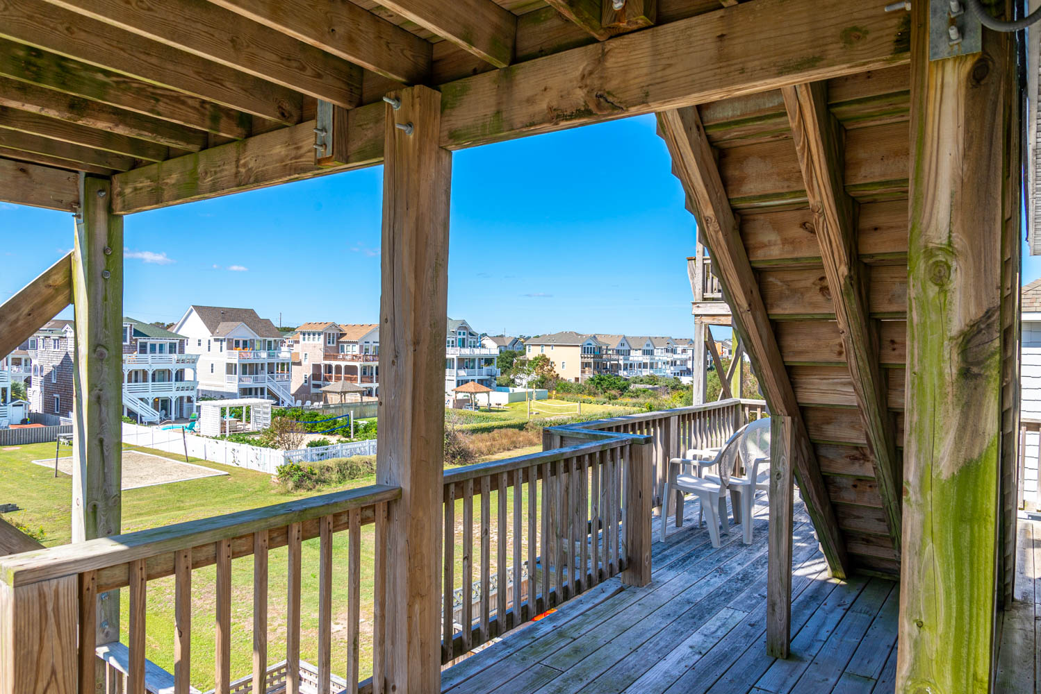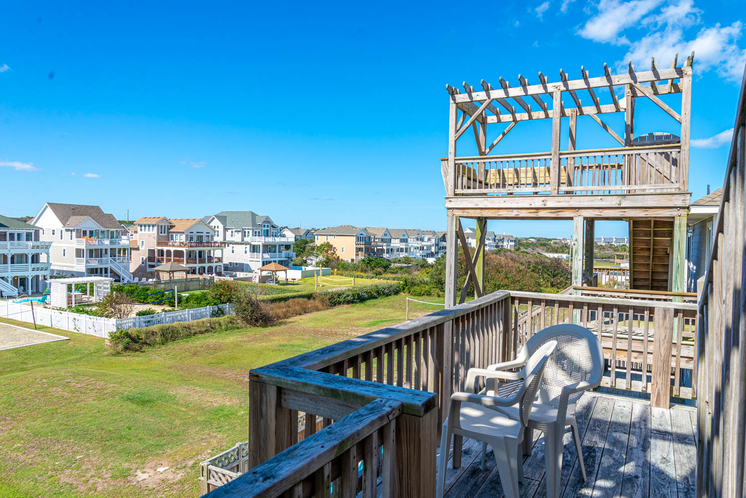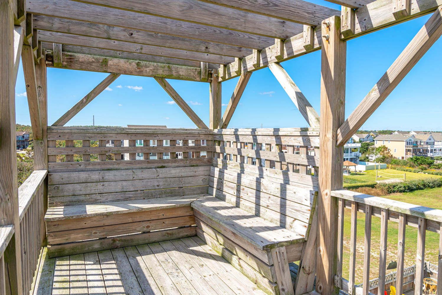 Top Level: Living Area, 50 inch Roku TV, Great Ocean Views, Large Farm Style Kitchen Table, Half Bath, Kitchen Area, Island Breakfast Bar w/Seating for Four (4), 2 Dishwashers, Full Size Refrigerator, Private Suite w/King, 32 Inch Roku TV, Full Bath w/Glass Tiled Walk-In Shower; Front Covered and Sun Deck w/Deck Furniture, Back Sun Deck Overlooking Pool Area, Deck Furniture, and Steps to Crow’s Nest w/Views of Ocean and Jockey's Ridge State Park.
