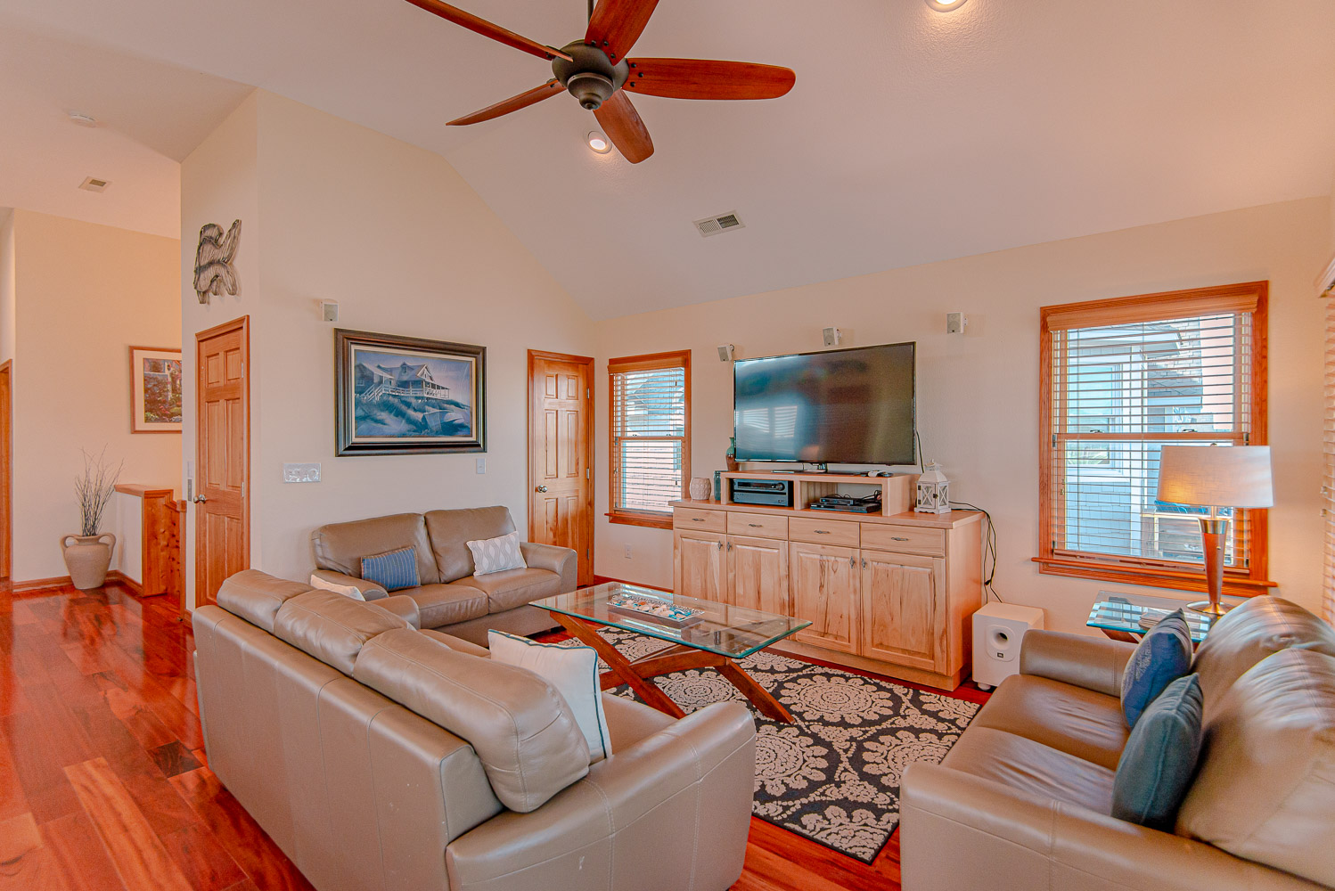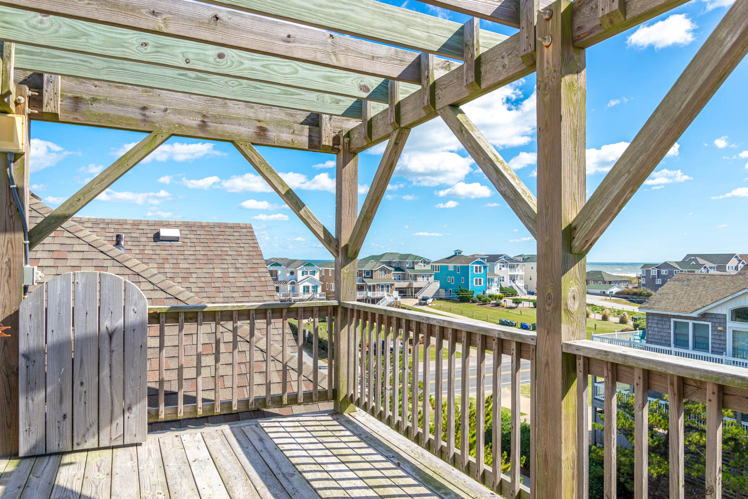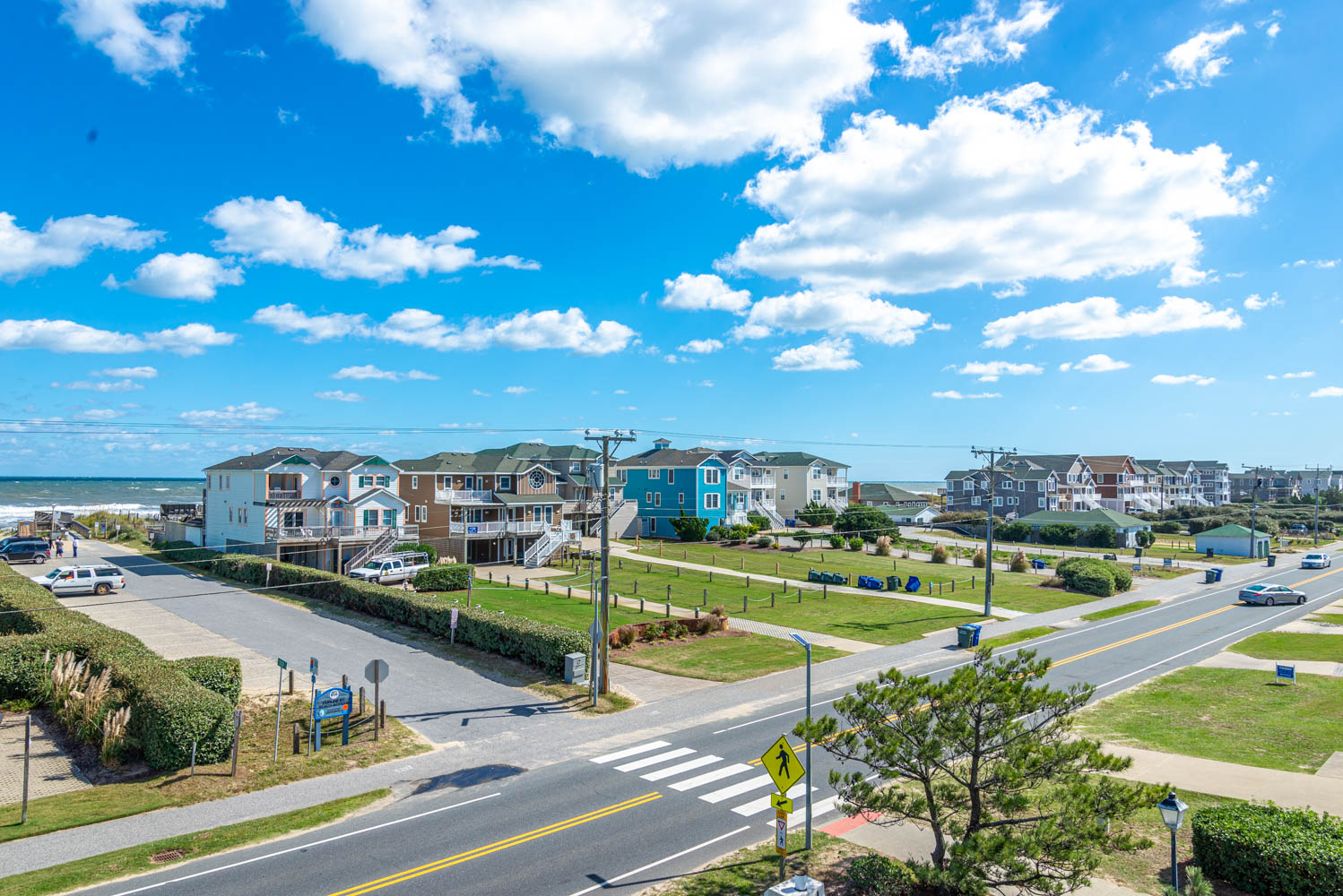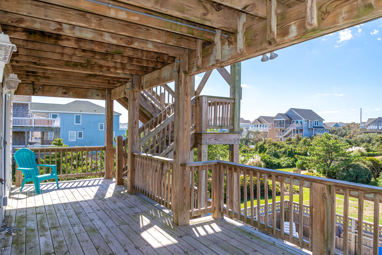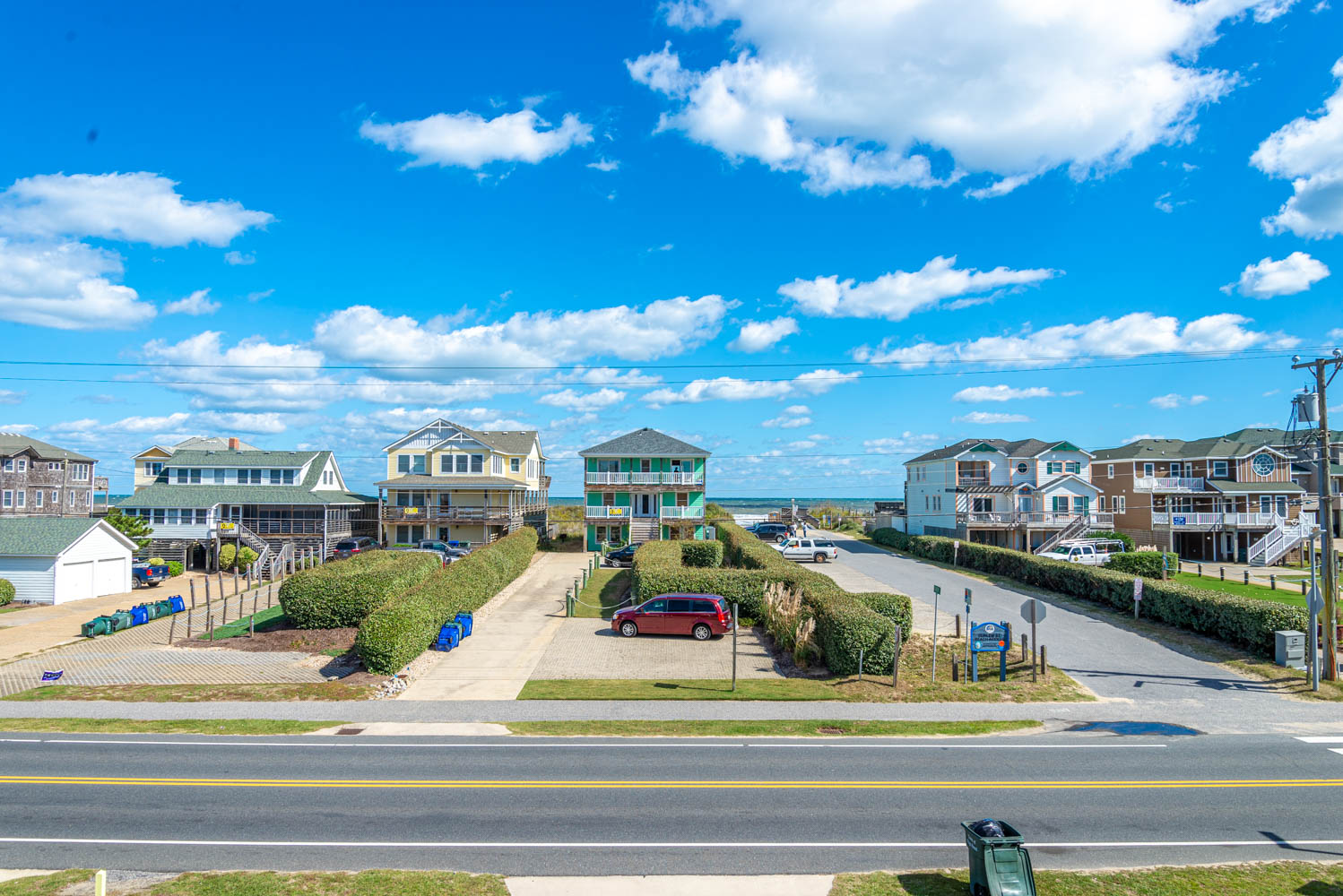 Top Level: Living Area, 50 inch Roku TV, Great Ocean Views, Large Farm Style Kitchen Table, Half Bath, Kitchen Area, Island Breakfast Bar w/Seating for Four (4), 2 Dishwashers, Full Size Refrigerator, Private Suite w/King, 32 Inch Roku TV, Full Bath w/Glass Tiled Walk-In Shower; Front Covered and Sun Deck w/Deck Furniture, Back Sun Deck Overlooking Pool Area, Deck Furniture, and Steps to Crow’s Nest w/Views of Ocean and Jockey's Ridge State Park.