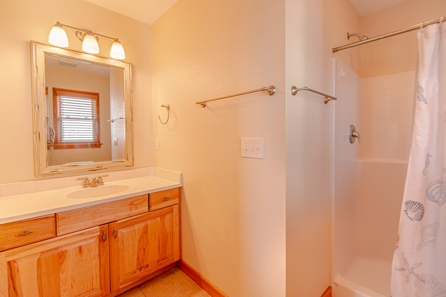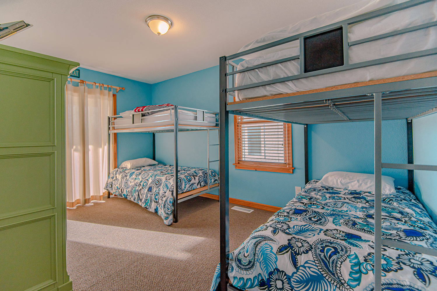 Mid Level: 4 Bedrooms (2 Private Suites w/Kings, 32 Inch Roku TVs, Full Baths w/Tub/Shower, Access to Decks; Private Suite w/King, 32 Inch Roku TV, Full Bath w/Walk-In Shower, Access to Deck; Private Suite w/2 Bunk Sets, 32 inch Roku TV, Full Bath w/Tub/Shower, Access to Deck), Laundry Area, and 2 Covered Decks.
