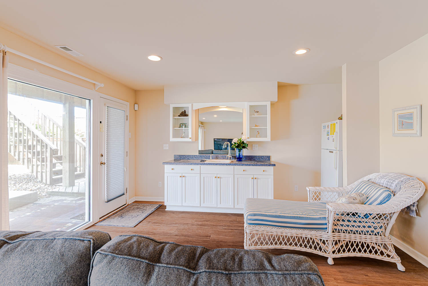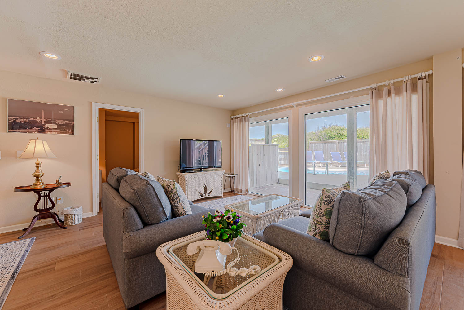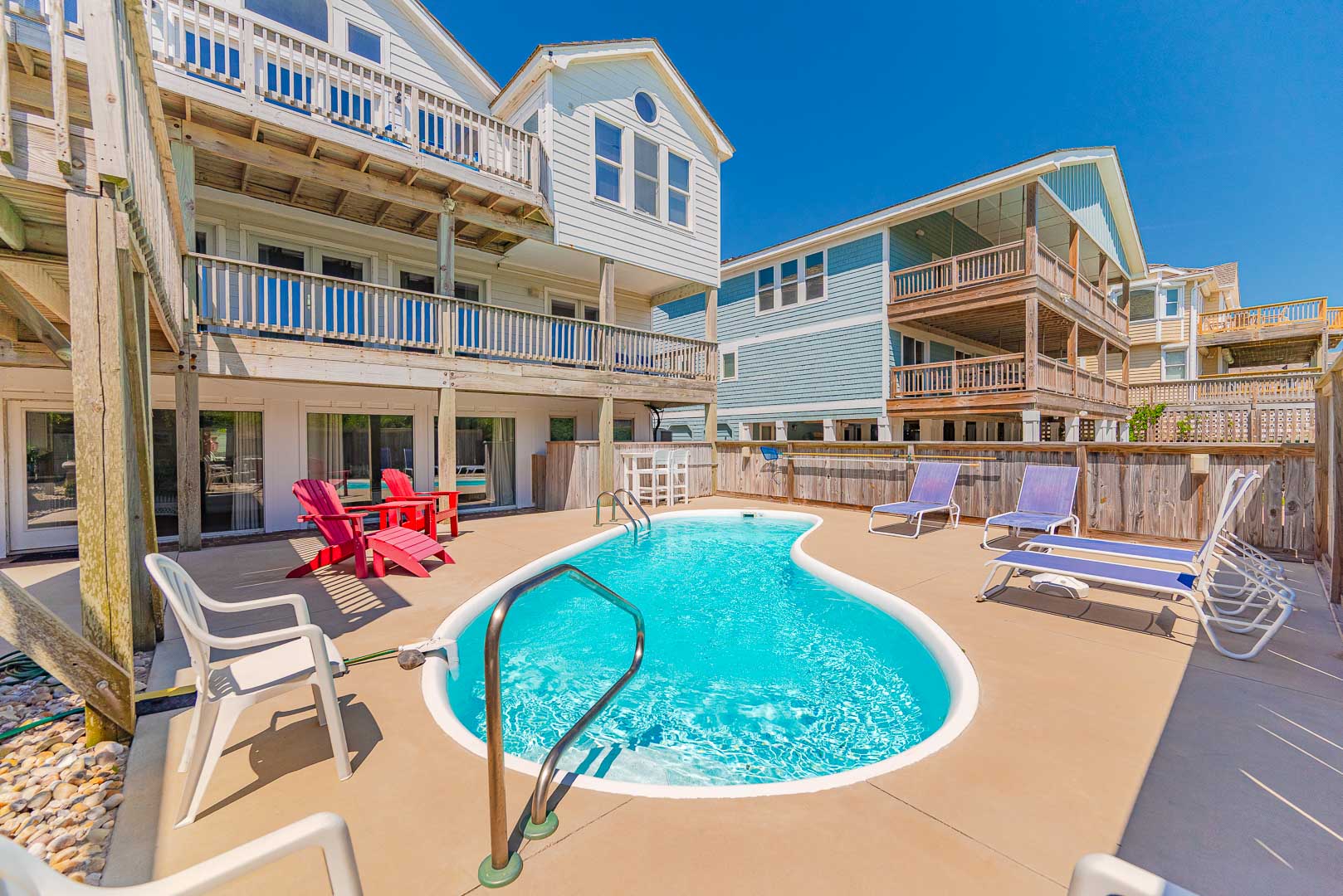 Ground Level: Parking for 5 Cars, Covered Entry, Den w/TV & Large Windows that Provide Great Views of Pool Area, Wet Bar, Full Size Refrigerator, Bedroom w/King, Full Bath, Laundry, Access to Pool Patio, Private 12x24 Swimming Pool - Open Seasonally, Double Enclosed Outside Shower, & Walkway to Dune Top Deck w/Sand Path to the Beach.