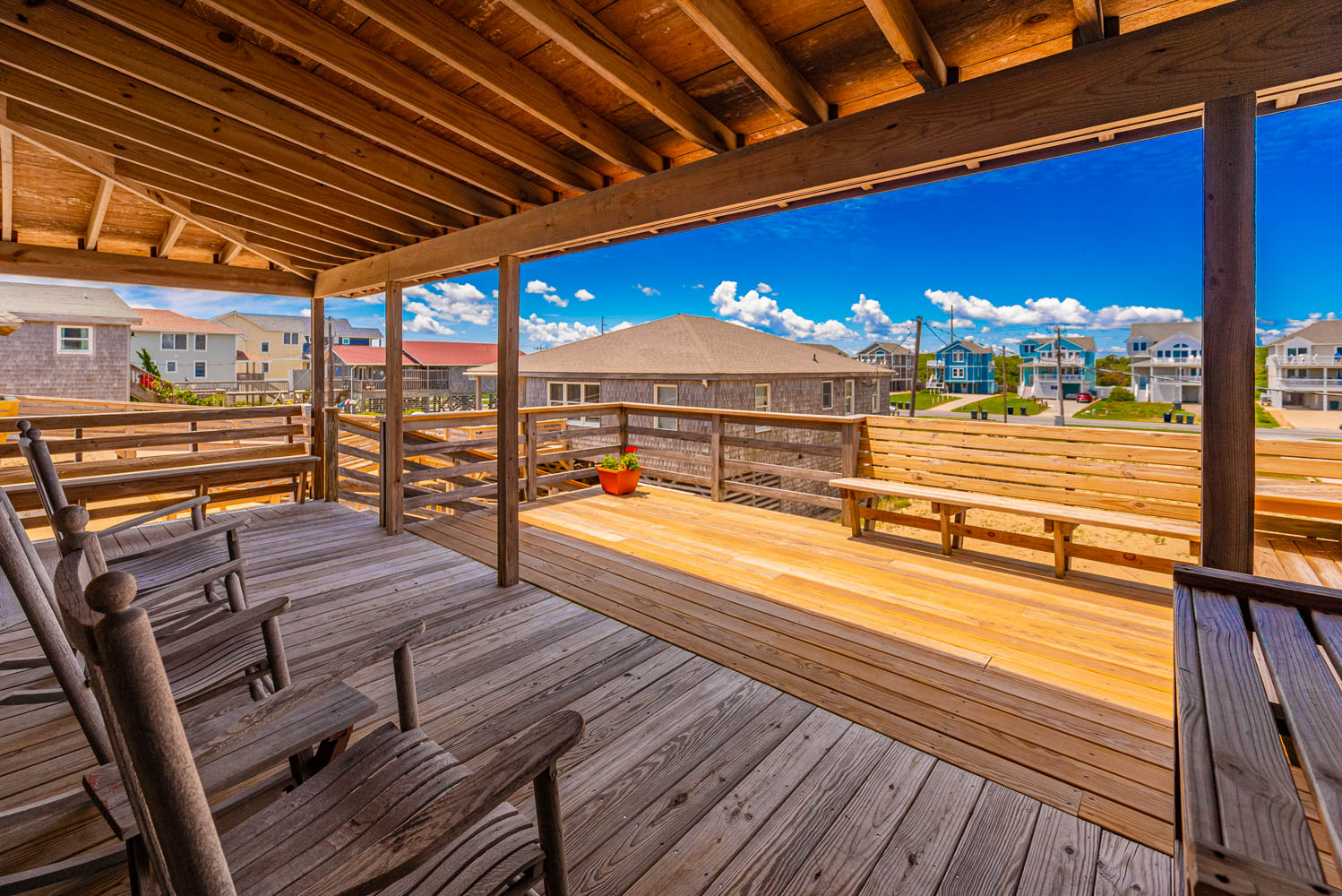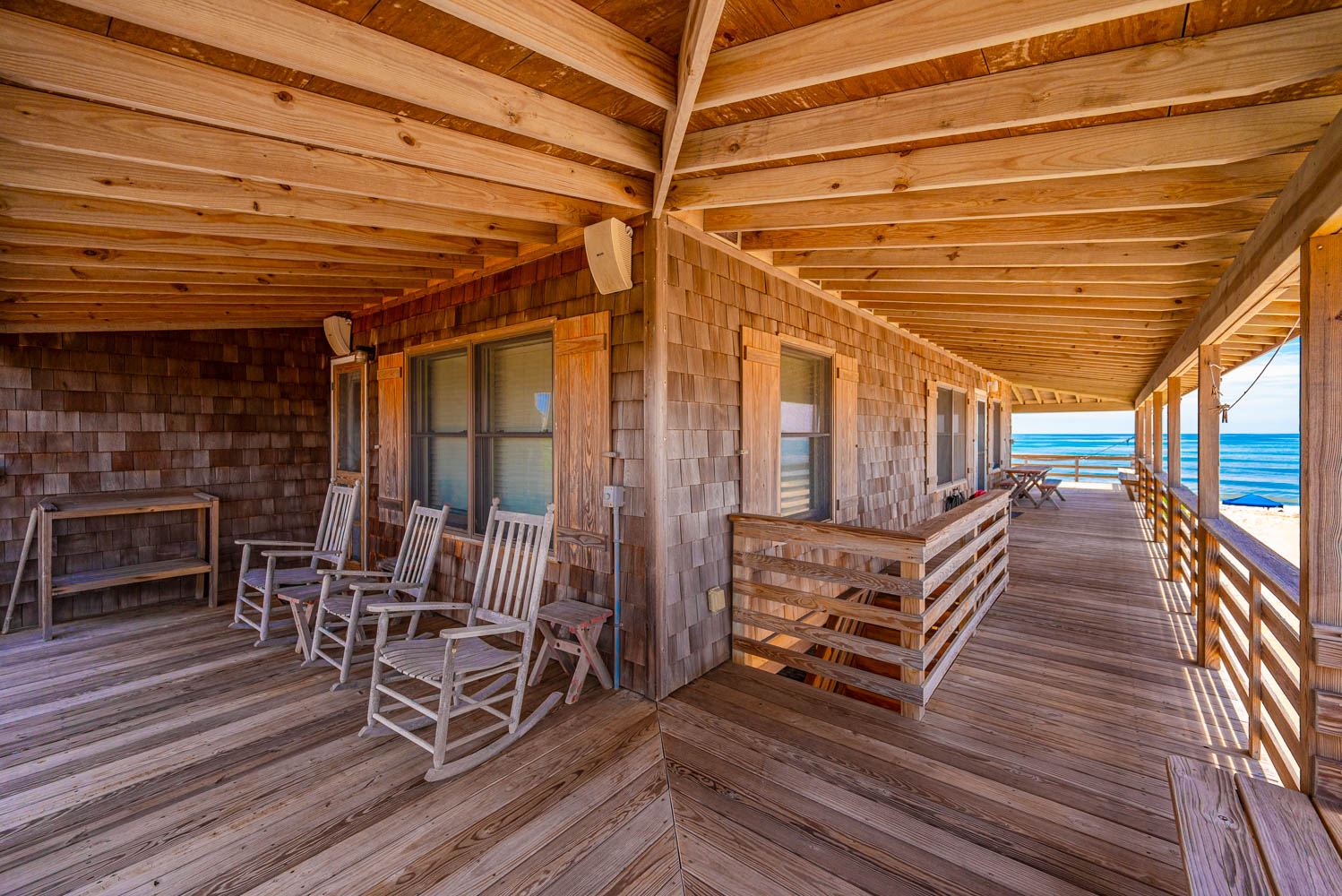 Main Level: Living/Dining/Kitchen Area, TV, DVD, 3 Bedrooms (1 w/King, Half Bath;, 1 w/Queen; 1 w/2 Singles), Full Hall Bath w/Walk-In Shower w/Seat & Grab Bars, Covered Porch w/Furniture, Sun Deck, & Steps to Beach.