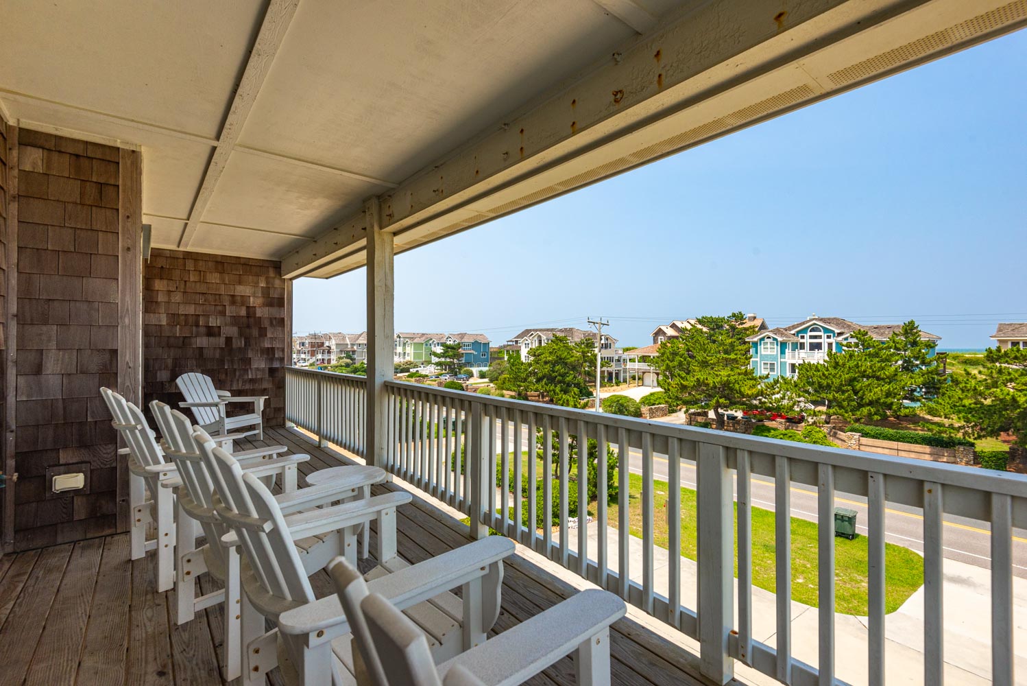 Top Level: Expansive Living Area w/55 Inch 4K TV, Entertainment System, Gas Fireplace; Fully Equipped Kitchen Area w/Island Bar Seating for Three (3); Dining Area w/Seating for Ten (10); Ocean Views, Half Bath, Private Suite w/King, TV, Full Bath w/Walk-In Shower; Sun Deck w/Bar Top Table & Chairs, & Covered Deck w/Deck Furniture & Horizon Ocean Views.
