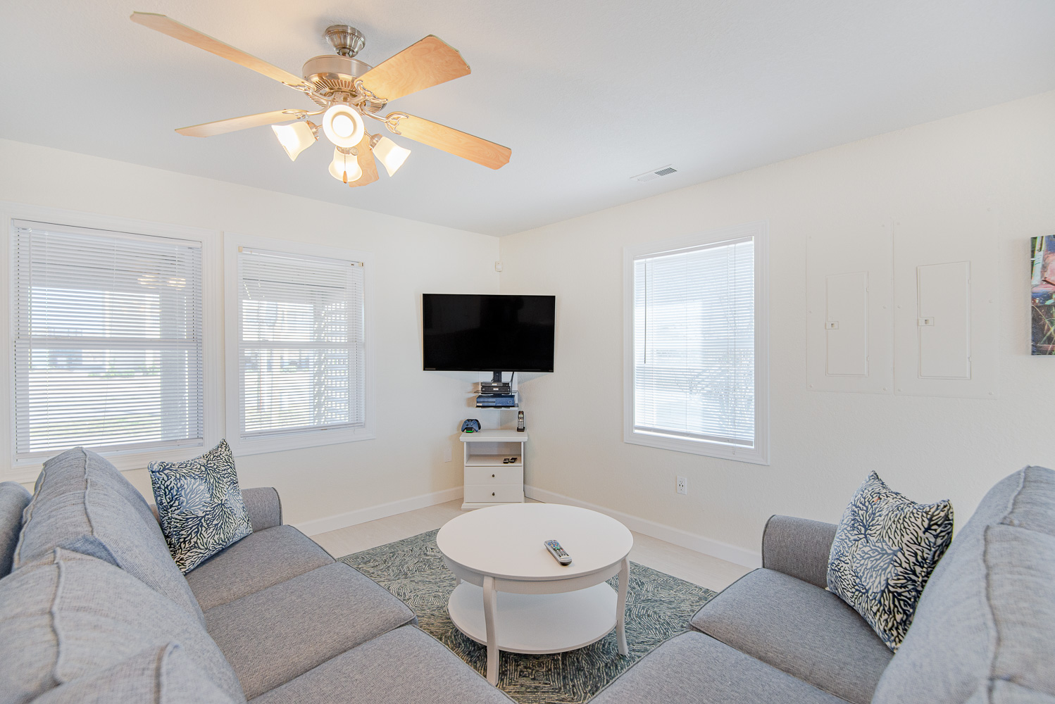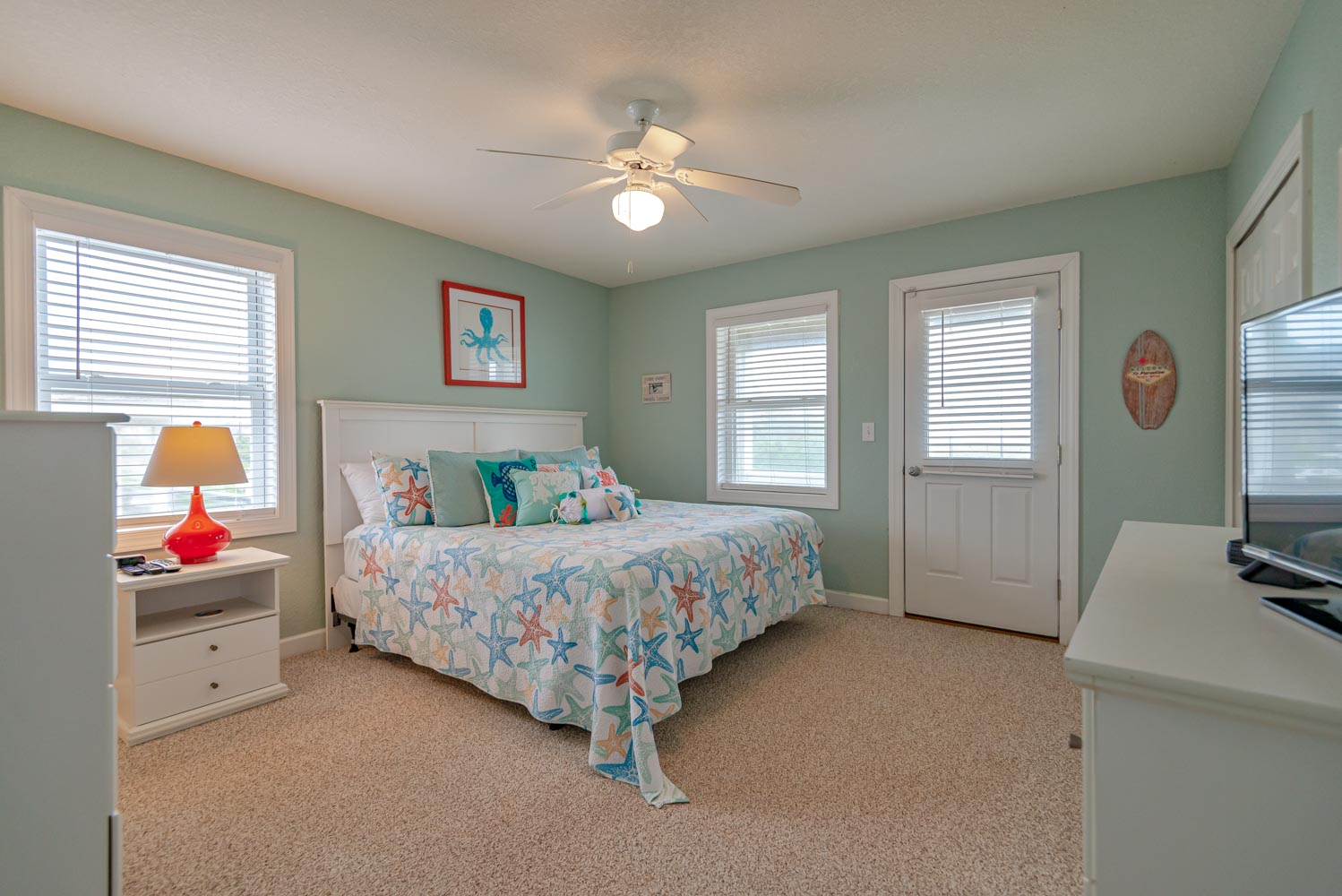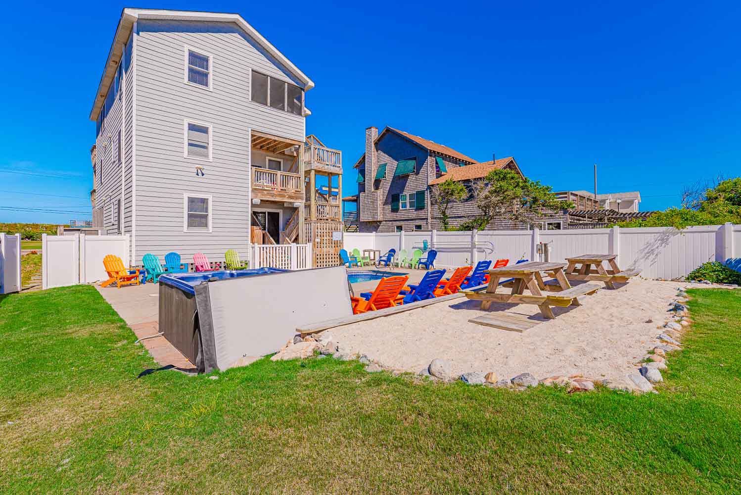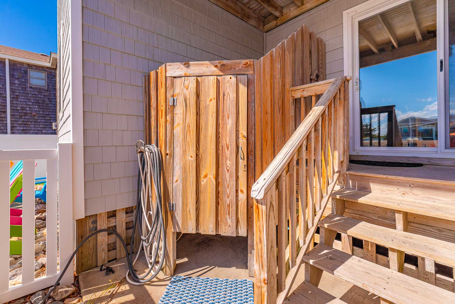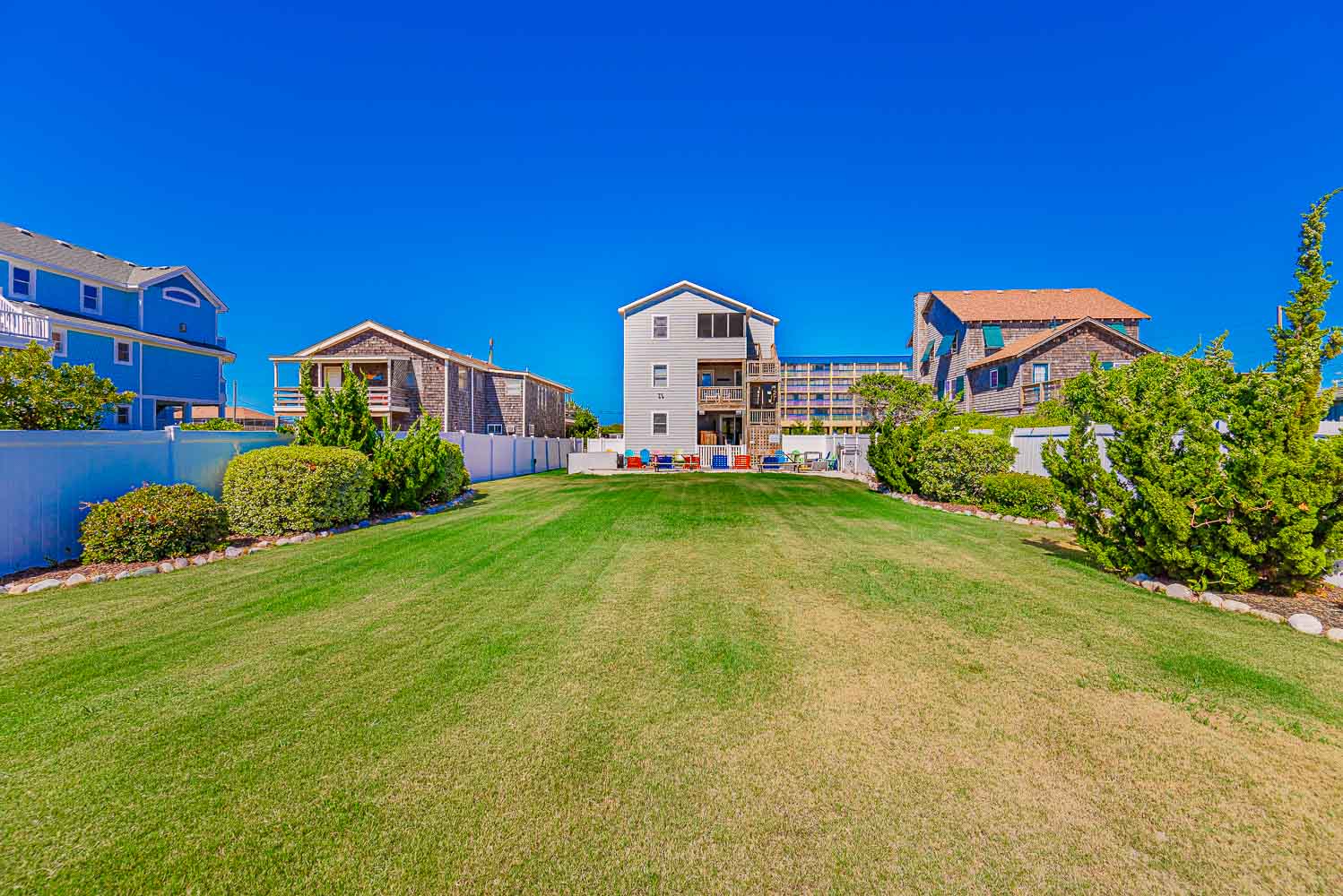 Top Level: Living Area w/Large TV, Dining Area w/Seating for Ten (10), Kitchen Area w/Bar Seating for Four (4), Beautiful Wood Floors, Half Bath, Private Suite w/King, TV, Full Bath w/Walk-In Shower; Screen Porch w/Table & Chairs, Covered Deck & Sun Deck w/Deck Furniture & Horizon Ocean Views.