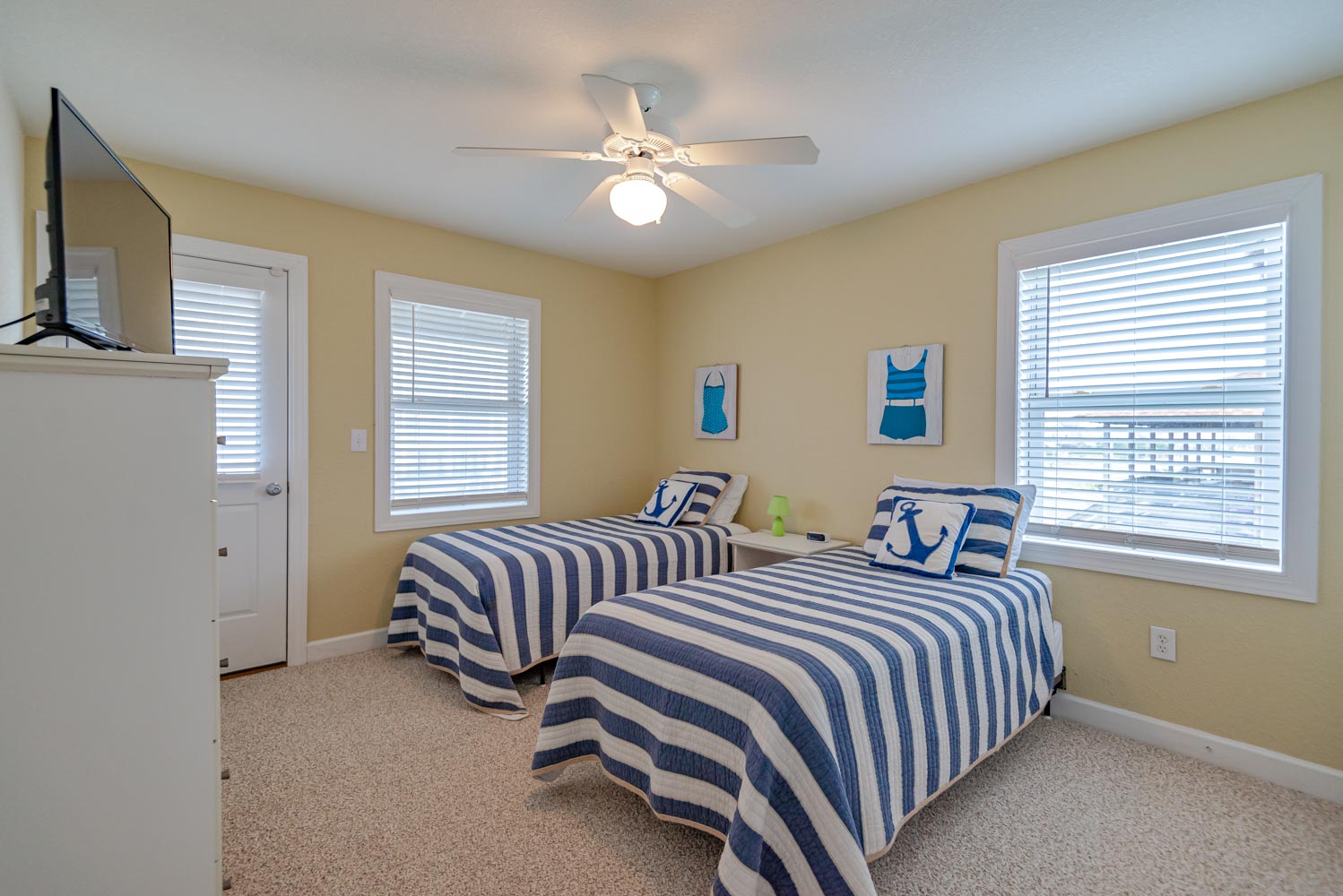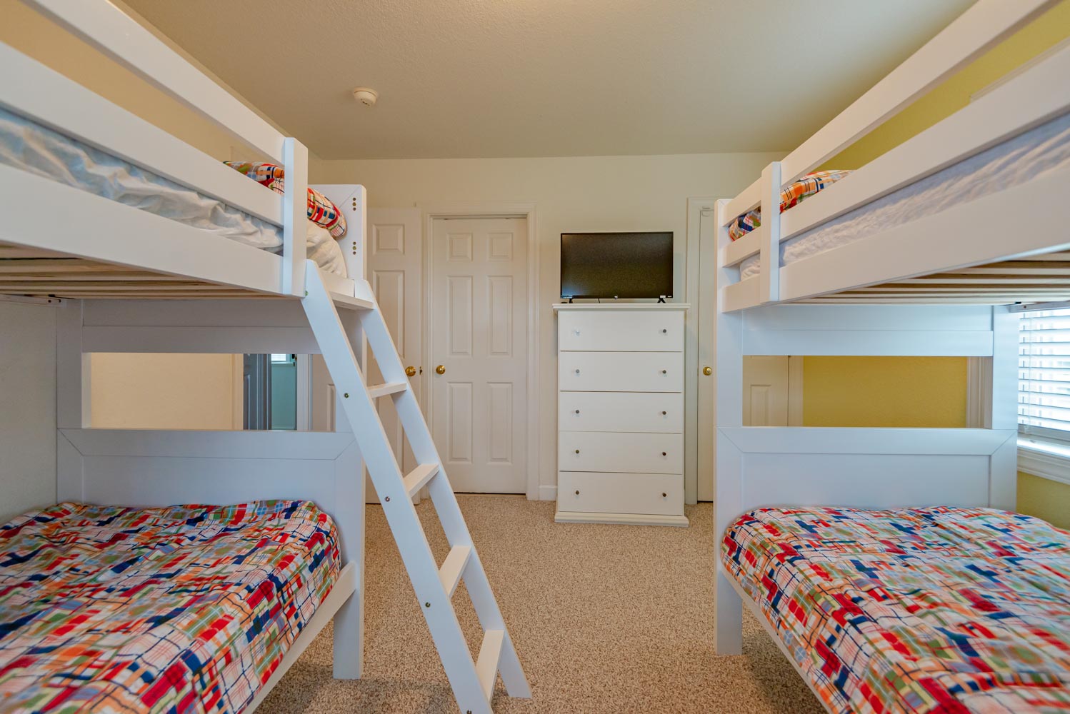 Mid Level: 4 Bedrooms (Private Suite w/King, TV, Full Bath, Access to Covered Deck; Private Suite w/King, TV, Full Bath, 1 w/2 Bunk Sets, TV; 1 w/2 Singles, TV, Access to Covered Deck), Shared Full Bath w/Tub & Shower, & Covered Deck Overlooking Pool Area w/Steps to Top Level & Ground Level Pool Area.