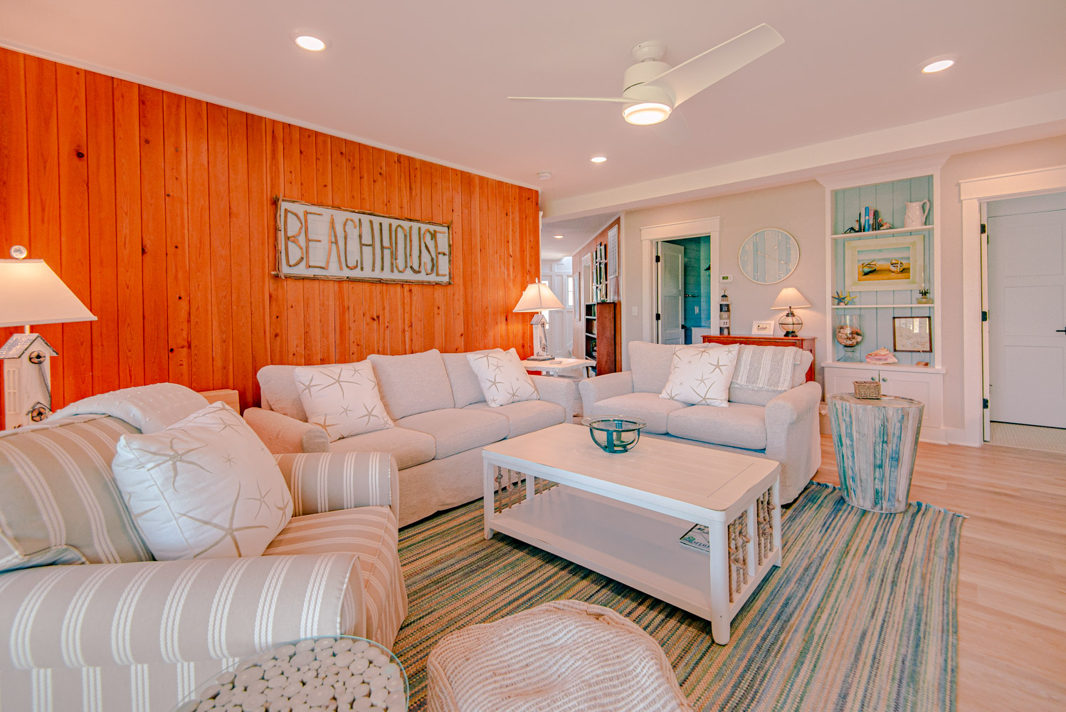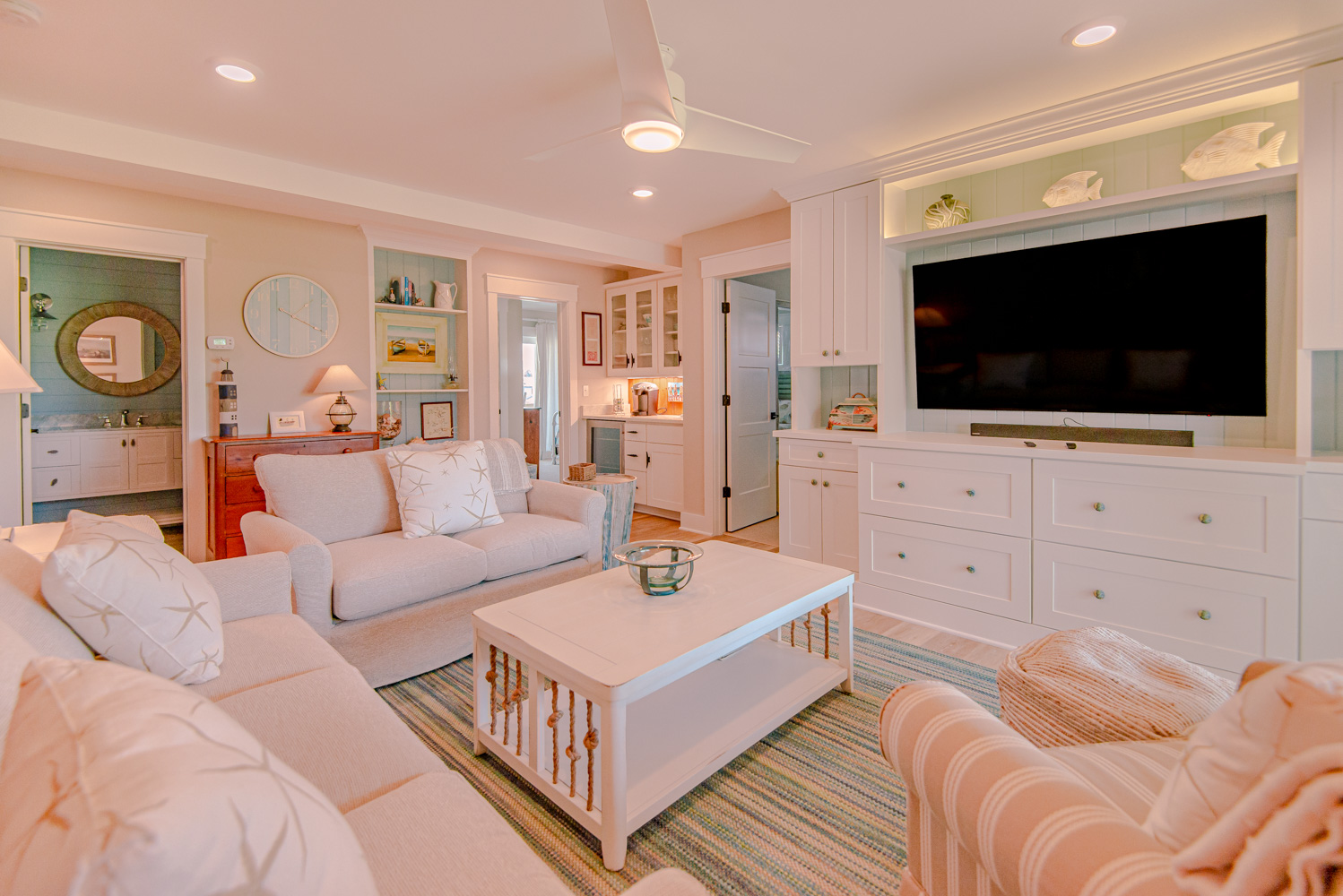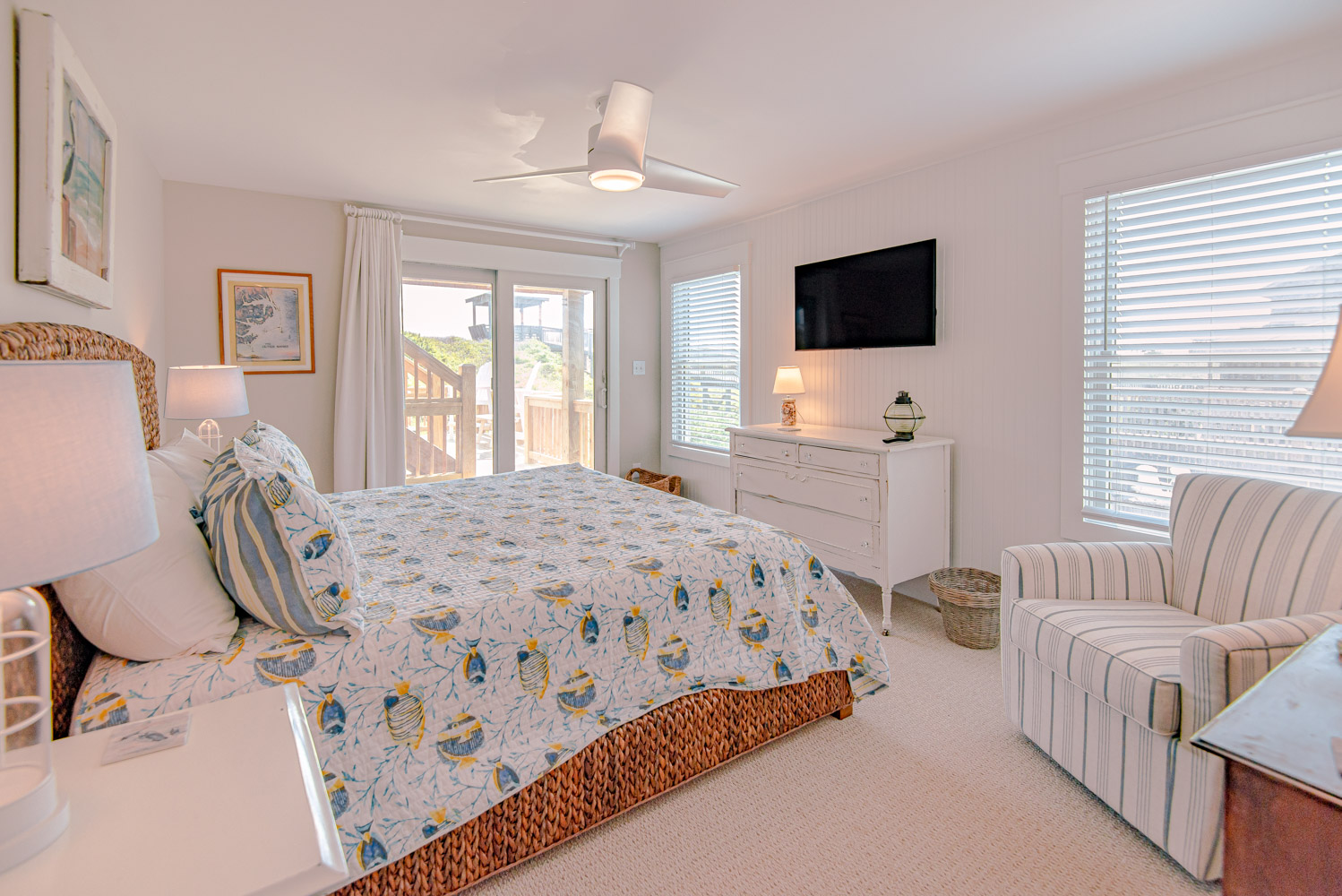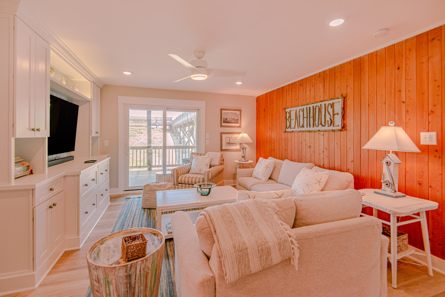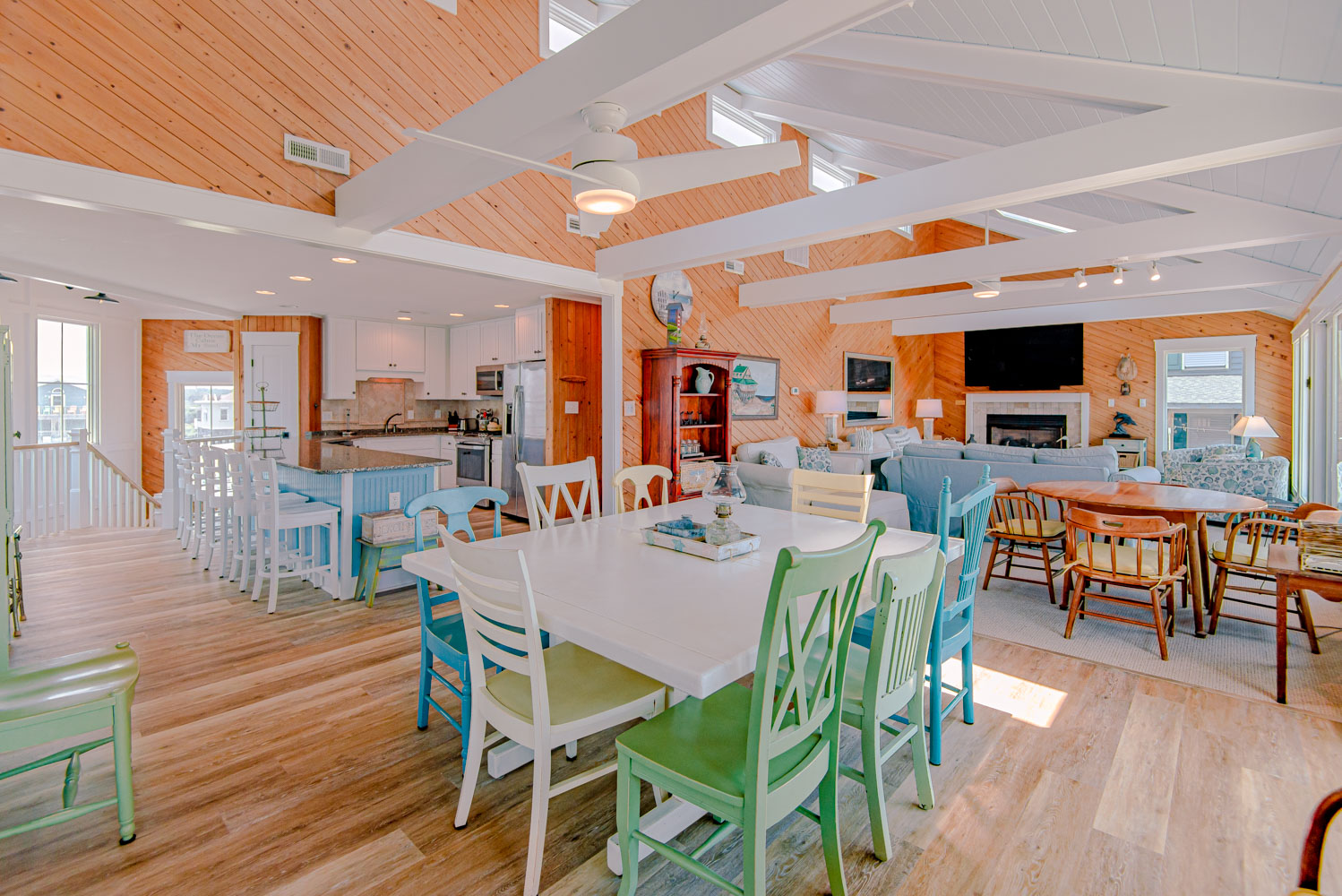 Top Level: Great Room, Magnificent Ocean Views, Large Flat Panel TV, Gas Fireplace, Game Table; Large Dining Area, 2 Seating Areas, Fully Equipped Kitchen, Griddle, Crock Pot, Gas Range, Extended Bar/Counter; Seating Overlooking Vast Windows on the Front, Powder Room, Private Suite w/King, TV, Full Bath Walk-In Shower, Access to Sunset Deck/Balcony; Oceanfront Sun Deck w/Screen Porch, Deck Furniture, Private Boardwalk to Partially Covered Dune Top Deck w/Lights, Built-In Benches, 2 Picnic Tables, Fantastic Ocean and Beach Views.