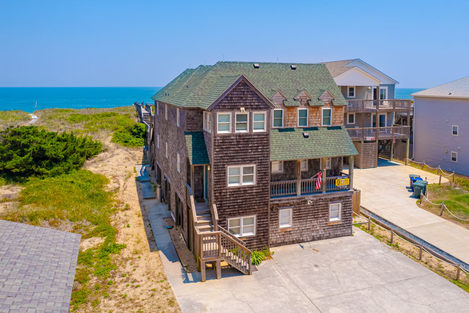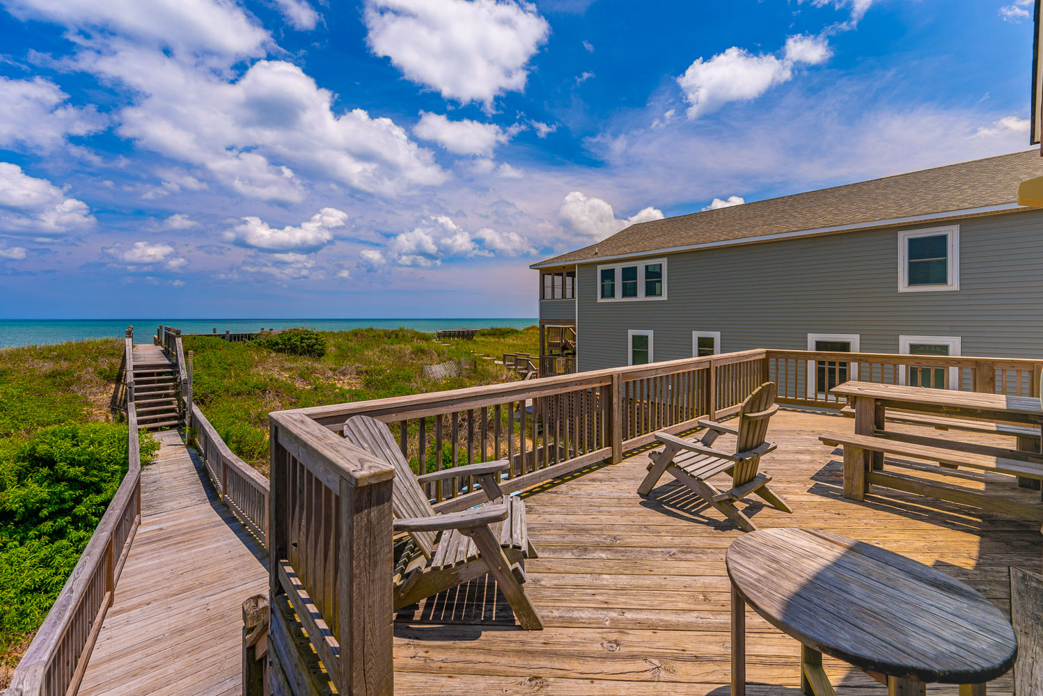 Top Level: Living/Dining/Kitchen Area, Flat Screen TV, Dining Area w/Seating for 8, Kitchen Area w/Bar Seating for 3, Half Bath, Private Suite w/King, Flat Screen TV, Full Bath w/Garden Tub, Walk-In Shower; and Access to Oceanfront Sun Deck w/Deck Furniture and Steps to Private Walkway w/Dune Top and Steps to Beach.