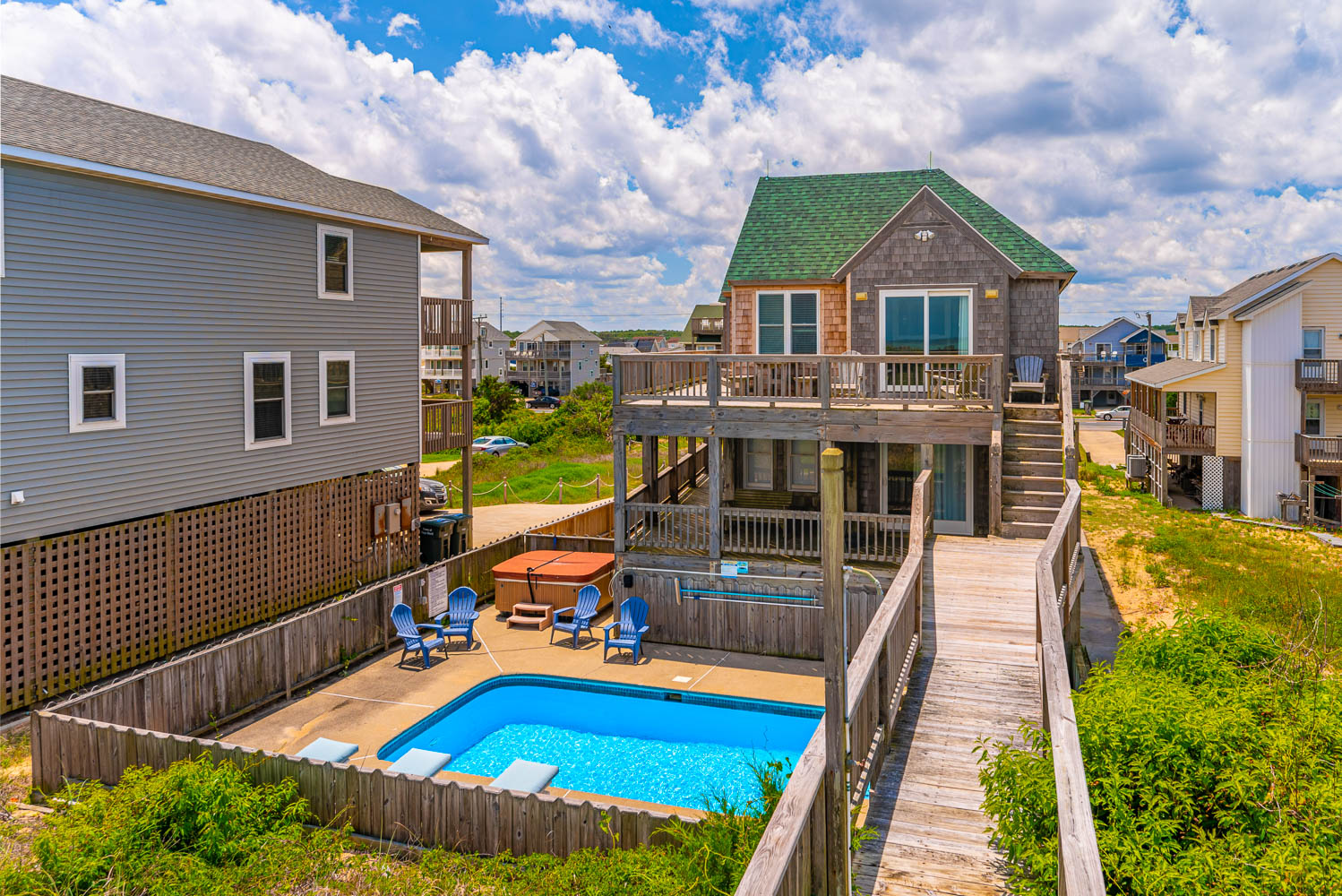 Features include: C/AC-Heat, Washer/Dryer, Dishwasher, Microwave 2 Refrigerators, Free Standing Ice Maker, Gas Grill, Flat Screen TVs, Wireless Internet, Two Rollaway Beds (linens not provided), and Deck / Pool Furniture. No Pets Allowed. No Smoking Allowed.