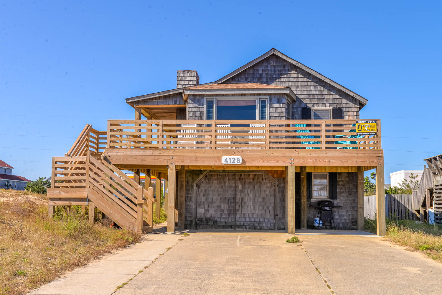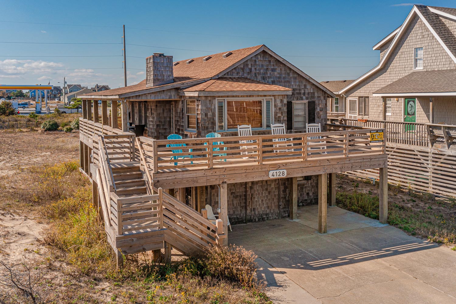 Ground Level: Parking for 2 Cars, Washer/Dryer, Steps to Main Entry, Separate Entrance to Bedroom w/Queen, Window AC, Space Heater, Full Bath, 1 House Back from Beach w/Private Access (Only 60 Ft. Across Beach Rd. at 4131 S Virginia Dare Trail), & Outside Shower.