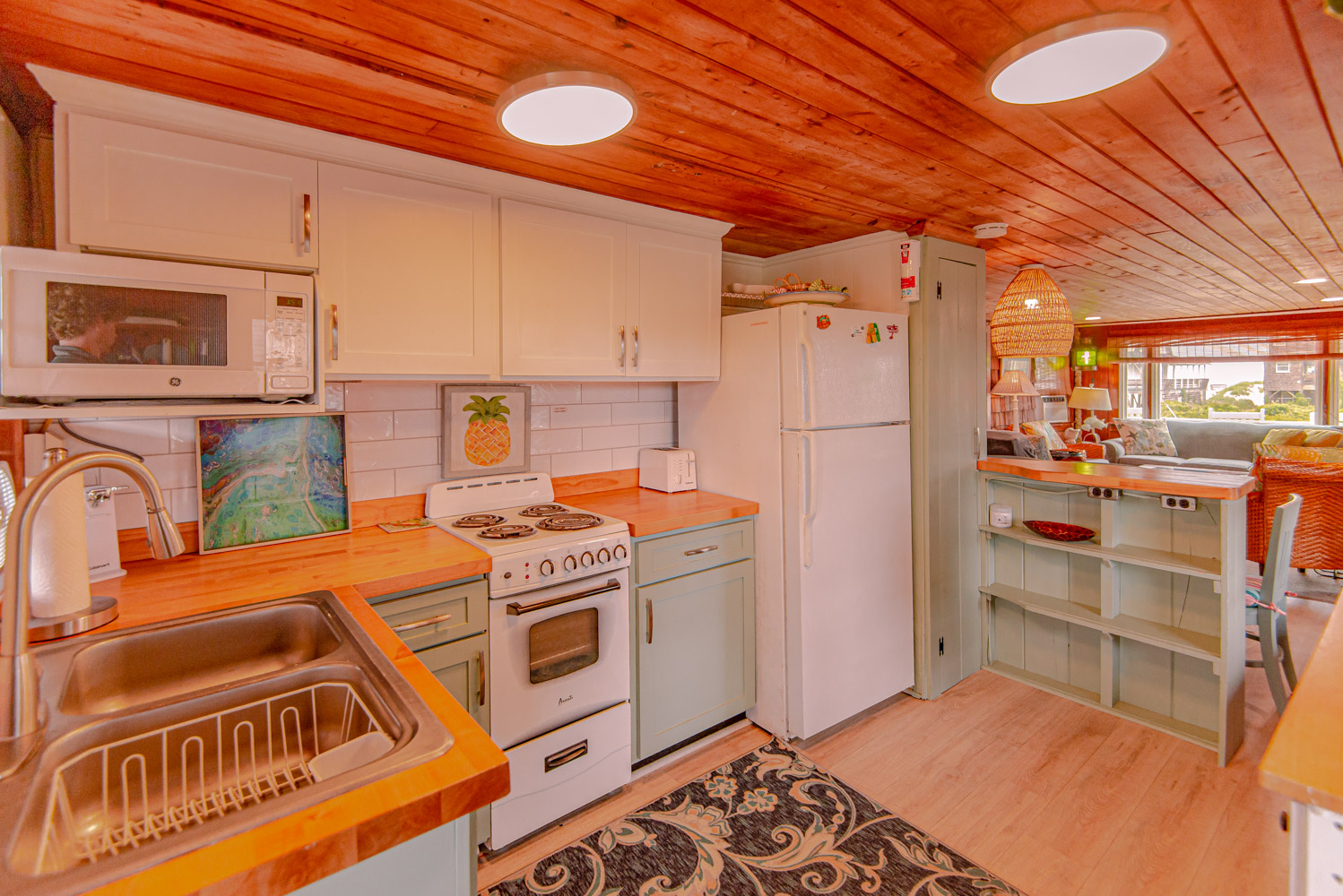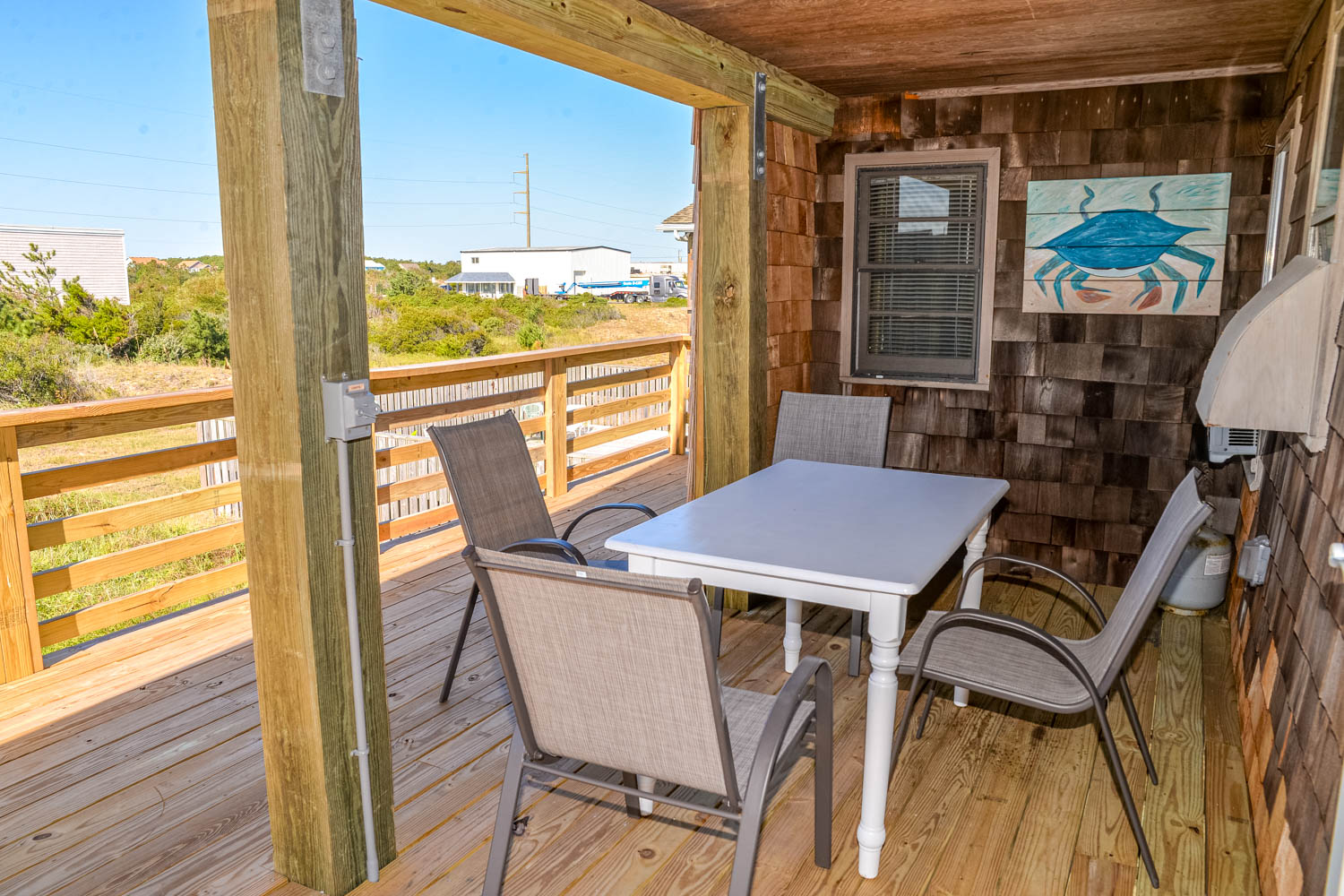 Main Level: Living/Dining/Kitchen Area, Window AC, 2 Bedrooms (1 w/Queen, Window AC, 3 Space Heaters; 1 w/Duo Bunk, Window AC), 2 Full Baths, Covered Deck w/Furniture, & Sun Deck w/Furniture & Ocean Views.