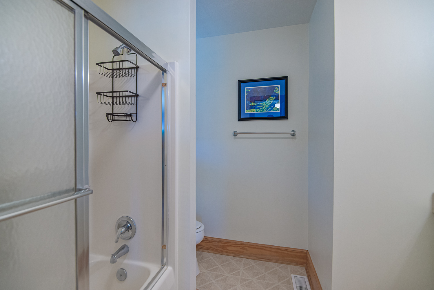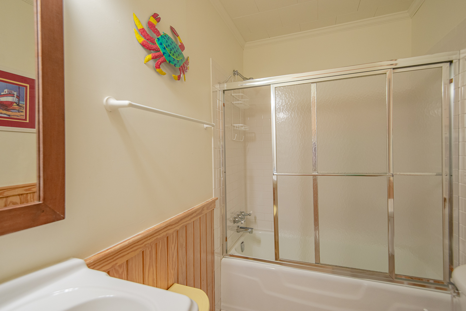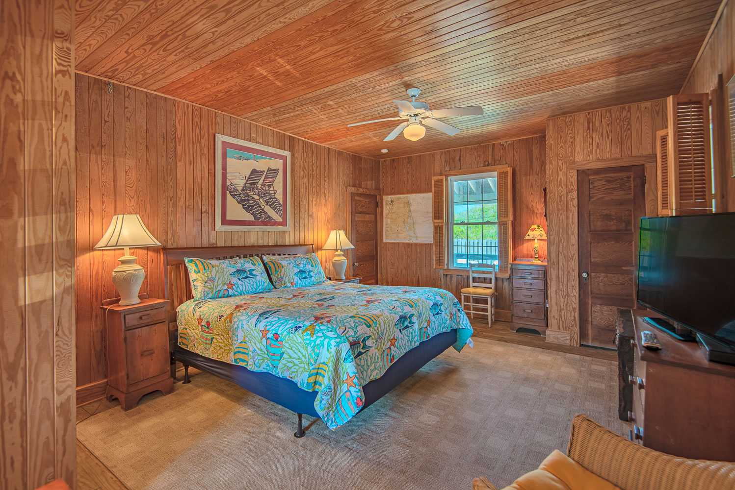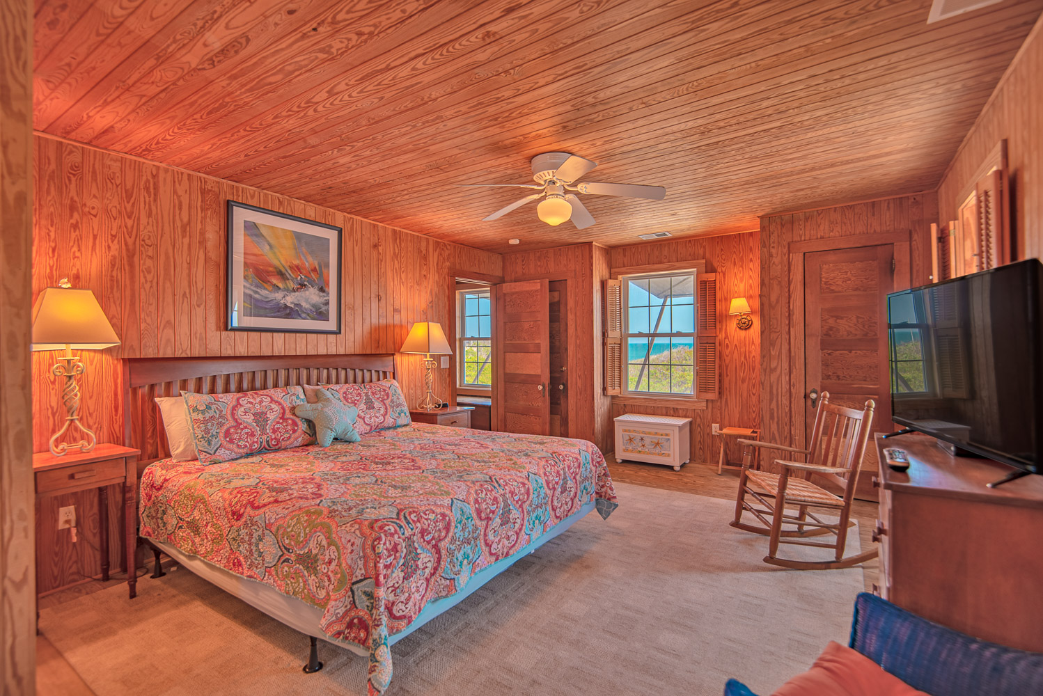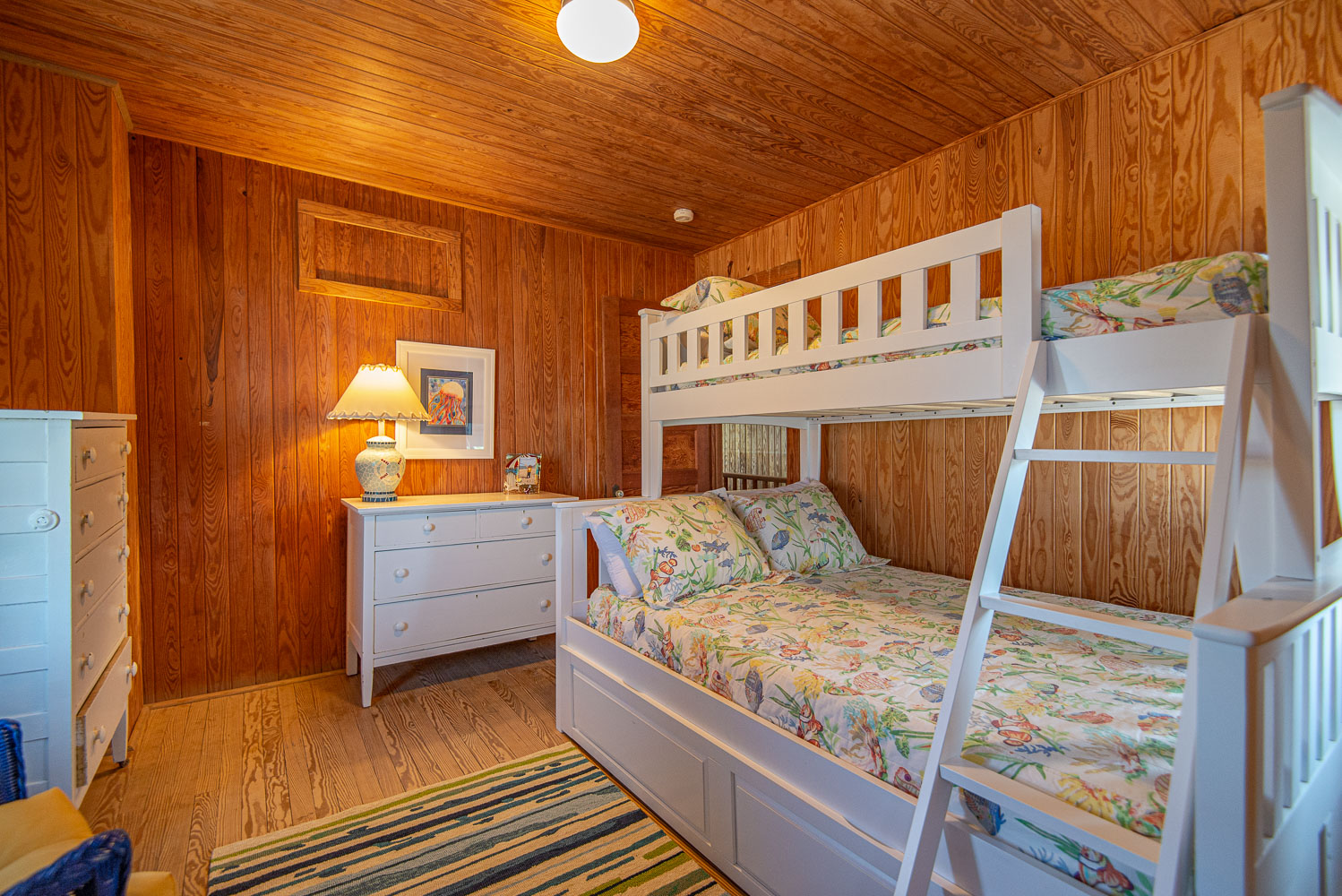 Top Level: 3 Bedrooms (Private Suite w/King, TV, Full Bath w/Walk-In Shower; 1 w/Queen; 1 w/Duo Bunk w/Trundle), Shared Full Hall Bath w/Tub/Shower.