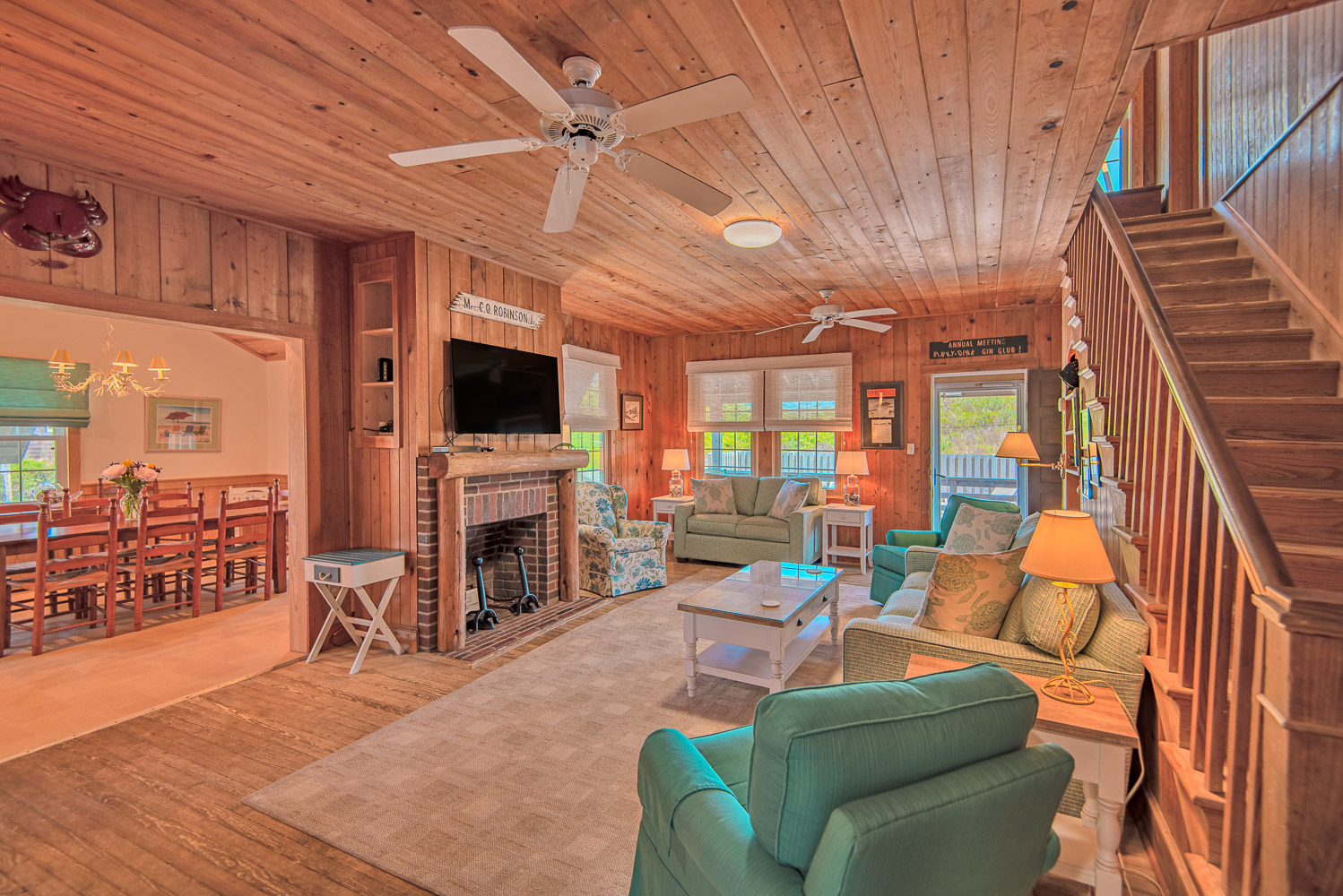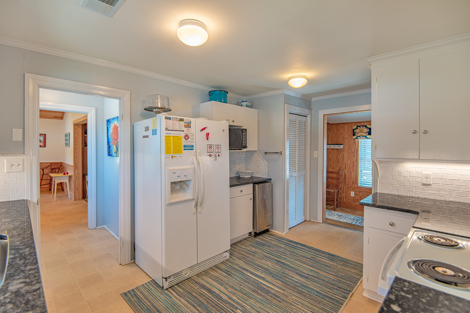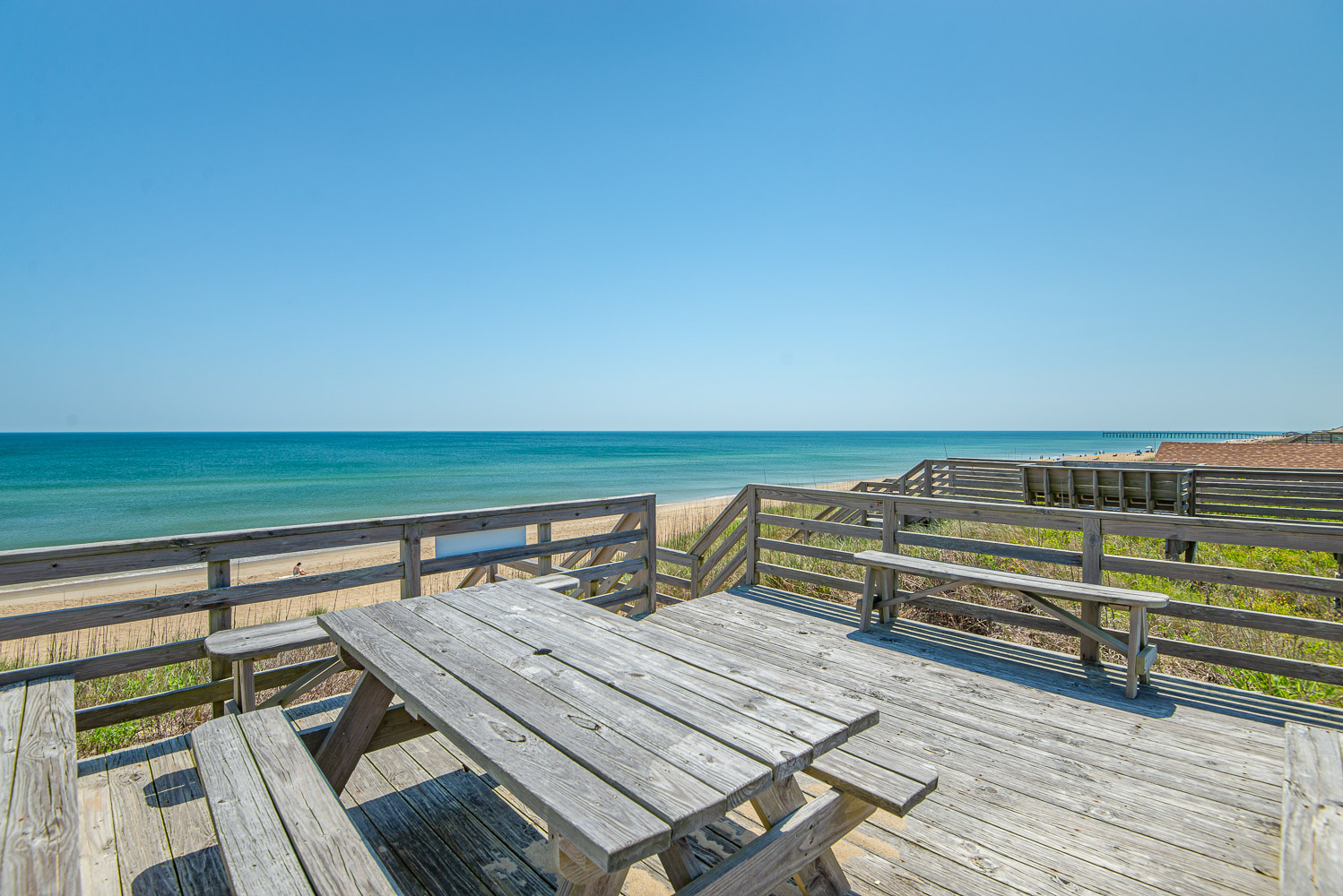 Mid Level: Spacious Living Area, TV, Dining Room, Large Kitchen, 20 lb. Freestanding Ice Maker’ Laundry Area, Full Hall Bath w/Tub/Shower; 2 Bedrooms (Private Suite w/King, TV, Full Bath w/Tub/Shower; Private Suite w/King, TV, Full Bath w/Walk-In Shower); Enclosed Outside Shower w/Dressing Area; Wrap Around Covered Deck w/Furniture, & Walkway to Beach w/Outside Shower, Private Dune Top Deck w/Benches, Outside Shower, & Steps to Beach.