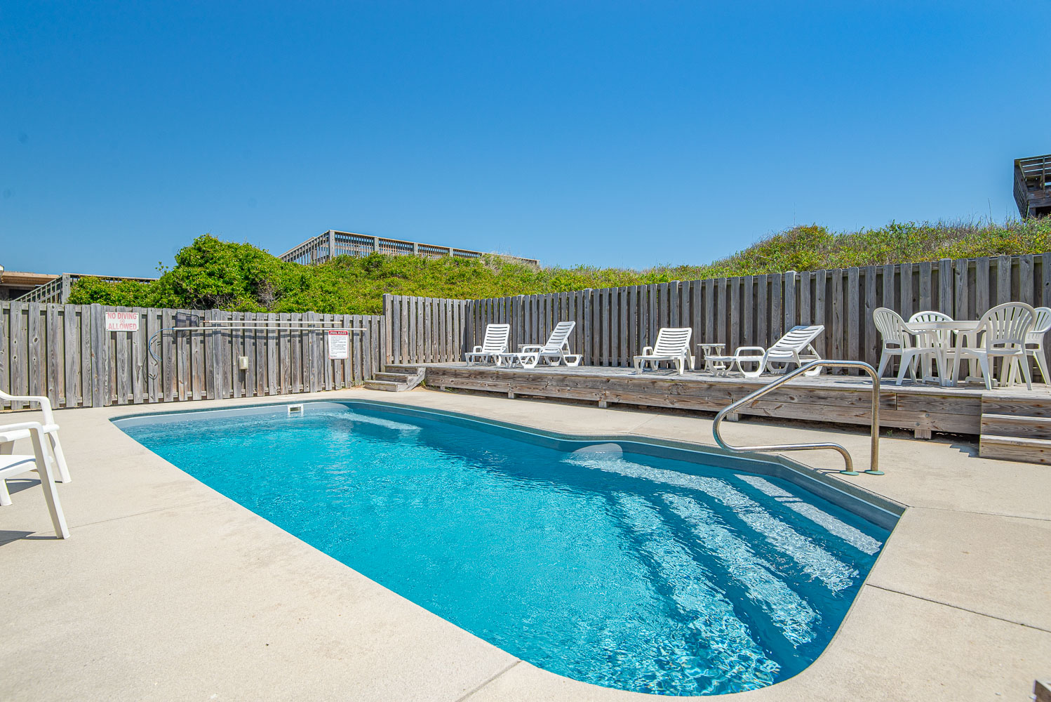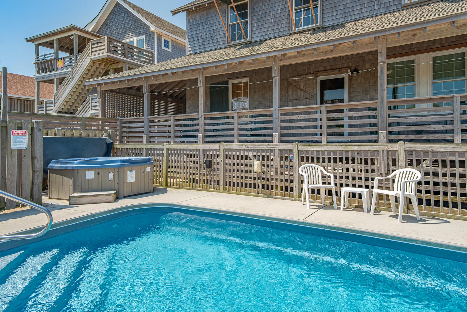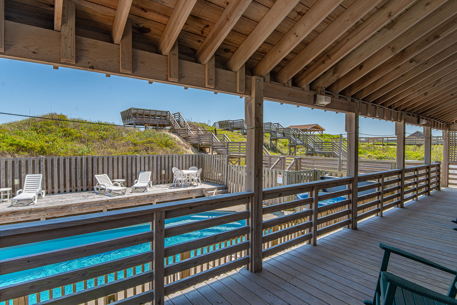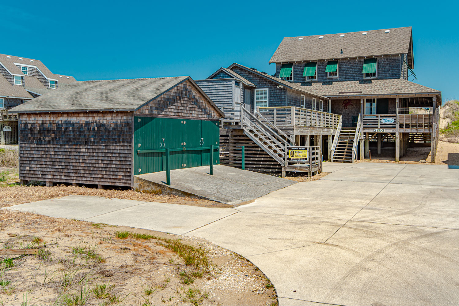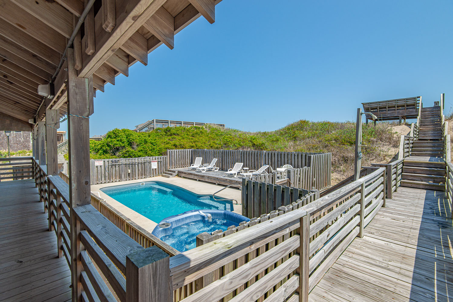 Ground Level: Parking for 5 Cars, Shared Driveway w/the Adjacent Home (Please Do Not Block Access to Parking Area), Steps to Covered & Entry, Private Saltwater Swimming Pool - Open Seasonally, Hot Tub, Gas Grill, Charcoal Grill, & Access to NEW Walkway to Beach w/Dune Top Deck.