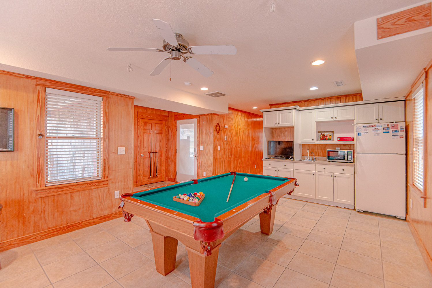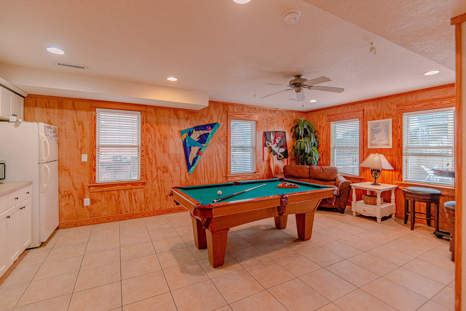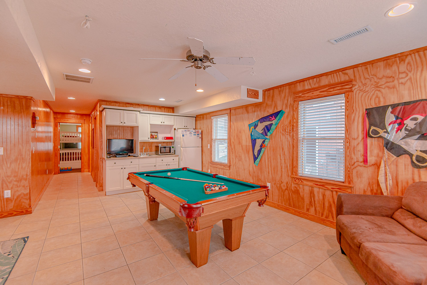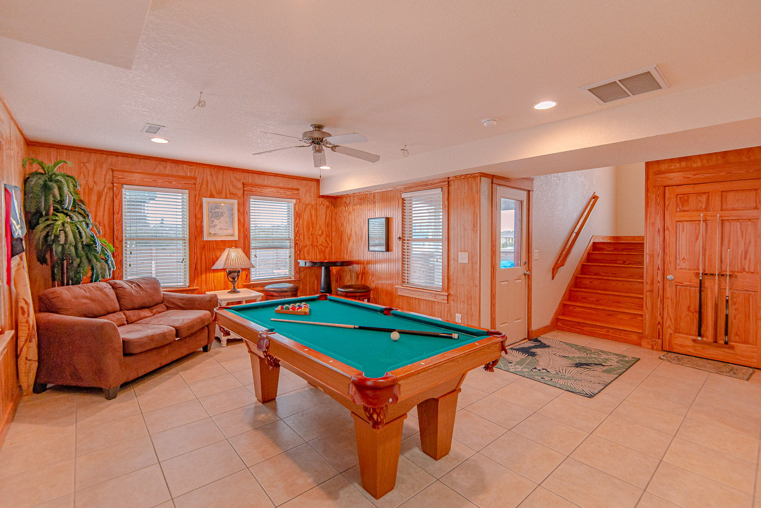 Ground Level: Parking for 4 Cars, Covered Entry, Rec. Room, Pool Table, Wet Bar, Full Size Refrigerator, TV; Full Bath w/Walk-In Shower; Bedroom w/2 Bunk Sets; Access to Covered Deck w/Private Saltwater Swimming Pool - Open Seasonally, Enclosed Outside Shower, and Grilling Area.