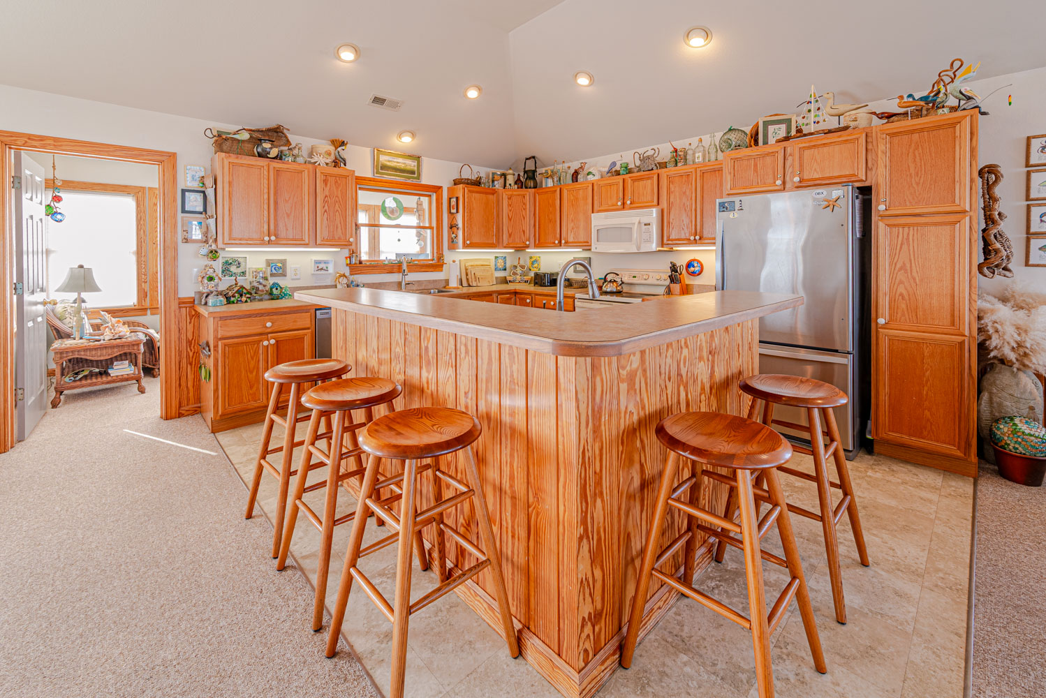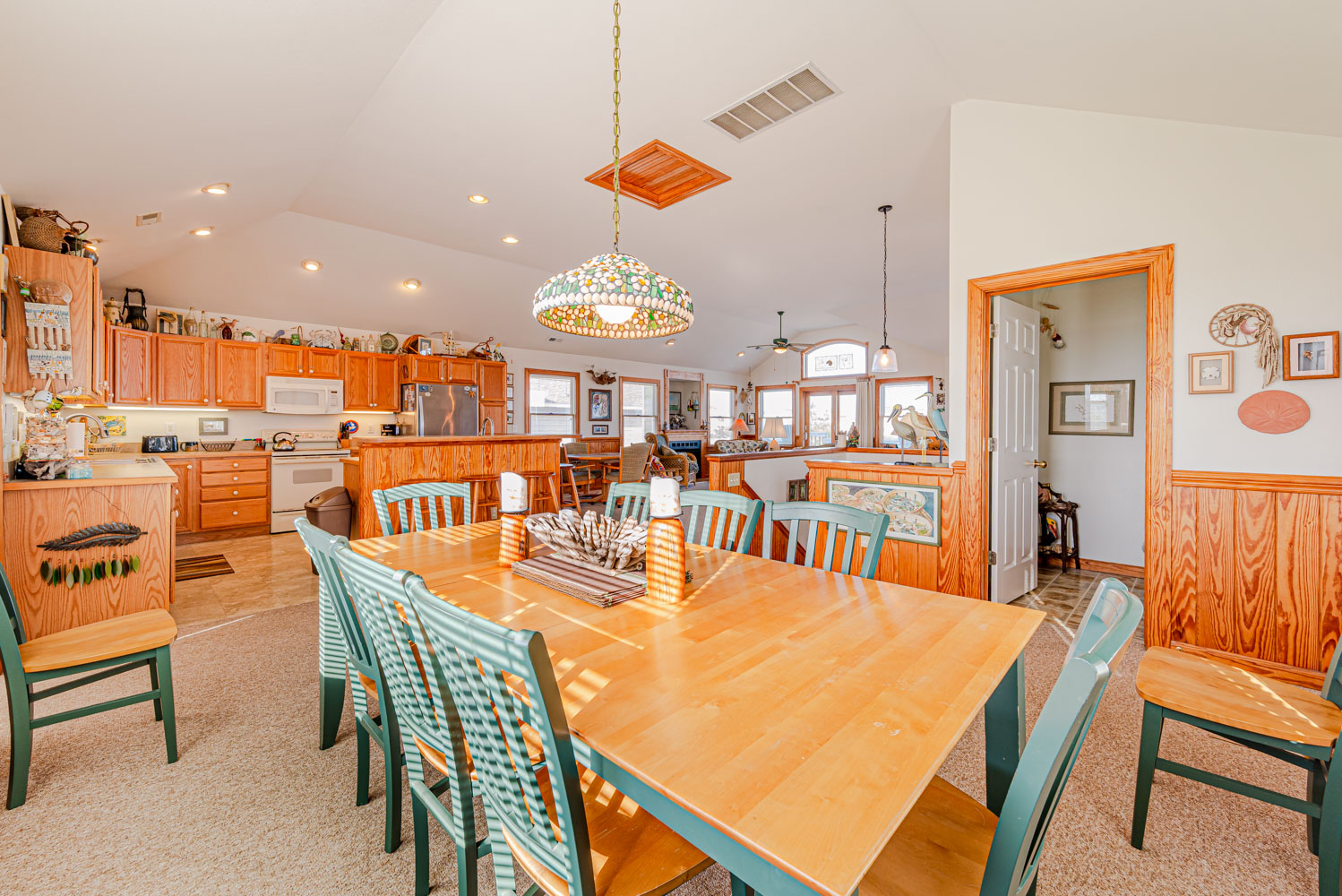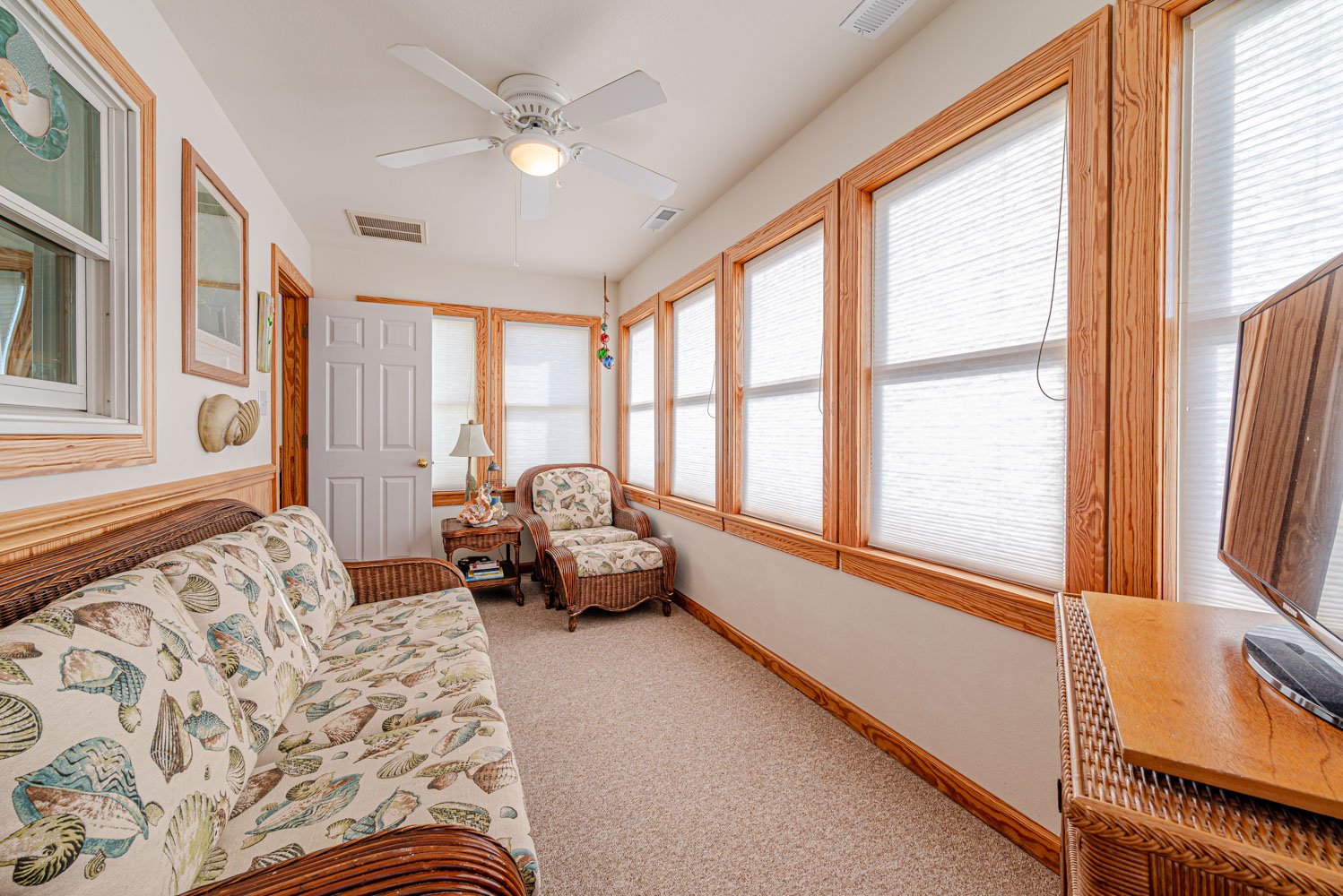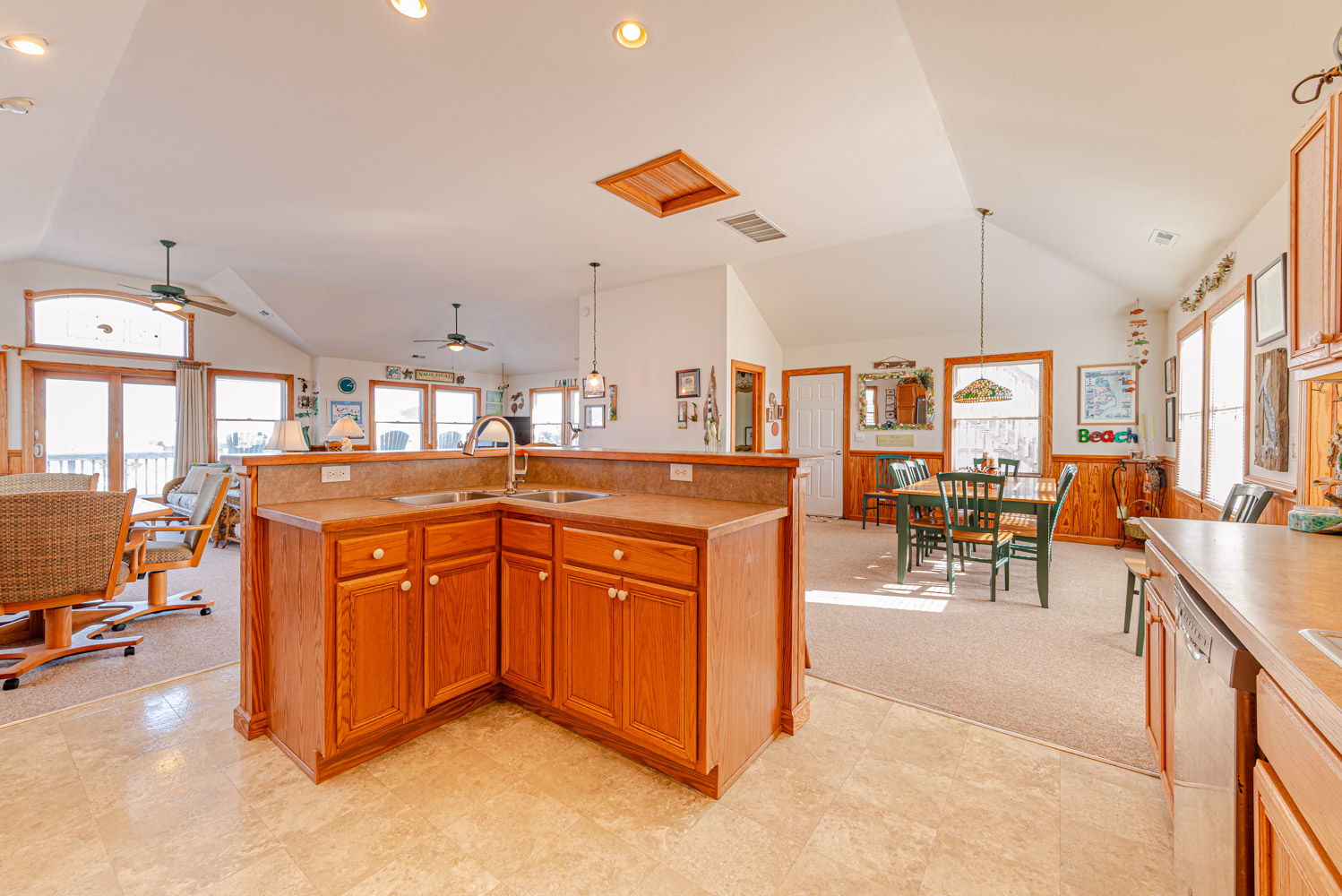 Top Level: Living/Dining/Kitchen, Ocean Views, Sound Views, TV, Breakfast Bar w/Seating, Dining Table, Card Table, Sun Room w/TV, Sun Deck, Screened Porch, and Access to Observation Deck w/Endless Views.