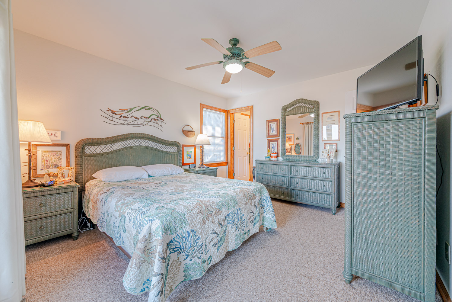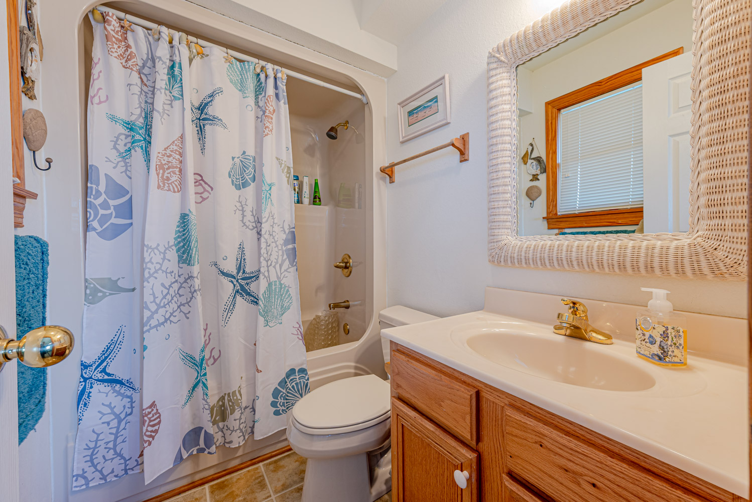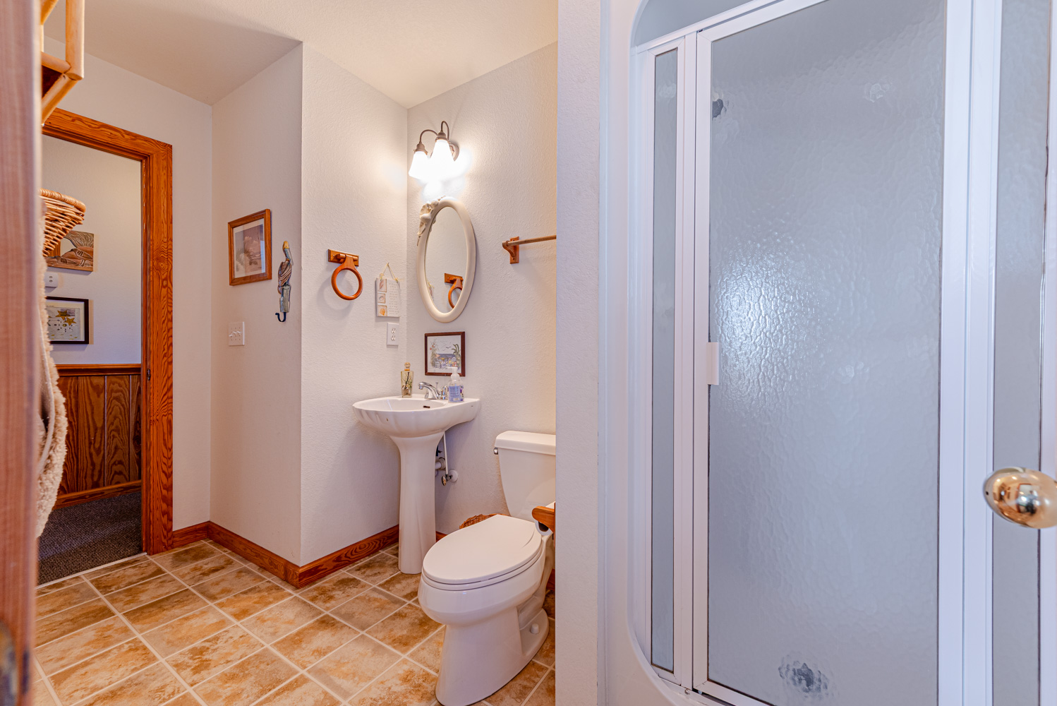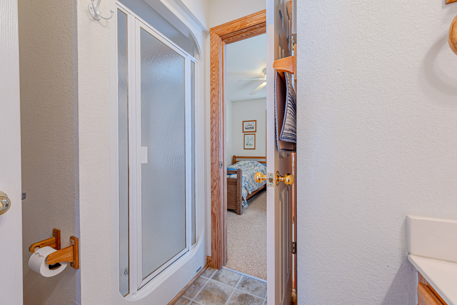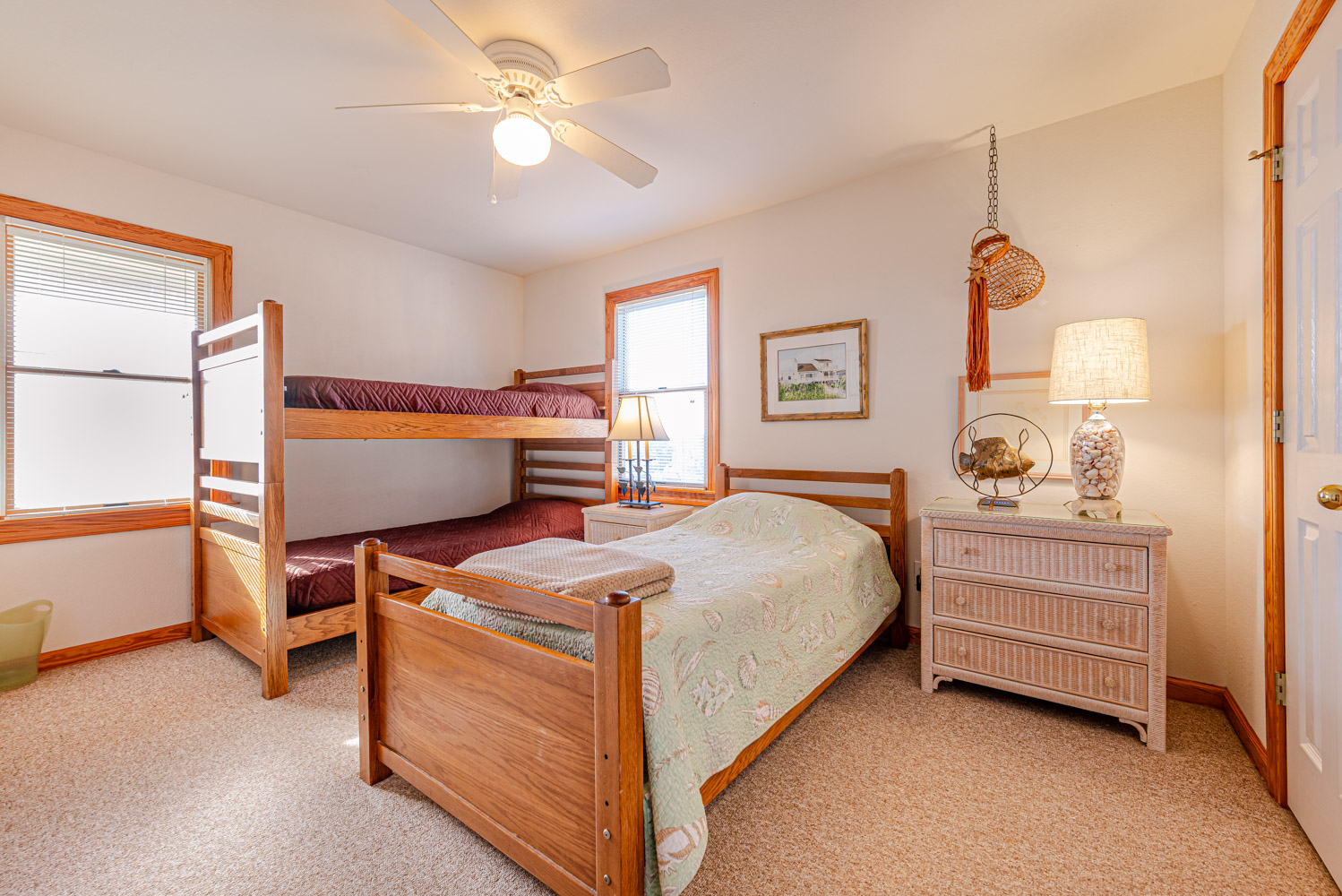 Mid Level: 4 Bedrooms (Private Suite w/Queen, TV, Full Bath w/Shower; Private Suite w/Queen, TV, Full Bath w/Shower w/Entry from Bedroom and Hall; 2 Bedrooms w/1 Bunk Set, 1Single), Shared Full Bath w/Shower, Laundry Area, and Covered Deck.
