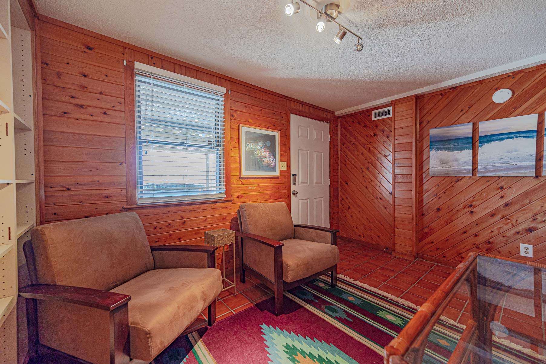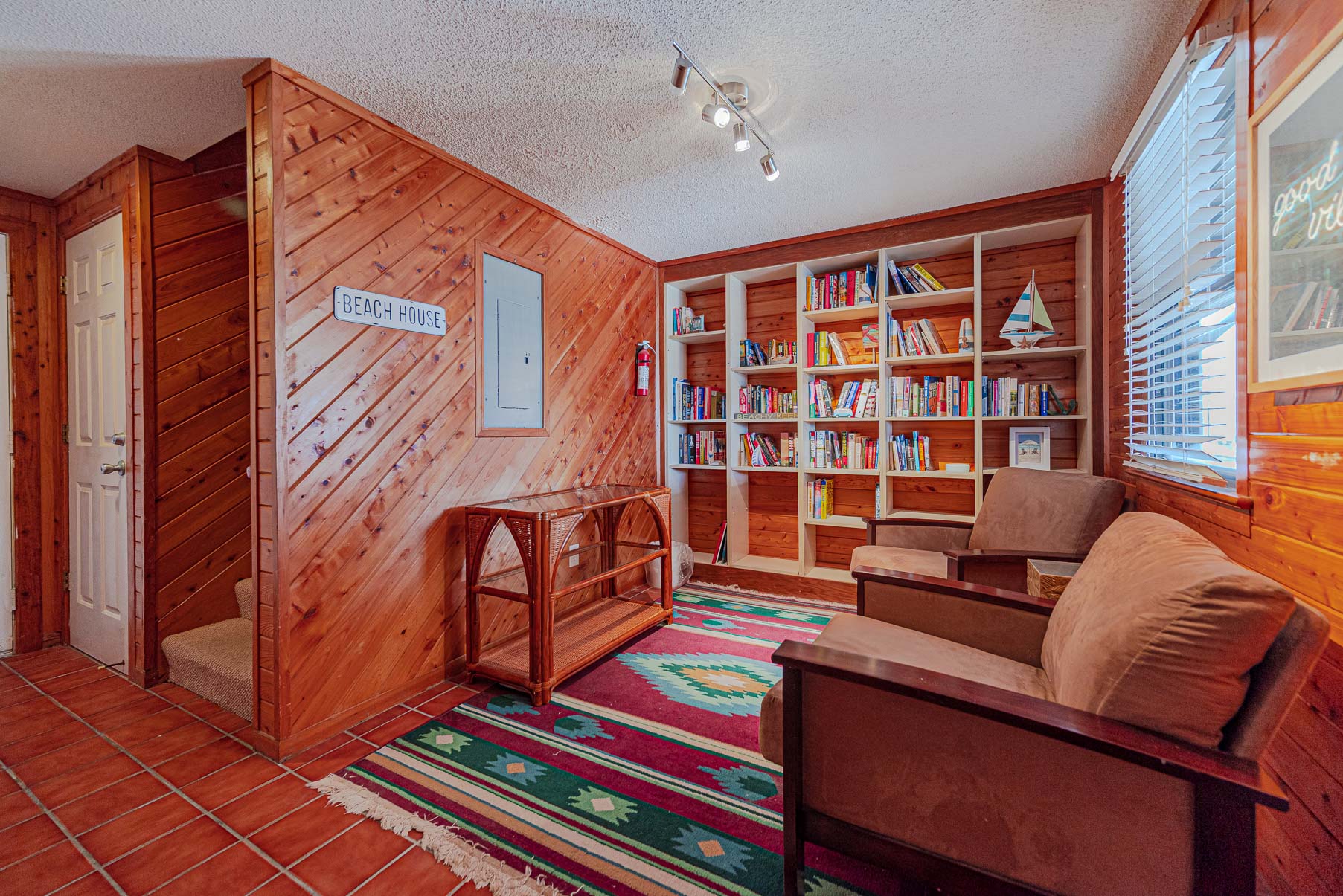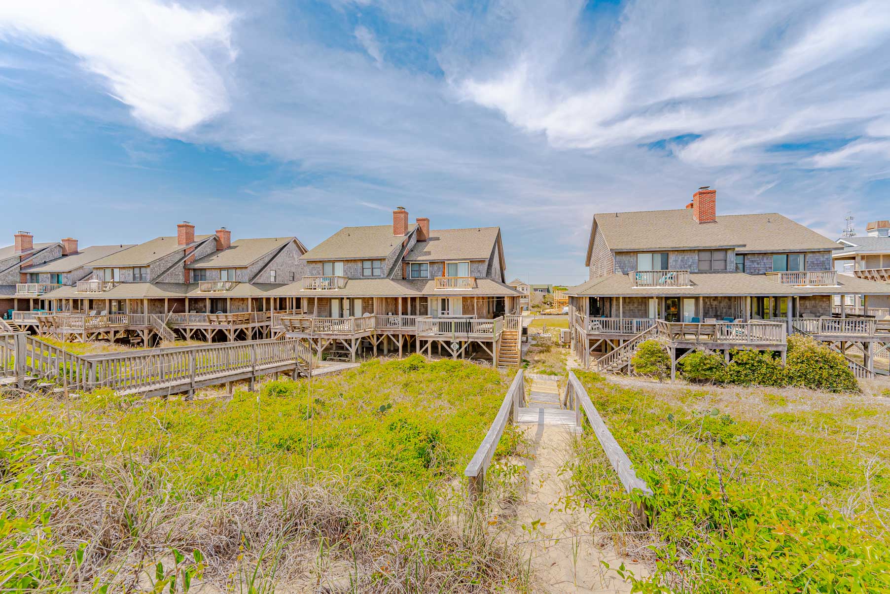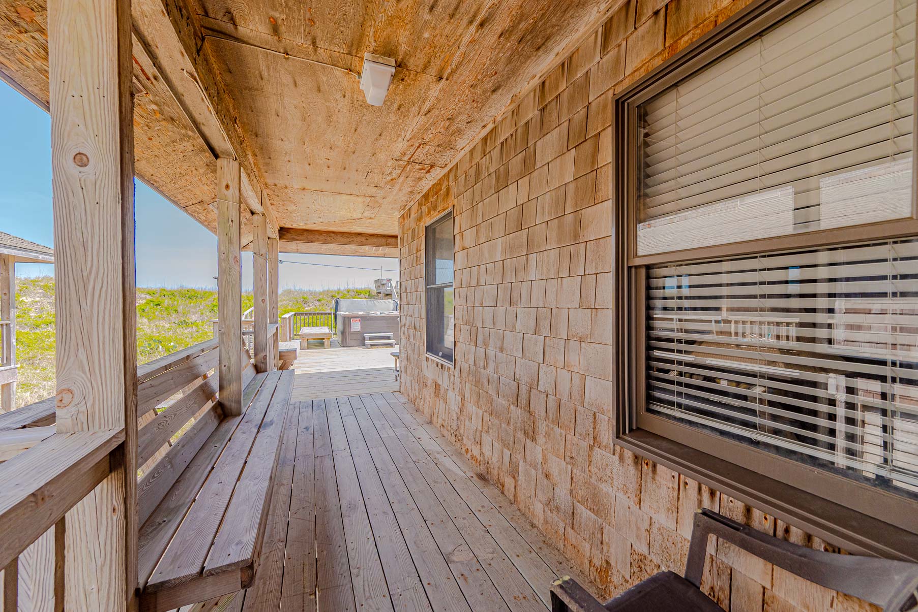 Ground Level: Parking for 4 Cars , Storage, Covered Entry, Den; Private Suite w/Double, Single, TV, Full Bath w/Tub/Shower; Charcoal Grill, Enclosed Outside Shower, and Shared Walkway to Beach w/Dune Deck.