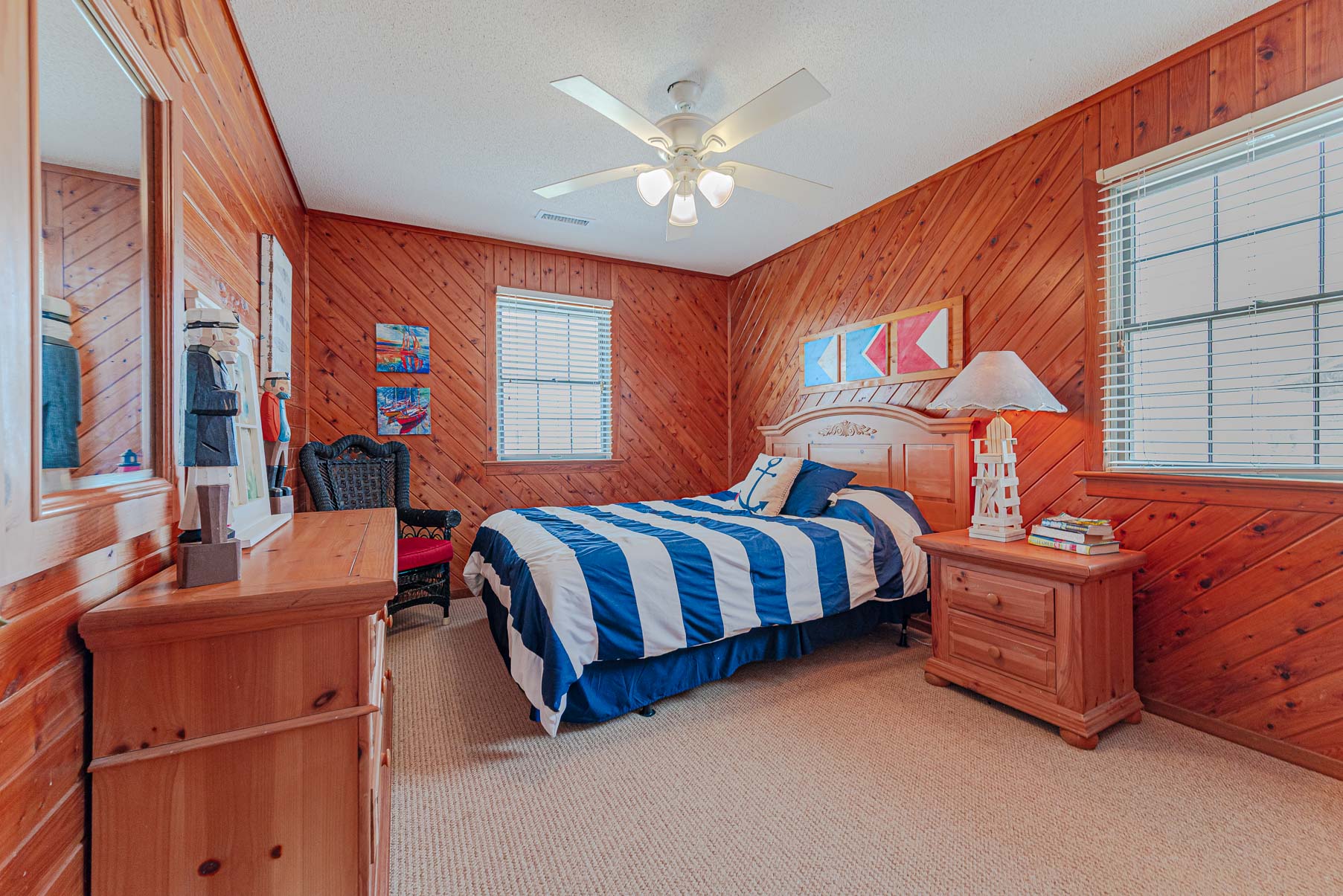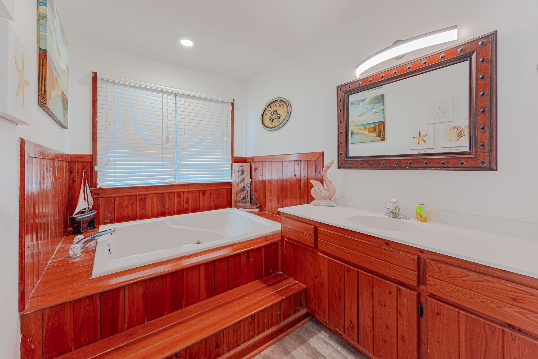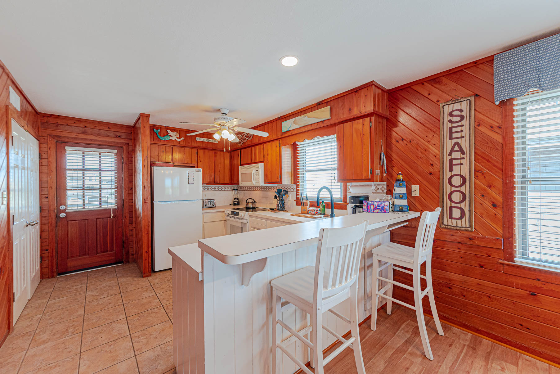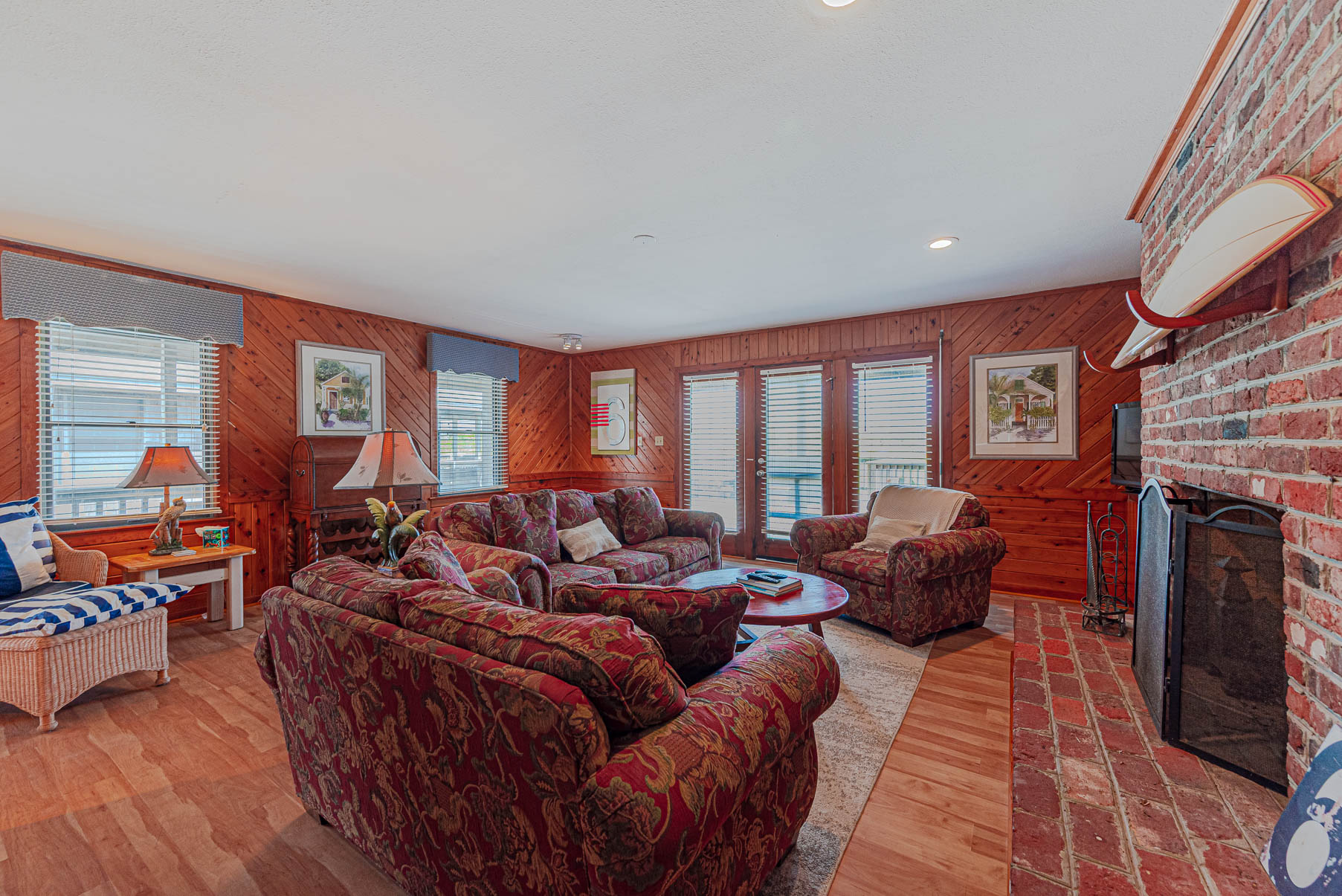 Ground Level: Parking for 4 Cars , Storage, Covered Entry, Den; Private Suite w/Double, Single, TV, Full Bath w/Tub/Shower; Charcoal Grill, Enclosed Outside Shower, and Shared Walkway to Beach w/Dune Deck.