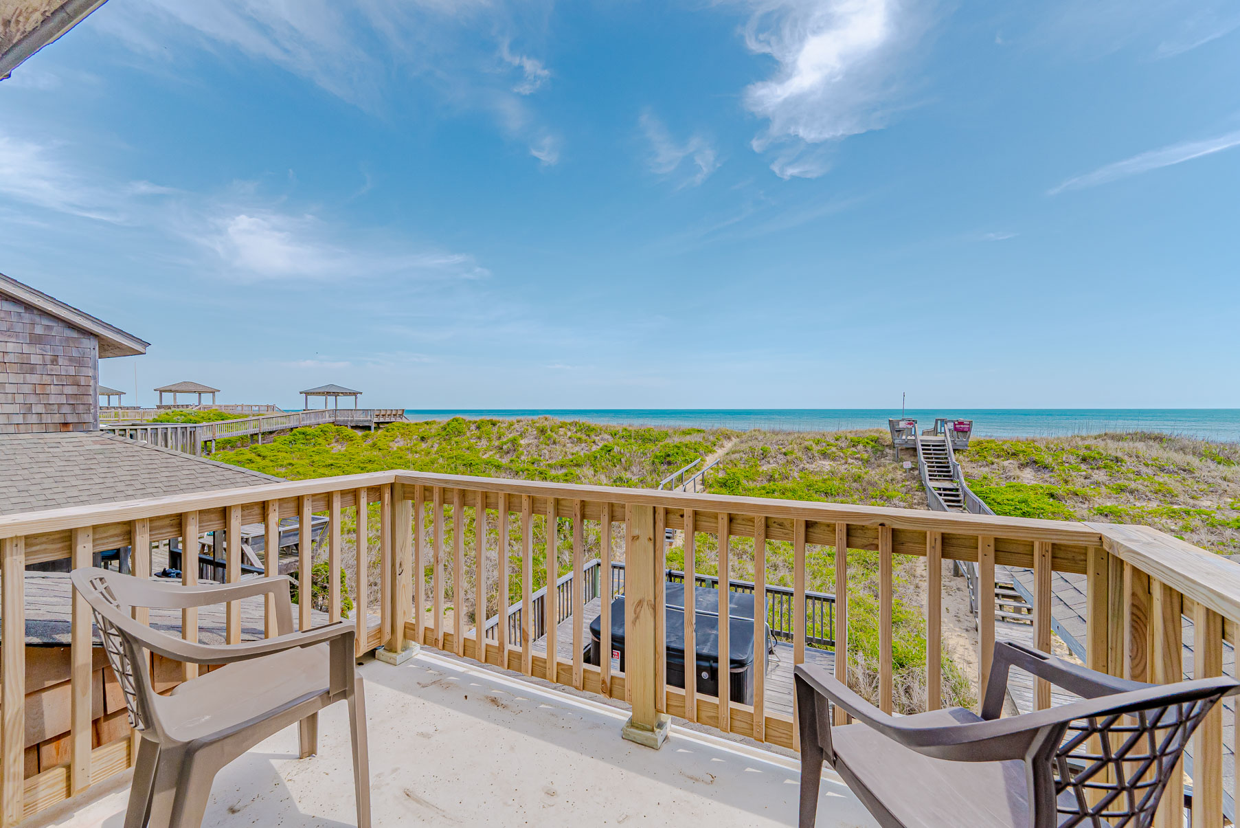 This lovely Nags Head Oceanfront home features the classic "Old Nags Head" architectural style, cedar shake siding, covered porches and ocean views from the Top Level. There is a semi-private access to beach w/direct dune crossover making it easy to get to the beach. Located in a quiet area with a relaxing environment, your family will be thrilled with the peaceful setting, large deck and uncrowded beach. Charming blend of old and new make this a repeat destination for years to come.