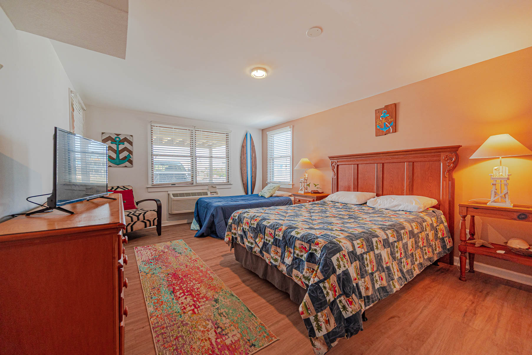 Top Level: 3 Bedrooms (Oceanfront Private Suite w/King, TV, Full Bath w/Garden Tub, Walk-In Shower, Private Sun Deck w/Ocean Views; 2 w/Queens) and Full Hall Bath w/Tub/Shower.
