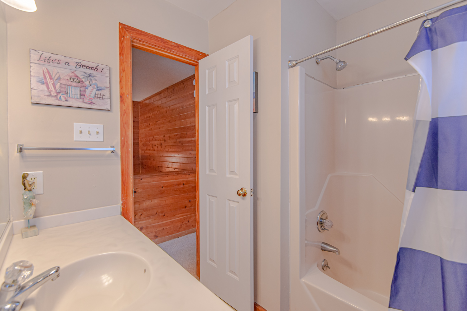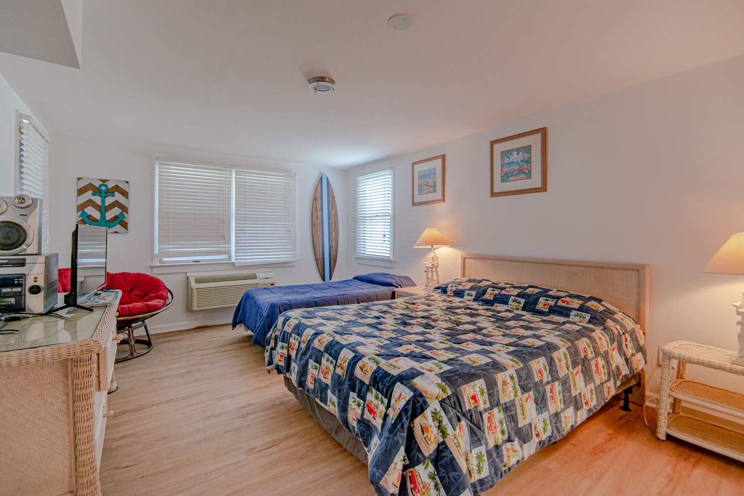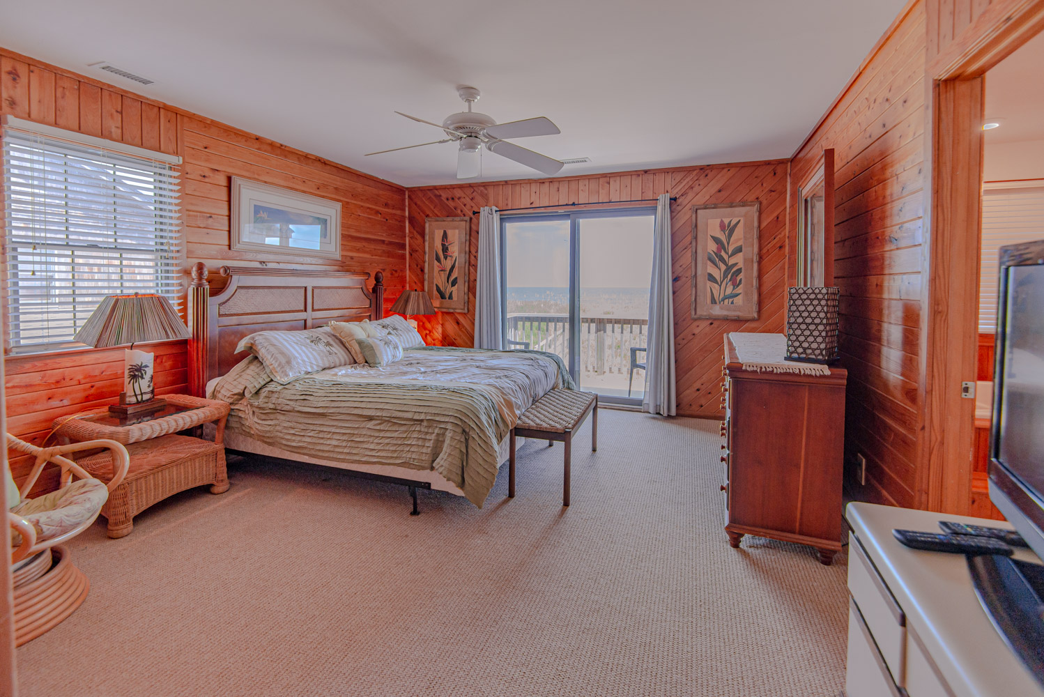 Top Level: 3 Bedrooms (Oceanfront Private Suite w/King, TV, Full Bath w/Garden Tub, Walk-In Shower, Private Sun Deck w/Ocean Views; 2 w/Queens) and Full Hall Bath w/Tub/Shower.