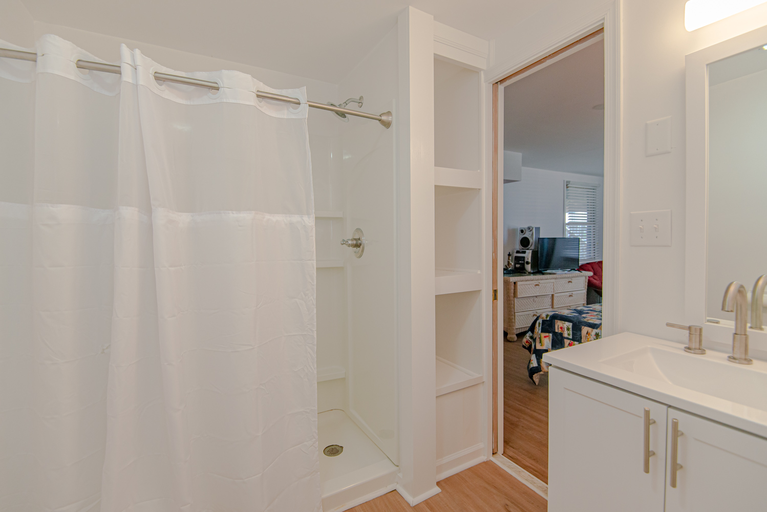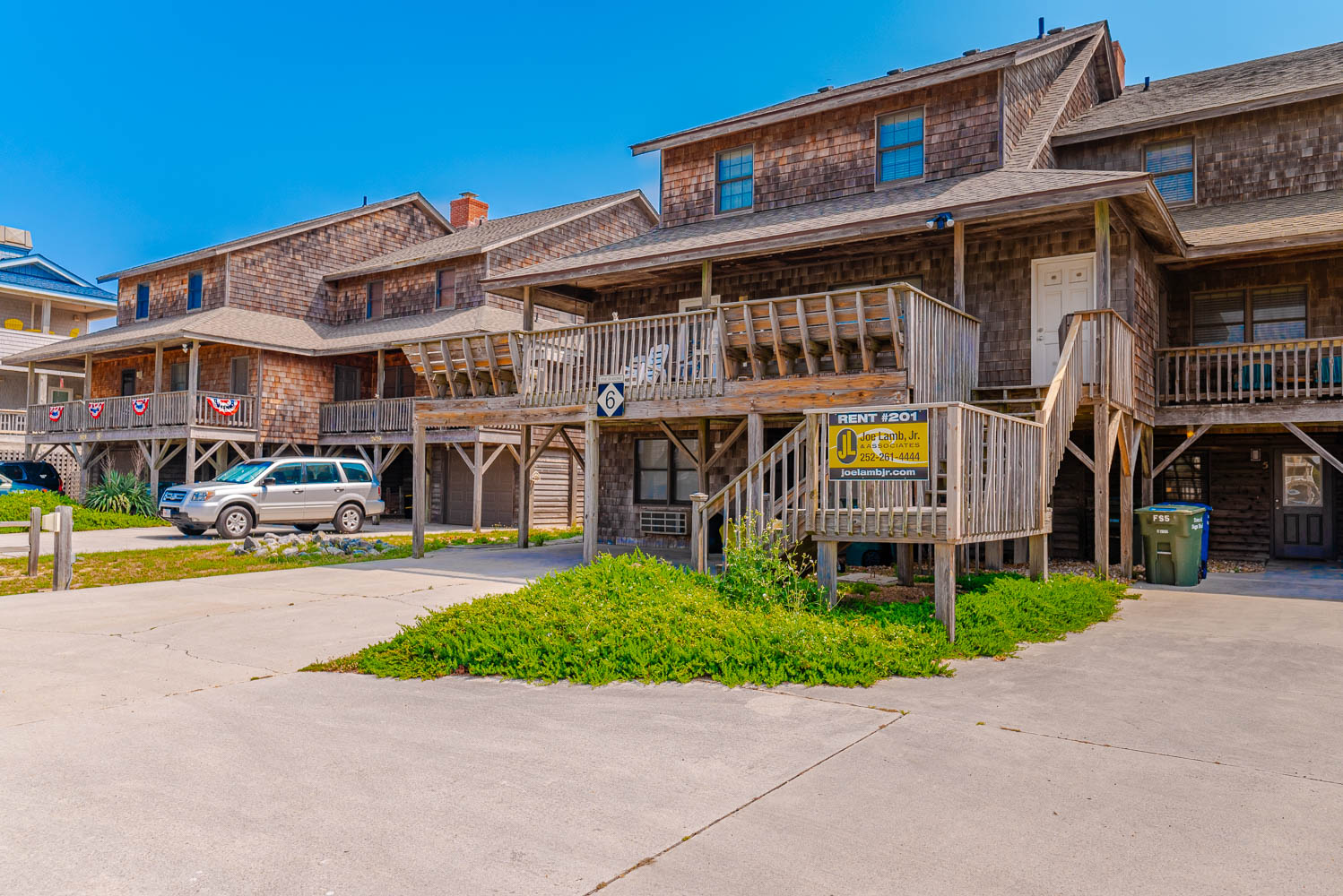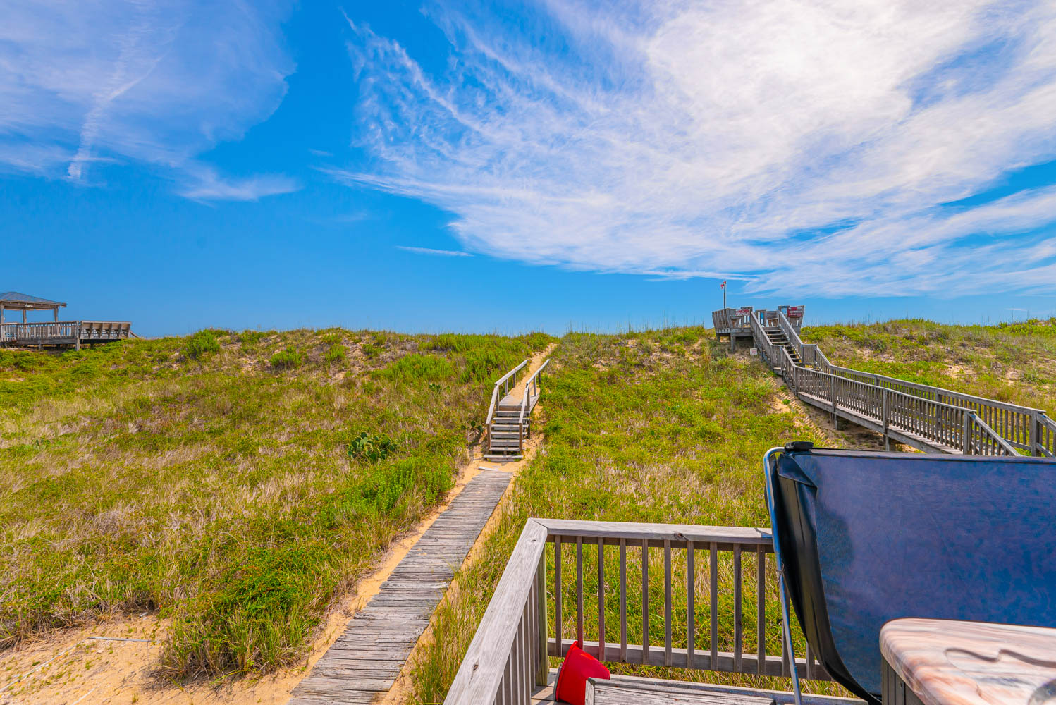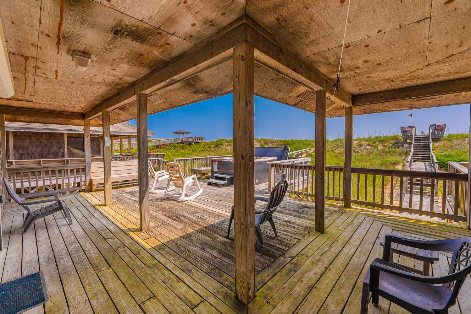 Ground Level: Parking for 4 Cars , Storage, Covered Entry, Den; Private Suite w/Double, Single, TV, Full Bath w/Tub/Shower; Charcoal Grill, Enclosed Outside Shower, and Shared Walkway to Beach w/Dune Deck.