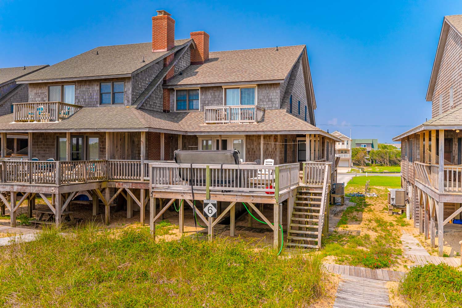 Warm and inviting furnishings and ample space for all are just part of what makes Six a great vacation destination for your family. Spend your days with your feet in the sand, watching the waves roll in and your family enjoy the exceptional beach that Nags Head has to offer. Later, you can enjoy the Hot Tub or just kick back with your favorite book on one of the covered porches that enhance this home. Your family will love the location of this homes as it is close to several outstanding restaurants, shopping and Outer Banks attractions.