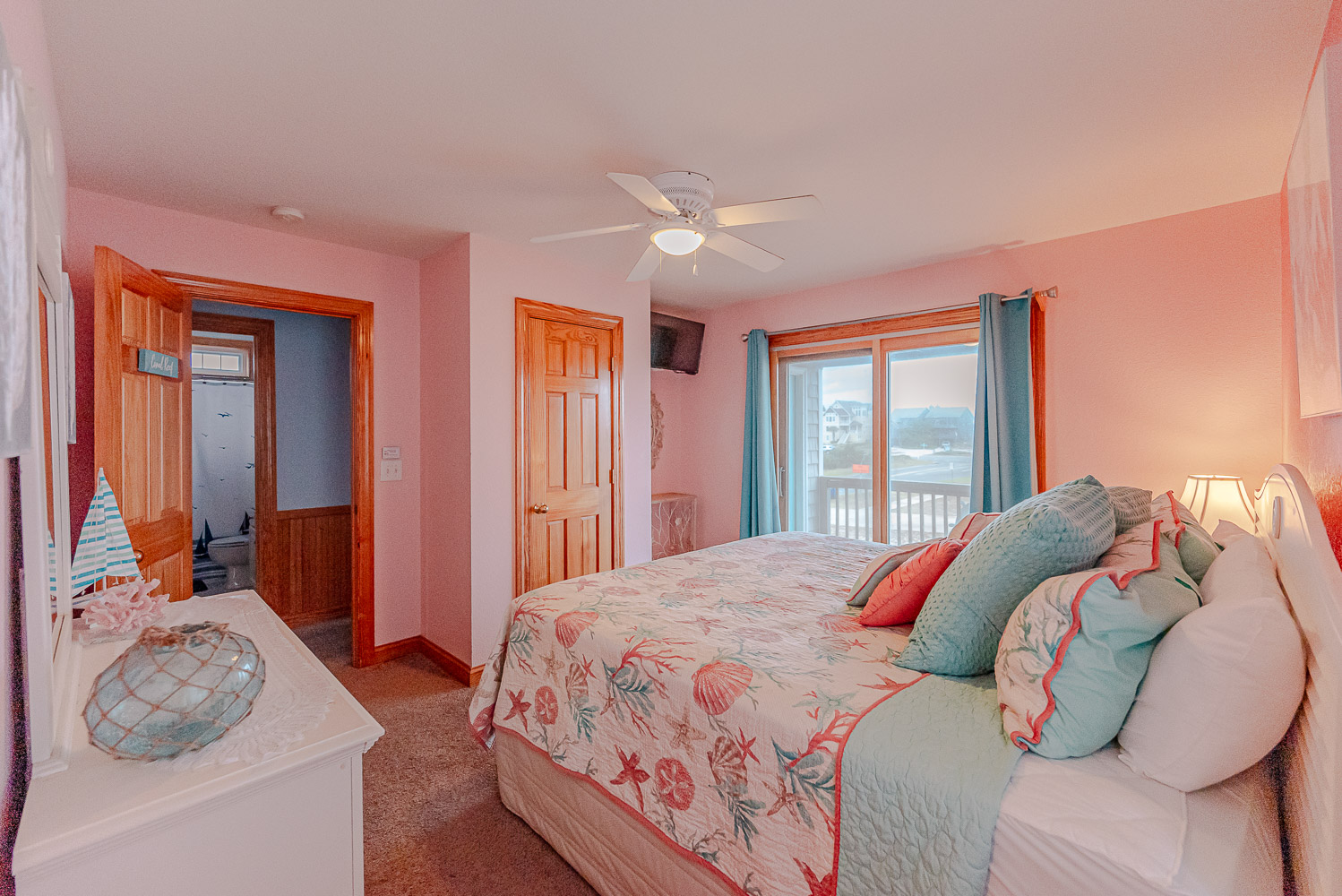 Mid-Level: 4 Bedrooms (Private Suite w/King & Flat Screen Smart TV & 3 w/Queens & Flat Screen Smart TVs, 2 Full Shared Baths, East Facing Covered Deck w/Deck Furniture, & West Facing Covered Deck w/Hot Tub & Deck Furniture.