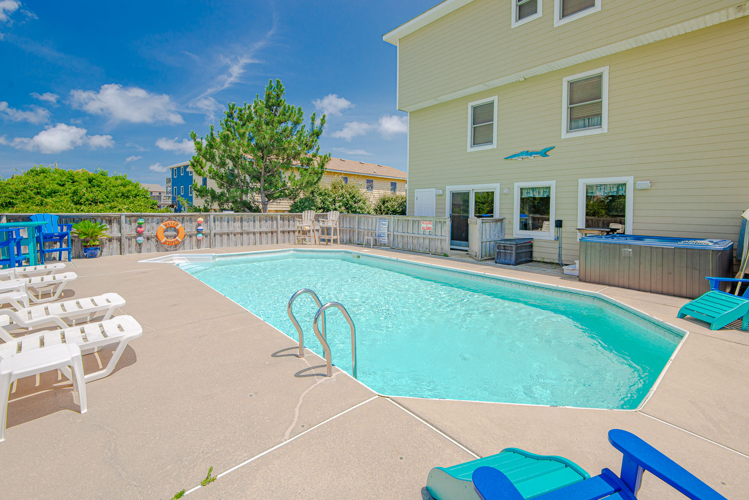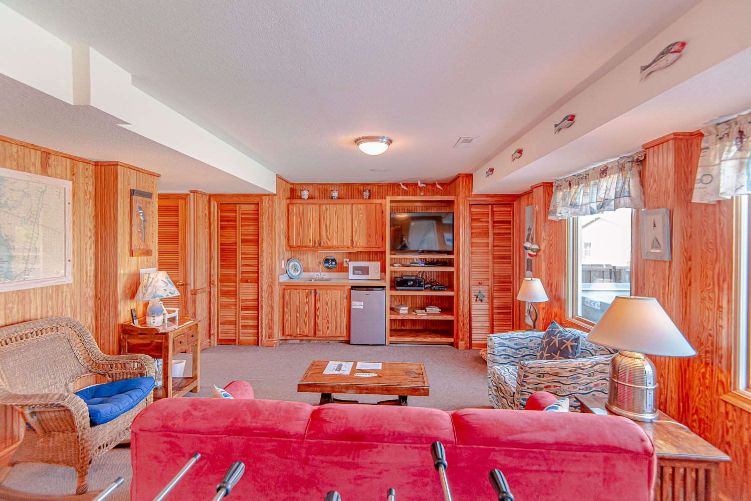 Ground Level: Parking, Covered Area w/Entry, Rec. Room w/Foosball Table, TV, Wet Bar w/Mini-Refrigerator, Microwave; Bedroom w/Duo Bunk, Single; Full Bath w/Walk-In Shower, Laundry Area, Access to Private 16x30 Heated Swimming Pool – Open Seasonally (Can be Heated for $200.00 Plus Tax Per Week - Please Bear in Mind That Pool Temperature is Subject to Outside Temperatures and Conditions), Six (6) Person Hot Tub, Enclosed Outside Shower, Corn Hole Boards, Gas Grill, and Park Grill.