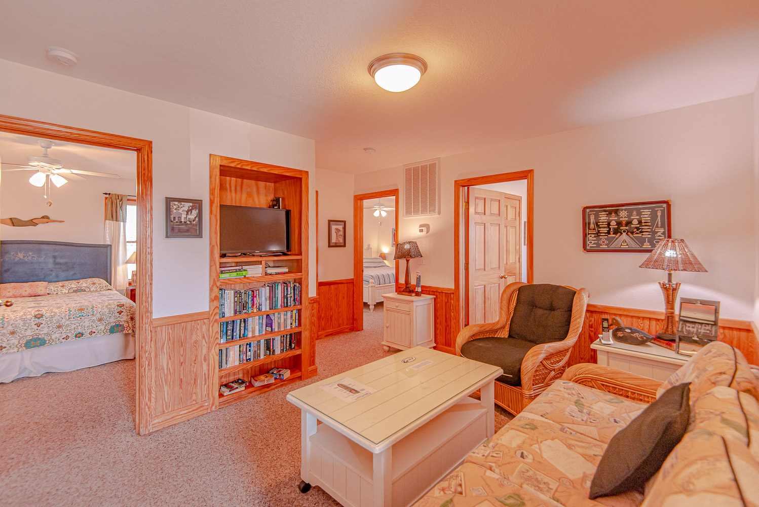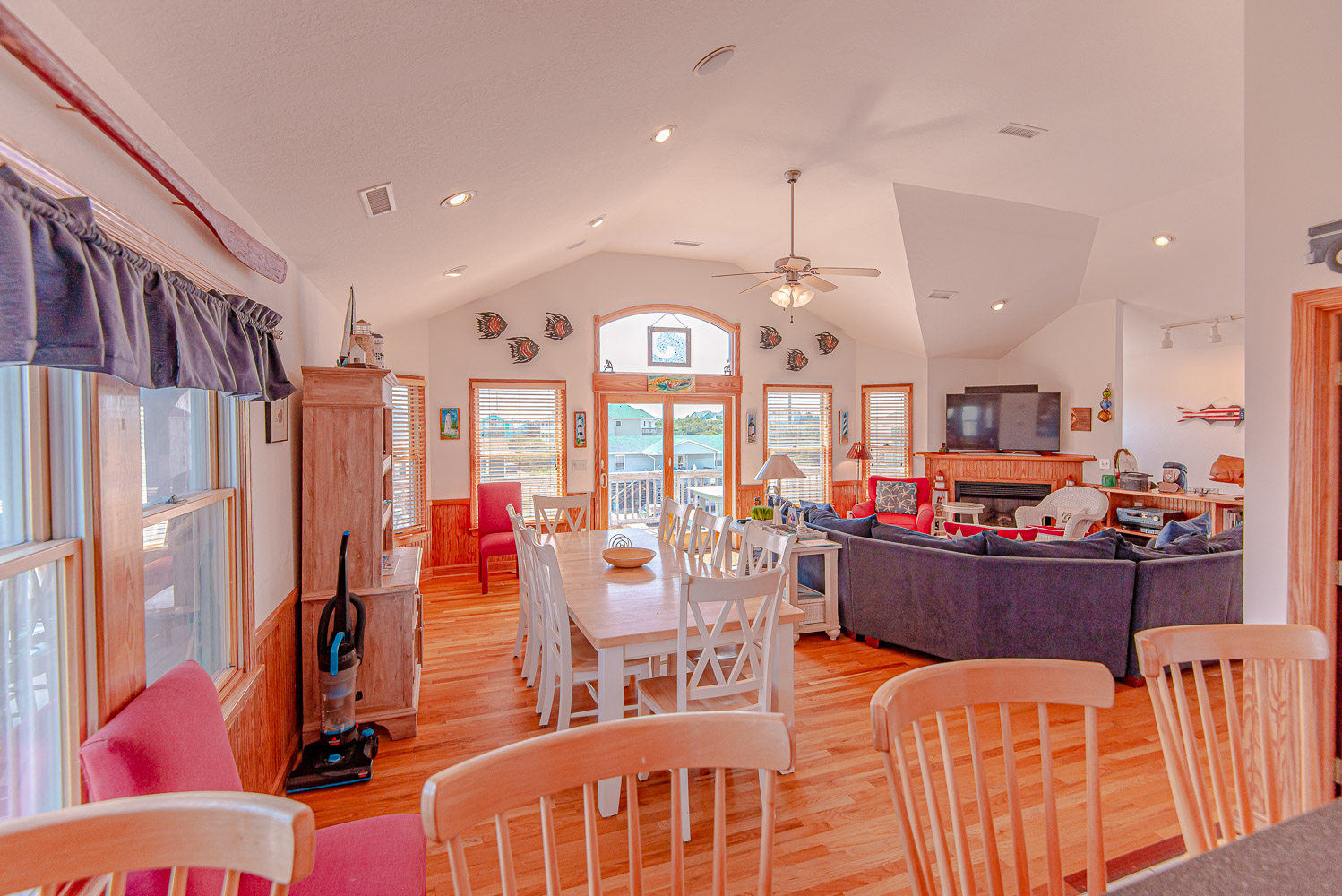 Top Level: Lovely Décor, a Spacious Living/Dining/Kitchen Area, 55 Inch Flat Panel 55 Inch HDTV, Half Bath, Private Suite w/King, TV, Full Bath w/Jacuzzi, Walk-In Shower; Sun Deck w/Furniture, and Steps to Observation Deck w/Ocean Views.