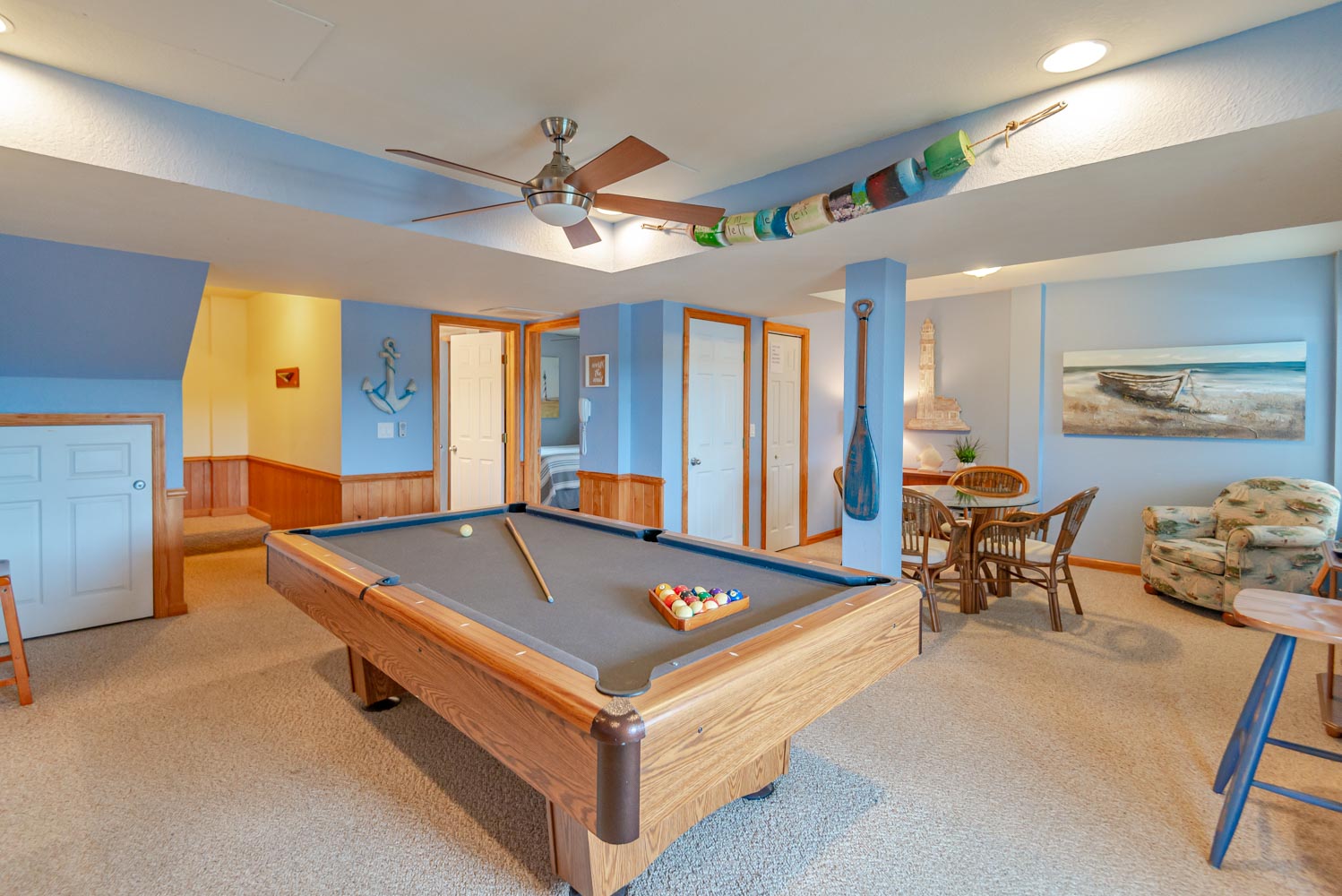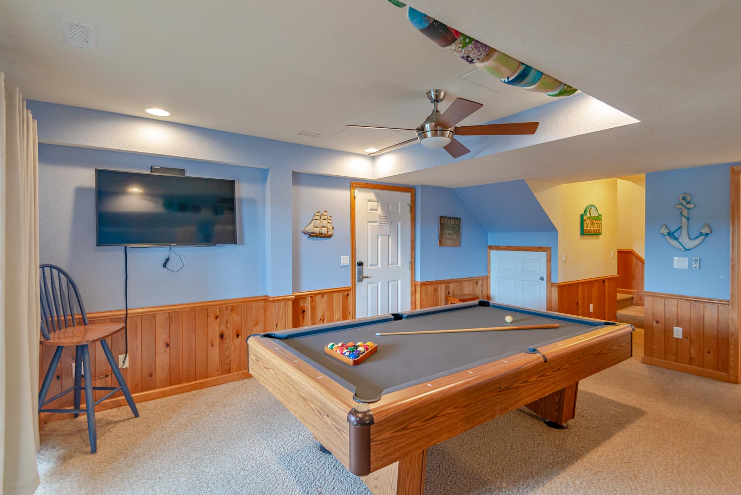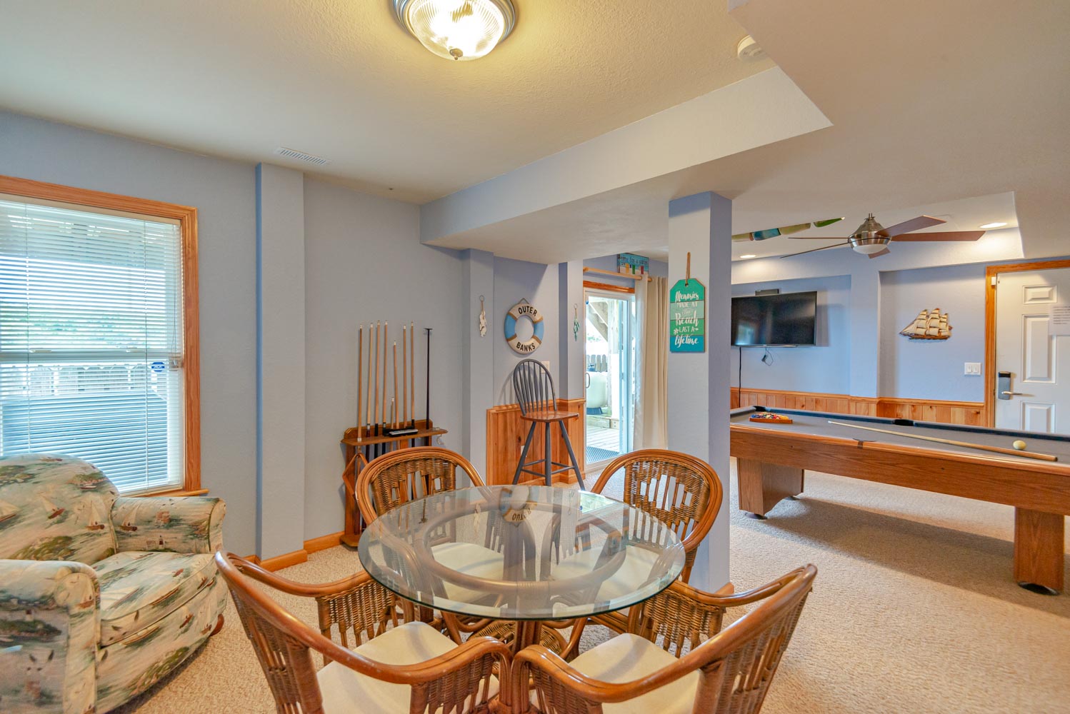 Ground Level: Parking for 4 Cars, Covered Entry, Rec. Room w/Pool Table, Table, Chairs; Bedroom w/Queen, TV; Full Hall Bath w/Garden Tub, Walk-In Shower; Access to Enclosed Outside Shower, Private Swimming Pool - Open Seasonally, Picnic Table, & Cornhole Boards.