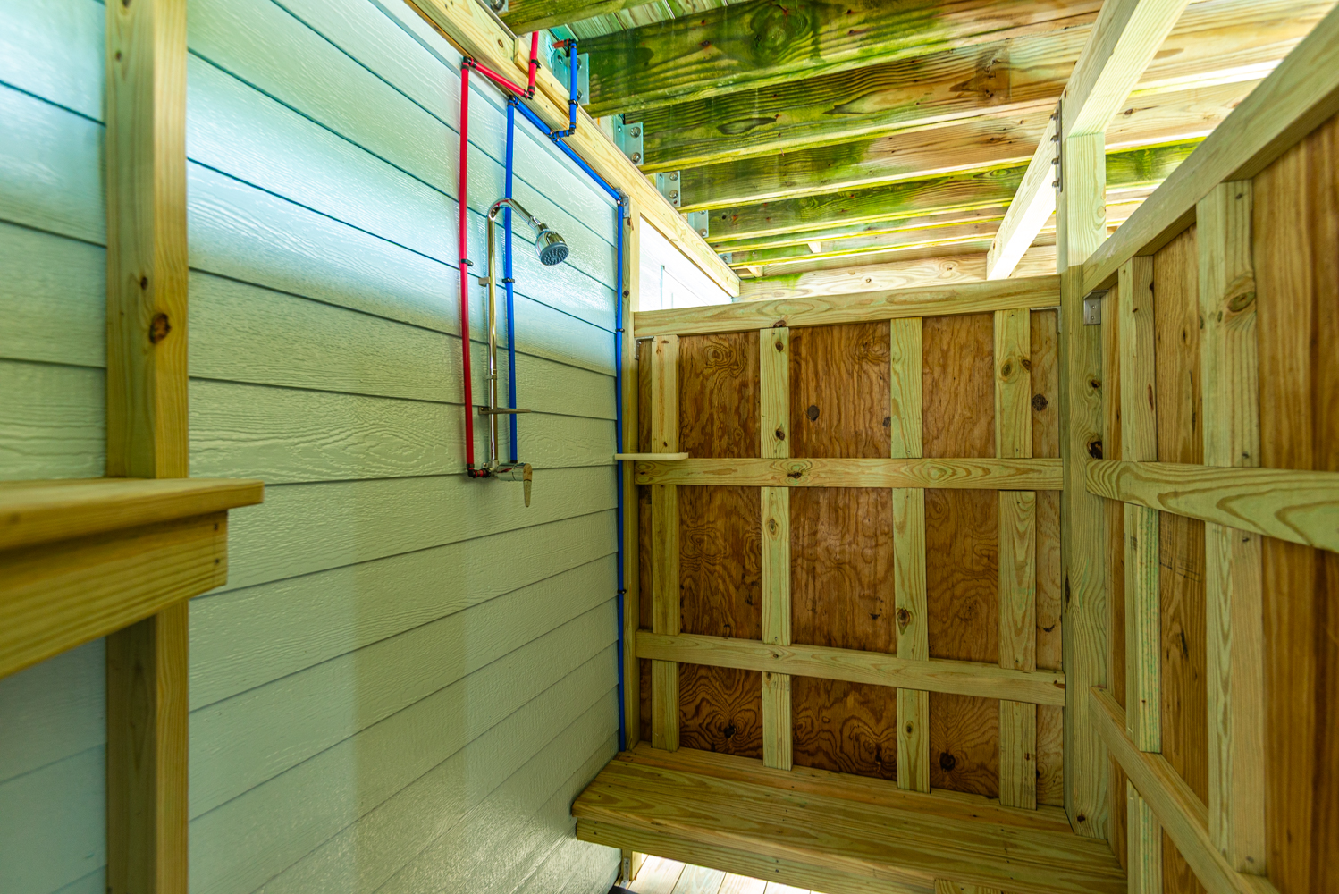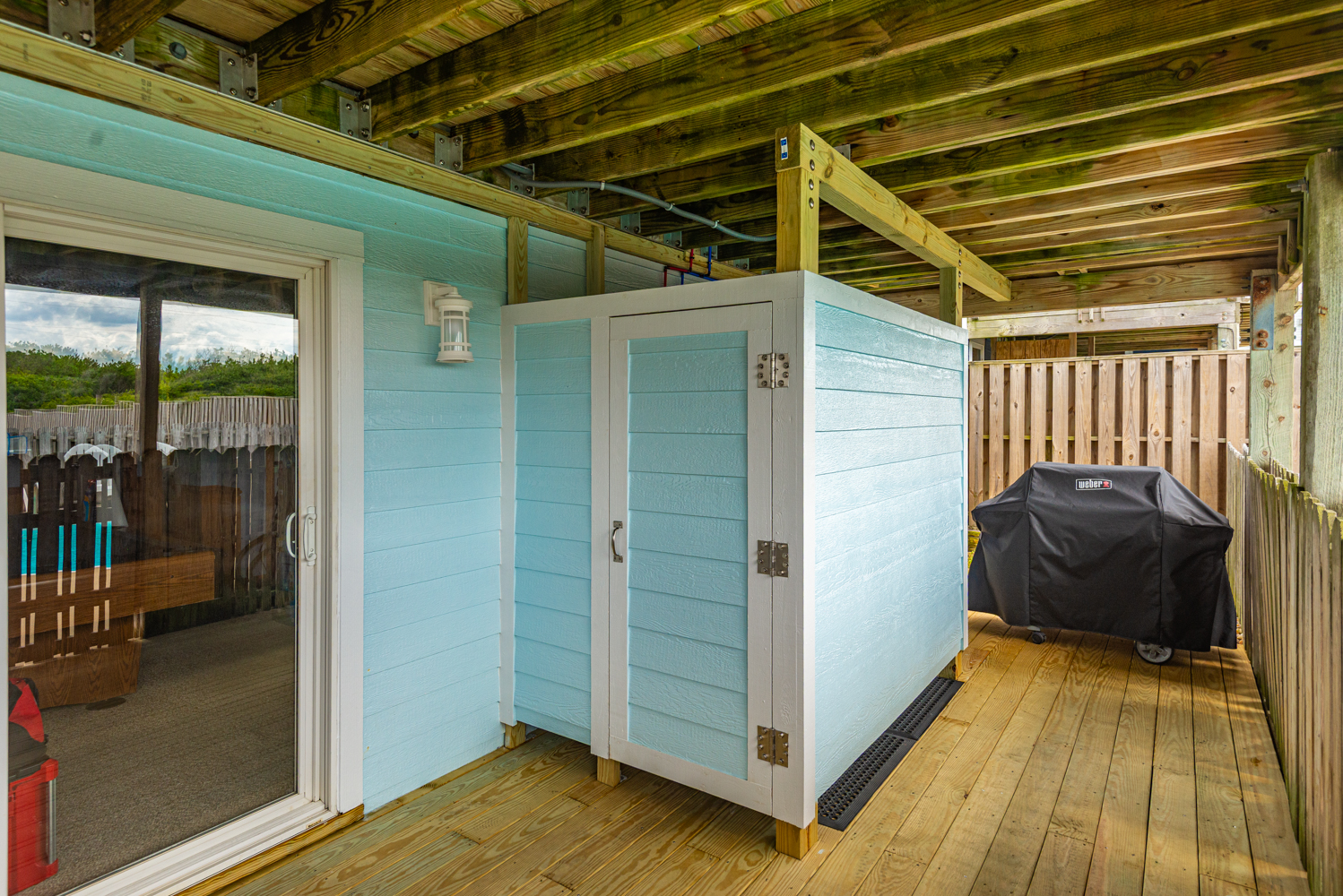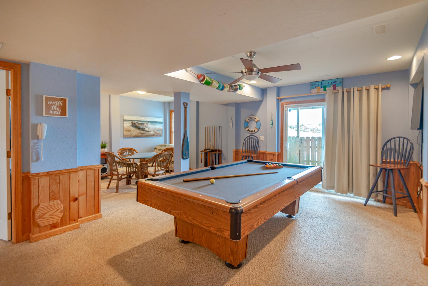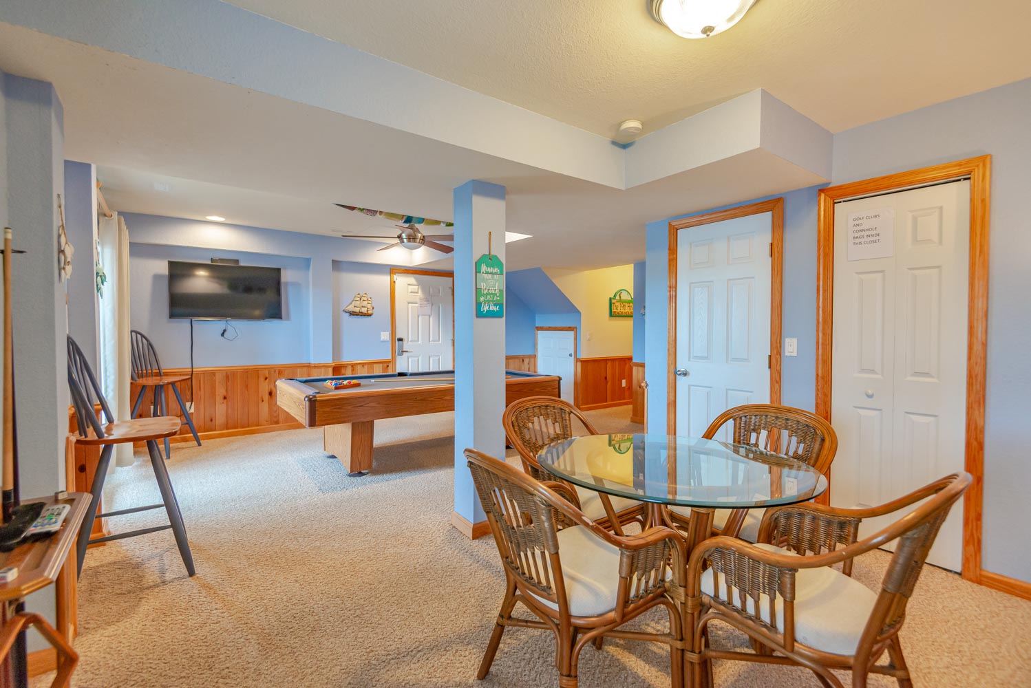 Ground Level: Parking for 4 Cars, Covered Entry, Rec. Room w/Pool Table, Table, Chairs; Bedroom w/Queen, TV; Full Hall Bath w/Garden Tub, Walk-In Shower; Access to Enclosed Outside Shower, Private Swimming Pool - Open Seasonally, Picnic Table, & Cornhole Boards.